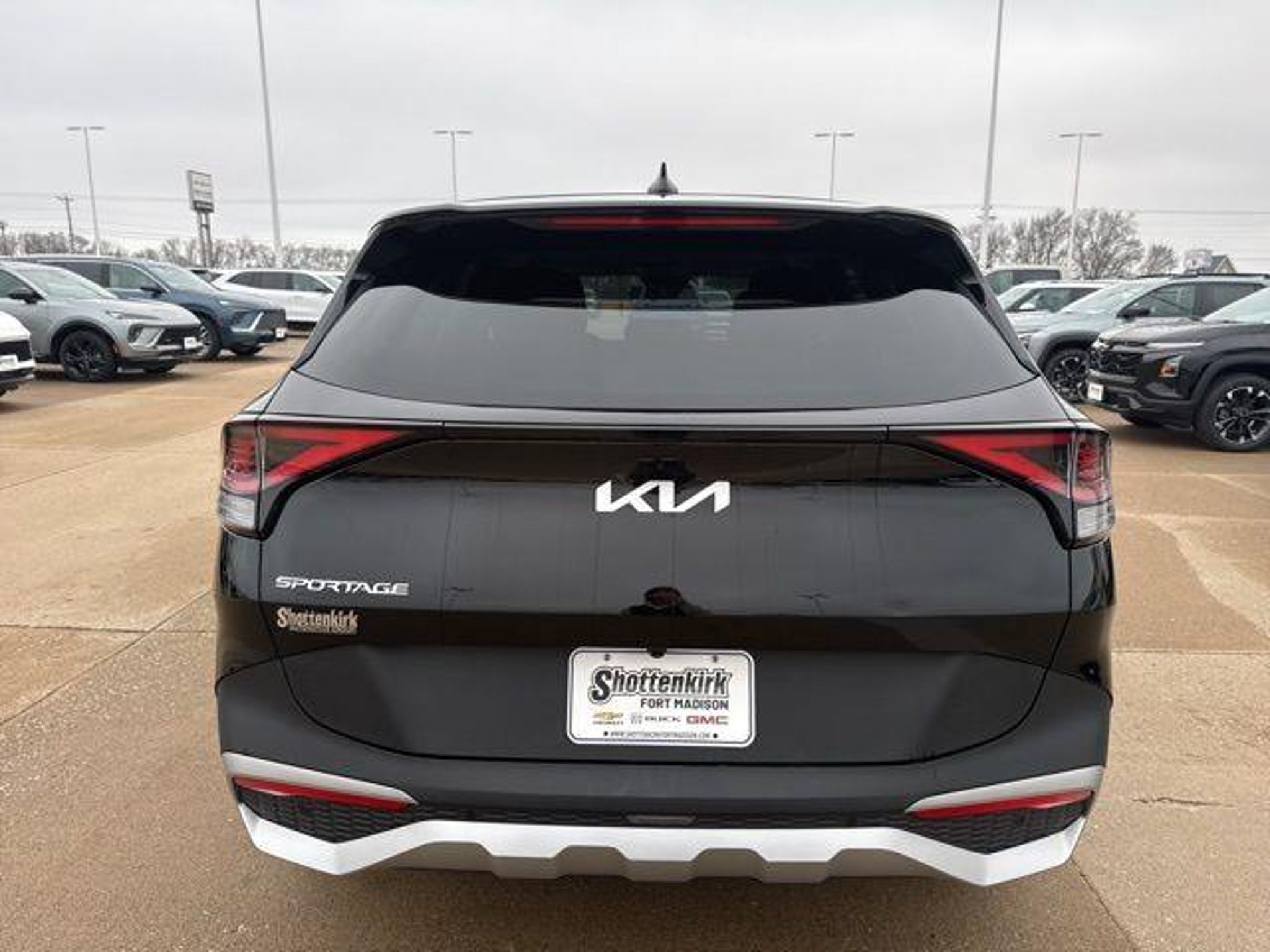 [Shottenkirk Certified Fully Serviced and Detailed Bluetooth Rear Back Up Camera Apple Car Play Balance of factory warranty Free Carfax history report Steering Wheel Controls Alloy Wheels Sportage LX 4D Sport Utility I4 8-Speed Automatic FWD Ebony Black Black w/Cloth Seat Trim 17 x 7.0J Alloy Wheels 4-Wheel Disc Brakes 6 Speakers ABS brakes Air Conditioning Alloy wheels AM/FM radio Auto High-beam Headlights Brake assist Bumpers: body-color Carpeted Floor Mats Cloth Seat Trim Delay-off headlights Driver door bin Driver vanity mirror Dual front impact airbags Dual front side impact airbags Electronic stabiliy control Four wheel independent suspension Front anti-roll bar Front Bucket Seats Front Center Armrest Fully automatic headlights Illuminated entry Low tire pressure warning Occupant sensing airbag Outside temperature display Overhead airbag Overhead console Panic alarm Passenger door bin Passenger vanity mirror Power door mirrors Power steering Power windows Radio: AM/FM/HD Audio System Rear anti-roll bar Rear seat center armrest Rear side impact airbag Rear window defroster Rear window wiper Remote keyless entry Security system Speed control Speed-sensing steering Split folding rear seat Spoiler Steering wheel mounted audio controls Tachometer Telescoping steering wheel Tilt steering wheel Traction control Trip computer Variably intermittent wipers. Odometer is 1157 miles below market average! 25/32 City/Highway MPG Ebony Black 2025 Kia Sportage LX 4D Sport Utility I4 FWD 6 Months / 6 000 mile Powertrain and Air Conditioning Coverage DENT REPAIR WINDSHIELD REPAIR TIRE AND WHEEL REPAIR PAINT PROTECTION AND NITROGEN IN THE TIRES all for $895.00.] [Shottenkirk Fort Madison is your local full-service Chevrolet, Buick and GMC dealership, proudly serving Burlington, IA and Quincy, IL area drivers with new and used auto sales, financing and service. Whether you're after a brand-new Buick, a pre-owned Chevy or professional automotive maintenance, we're here for you!]
