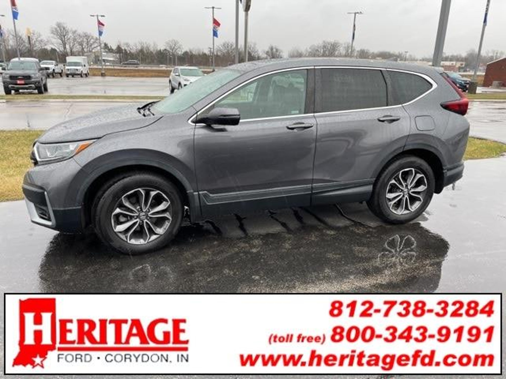 **CLEAN CARFAX, **SUNROOF/MOONROOF, **NAVIGATION/NAV/GPS, **APPLE CARPLAY/ANDROID AUTO, **BLIND SPOT MONITORS, **LANE KEEPING ASSIST, **REAR BACK UP CAMERA, **LOCAL TRADE, **LEATHER SEATS, **AWD, **HEATED SEATS, **BLUETOOTH, **REMOTE START, **NEW TIRES, **RECENT OIL CHANGE, **PASSED FULL INSPECTION, **FULLY DETAILED. Sonic Gray Pearl 2022 Honda CR-V EX-L 1.5L I4 DOHC 16V 27/32 City/Highway MPG Heritage Ford has maintained our solid commitment to our customers, offering a wide selection of cars and trucks and ease of purchase. **Price excludes tax, title, and $245.28 document preparation fee.** Located just 1 minute off I-64 in Historic Corydon, IN, we are just a short drive from Louisville, Indianapolis, and Evansville. Our Master Certified Ford Product Specialists DO NOT work on commission so you can be assured that they are aligned with your interests in getting you the best value for your dollar. We are known for our great deals and our vehicles sell quickly. If there is something you want that we don?t have we can find it fast. Here is a list of options that are available for us to find: we can get Cars, Trucks, Vans, and SUV's with AWD / 4WD, 2nd Row Bucket Seating, 3rd Row Seats, Cruise Control, Backup Camera, Bluetooth, Apple Carplay, Android Auto, No Accidents, Clean Carfax, One Owner, Dual Power Seats, Heated Leather Seating, Power Moonroof, Sunroof, Panoramic Vista Roof, New Tires, New Brakes, Non-Smoker Interior, 30 MPG, One Owner Carfax Certified, Premium Wheels, Premium Cloth Seating, Premium Sound System, 3rd Row Seating, Trailer Hitch, Navigation, Rear Back-Up Sensors, Rear Bucket Seats, Leather Seats, DVD Player, Remote Keyless Entry, Remote Start, Service Records Available, Steering Wheel Controls, Tow Package, Trailer Hitch, Traction Control, and USB Ports.
