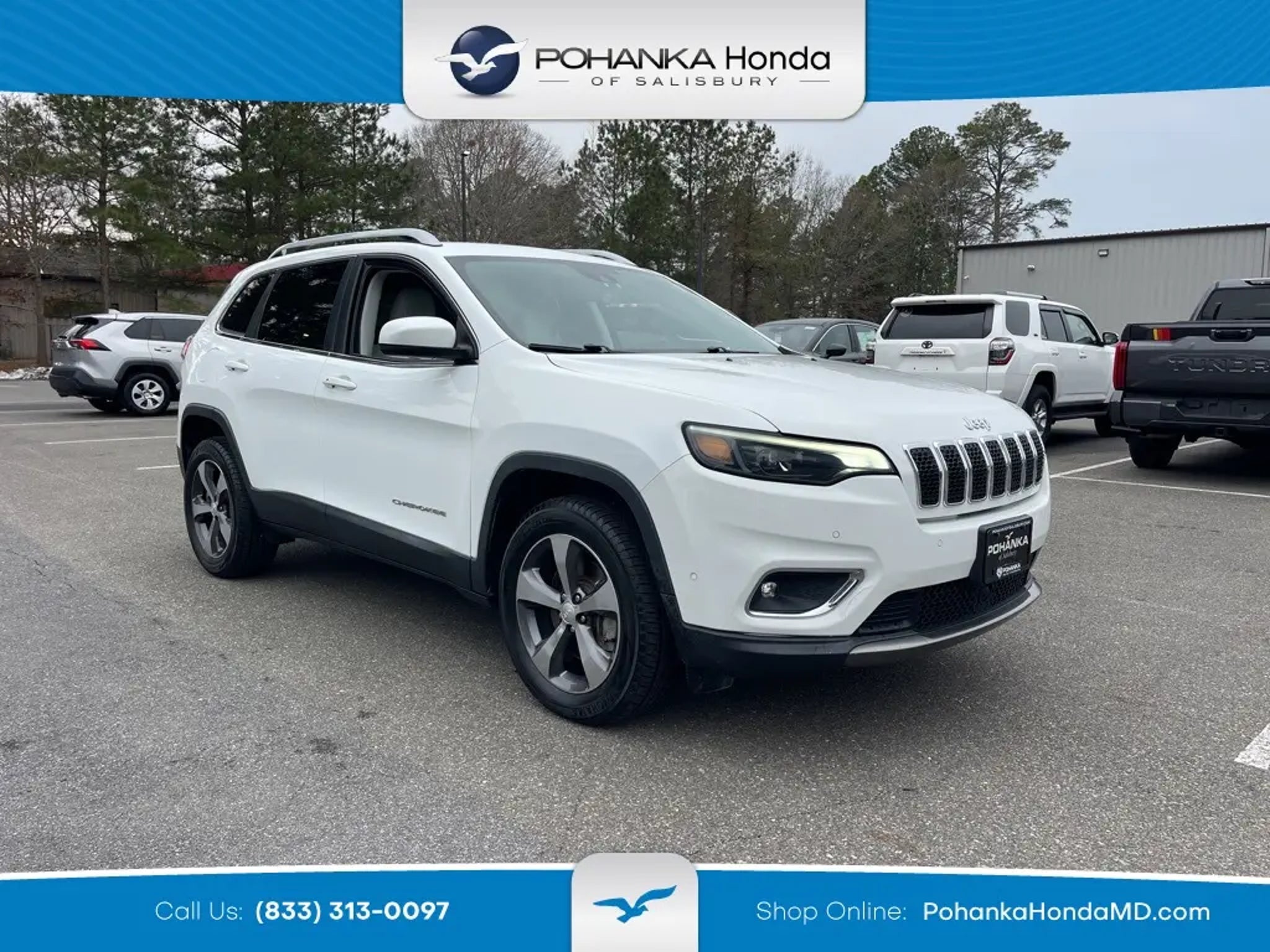 Certified. Pohanka Certified 6 Month / 6,000-Mile Warranty "¢ Maryland State Inspected "¢ Fully Inspected for Peace of Mind. Recent Arrival! 2019 Jeep Cherokee Limited 9-Speed 948TE Automatic 3.2L V6 4WD 19/27 City/Highway MPG Maryland State Inspected, Huge Discounts For Local Heroes *MILITARY *VETERANS *FIRST RESPONDERS *TEACHERS, Our Best Online Pricing, Guaranteed Financing, Navigation GPS, Heated Seats, Rear View Camera, 4 Wheel Drive, Pohanka Certified, Power Rear Lift Gate, Power Drivers Seat. Odometer is 2861 miles below market average! 19/27 City/Highway MPG Certification Program Details: Pohanka Certified 6 Months / 6,000 Miles Every effort has been made to ensure the accuracy of this listing; however, errors or omissions may occur. Pricing, incentives, and availability are subject to change without notice due to market conditions. All prices exclude tax, tags, and an $800 dealer processing fee (not required by law). Sales tax is determined by the buyer's residence, not the dealership location. See dealer for complete details at Pohanka Honda of Salisbury.