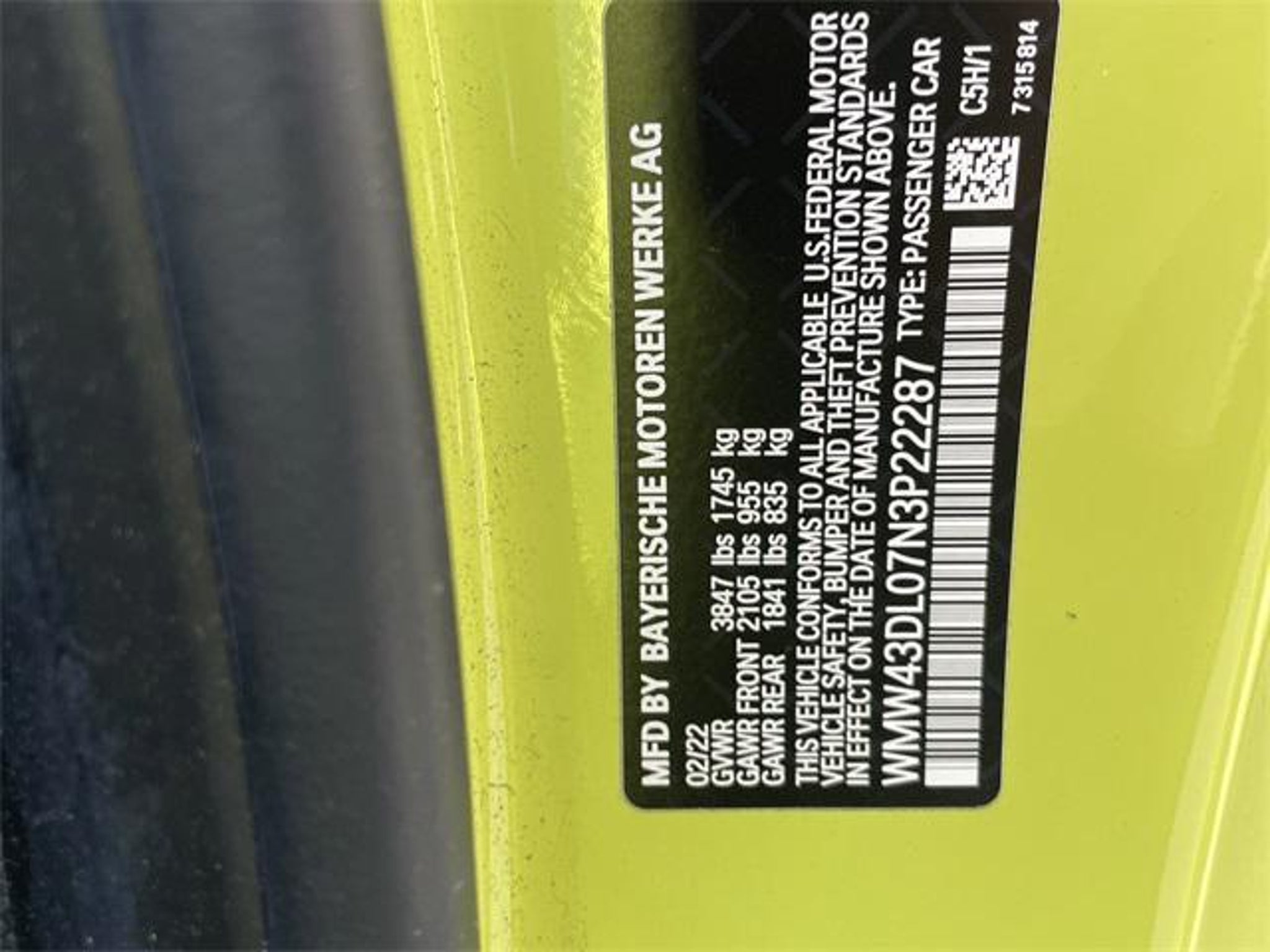 The price does not include tax, tag, license, an electronic filing fee of $449.00**, a private tag agency fee of $199.00**, and a predelivery service charge of $1199.00** **This charge represents costs and profit to the dealer for items such as inspecting, cleaning, and adjusting vehicles, as well as preparing documents related to the sale.* EPA-estimate metric: these are contingent on ideal conditions within a lab. Real-world situations such as carrying passengers or cargo, using climate control, driving style, and ambient temperatures can affect actual metrics. 23/33 City/Highway MPG Yellow 2022 MINI Cooper S FWD 6-Speed Manual 2.0L I4 DOHC This vehicle comes equipped with Signature Trim (Body Color Mirror Caps, Comfort Access Keyless Entry, Convertible Wind Deflector, Dual Zone Auto Climate Control, Heated Front Seats, Nappa Leather Steering Wheel, and Wheels: 17 x 7.0 Tentacle Spoke Silver Alloy), Storage Package, Touchscreen Media Display (ConnectedDrive Services, Enhanced USB & Bluetooth, Media Display, MINI Assist eCall, MINI Connected, MINI TeleServices, and Remote Services), 4-Wheel Disc Brakes, 6 Speakers, ABS brakes, Air Conditioning, Alloy wheels, AM/FM radio: SiriusXM, AM/FM Stereo, Auto High-beam Headlights, Brake assist, Bumpers: body-color, Convertible roof lining, Delay-off headlights, Driver door bin, Driver vanity mirror, Dual front impact airbags, Dual front side impact airbags, Dynamic Digital Instrument Cluster, Electronic Stability Control, Emergency communication system, Exterior Parking Camera Rear, Four wheel independent suspension, Front anti-roll bar, Front Bucket Seats, Front Center Armrest w/Storage, Front fog lights, Front reading lights, Fully automatic headlights, Glass rear window, Heated door mirrors, Illuminated entry, Integrated roll-over protection, Knee airbag, Leather steering wheel, Low tire pressure warning, Occupant sensing airbag, Outside temperature display, Overhead console, Passenger door bin, Passenger vanity mirror, Piano Black Interior Surface, Power convertible roof, Power door mirrors, Power moonroof, Power steering, Power windows, Radio Control US, Radio data system, Rain sensing wipers, Rear anti-roll bar, Rear fog lights, Rear window defroster, Remote keyless entry, SensaTec Leatherette Upholstery, SiriusXM Satellite Radio, Speed control, Speed-sensing steering, Speed-Sensitive Wipers, Split folding rear seat, Sport Seats, Sport steering wheel, Standard Exterior Trim, Steering wheel mounted audio controls, Tachometer, Telescoping steering wheel, Tilt steering wheel, Traction control, Trip computer, Variably intermittent wipers, Wheels: 16 x 6.5 Revolite Spoke Spectre Gray, and Wheels: 17 x 7.0 Tentacle Spoke Black Alloy . 23/33 City/Highway MPG