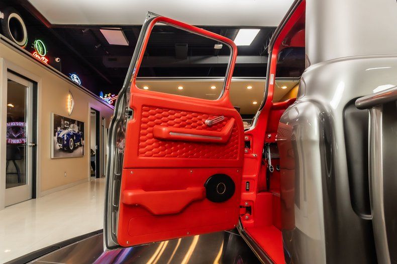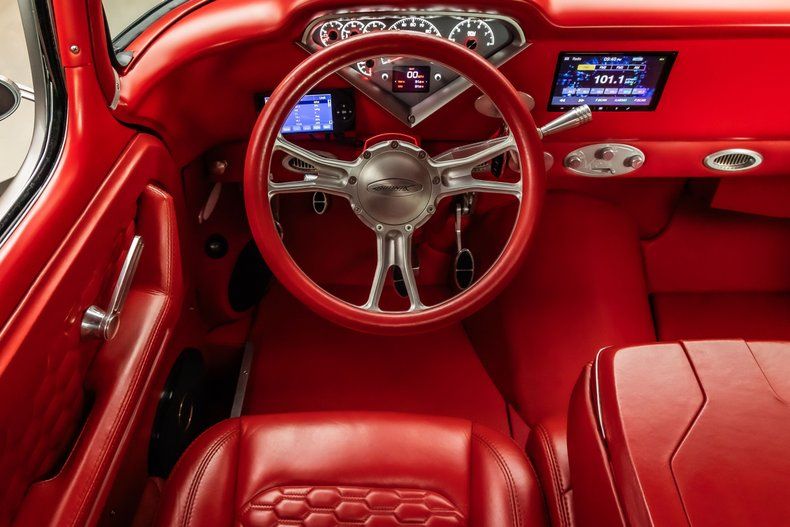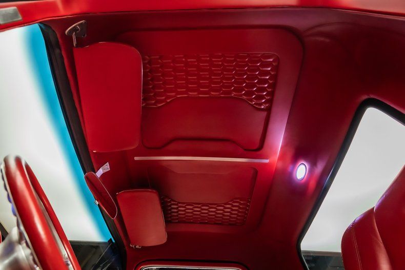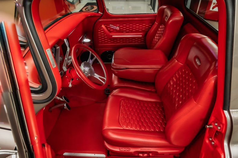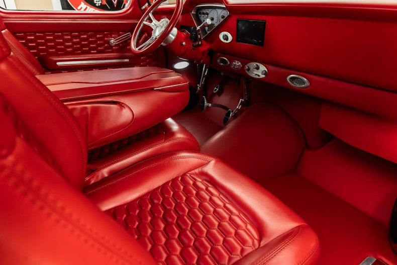 Interior: - Red Vinyl Upholstery - Red Carpeting - Custom Alpine stereo/speakers - Custom New Headliner - Tilt Steering Column - Custom Door Panels - Custom New Gauges - Bench Seating w/ Fold Down Center Console - Vintage Air Conditioning