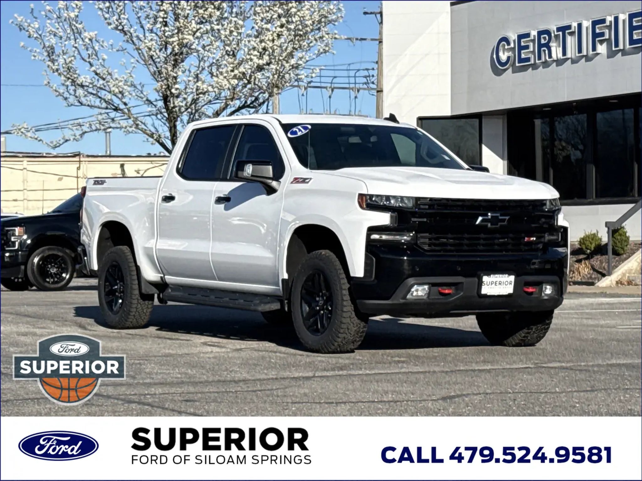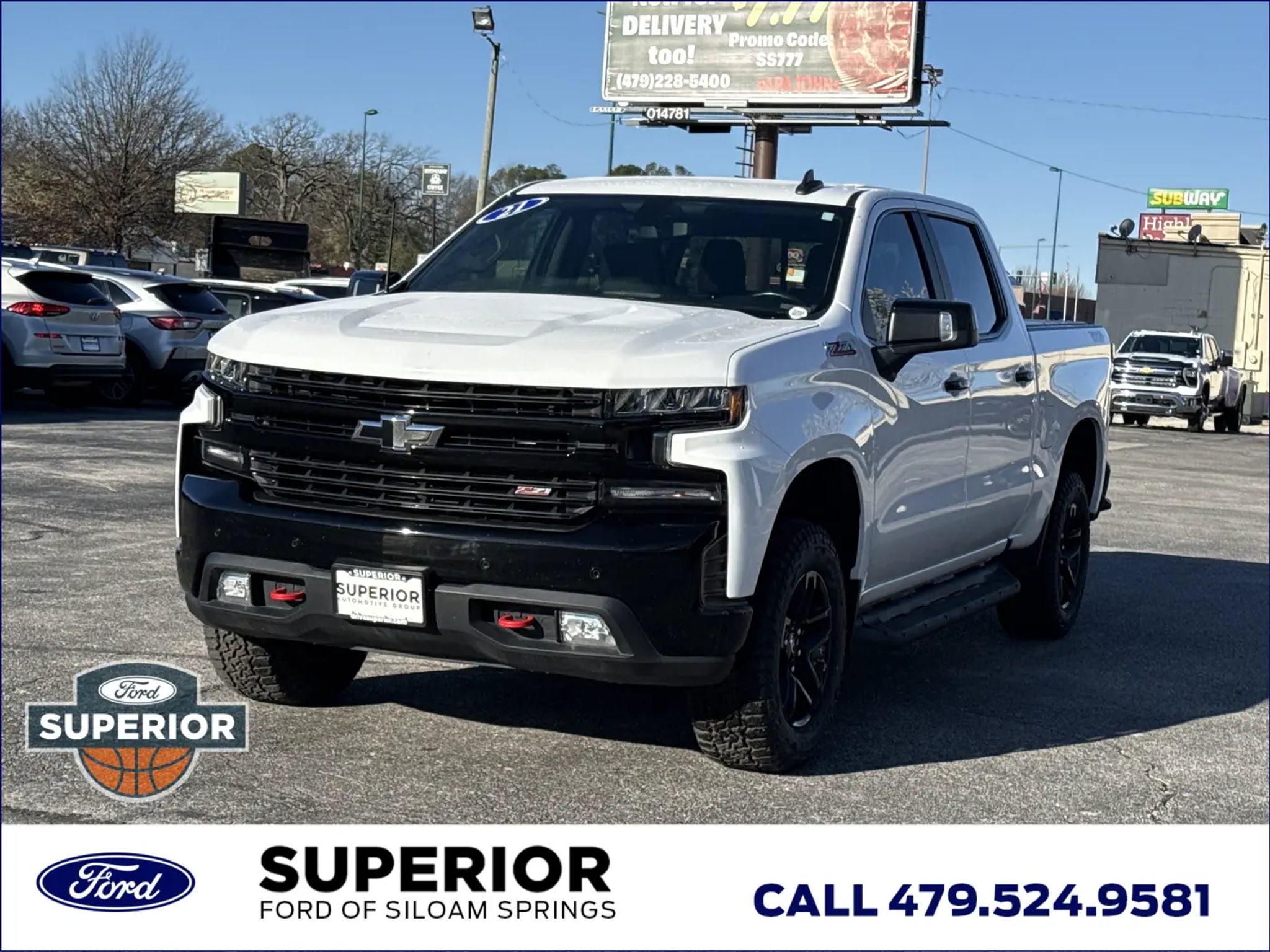 If you are looking for a truck that is as comfortable on a muddy trail as it is on a paved highway, this 2021 Chevrolet Silverado 1500 LT Trail Boss in Summit White is your perfect match. Built with a factory 2-inch lift and a rugged Off-Road Suspension, this 4WD pickup is designed to stand tall and handle the tough stuff. With a Clean CARFAX and One-Owner history, you can get behind the wheel knowing this 5.3L V8 powerhouse has been well-cared for and is ready for its next mission.Built for the Great OutdoorsThe Trail Boss is all about capability. It comes equipped with the Dark Essentials Package and Performance Red Recovery Hooks, giving it an aggressive look that backs up its performance. You'll find Hill Descent Control and an Auto-Locking Rear Differential to help you navigate tricky terrain, while the Chevytec Spray-On Bedliner and LED Cargo Area Lighting ensure your truck bed stays protected and functional no matter when or where you're working.High-Tech Cabin ComfortsInside the Crew Cab, you'll find a surprisingly refined space packed with modern technology. The Convenience Package II adds a Bose Premium 7-Speaker Sound System and a Power Sliding Rear Window for an elevated driving experience. Stay connected with Wireless Phone Projection for Apple CarPlay and Android Auto, a 4G LTE Wi-Fi Hotspot, and the Chevrolet Infotainment 3 Plus System. Whether you're on a long road trip or a quick run to the store, features like Dual-Zone Automatic Climate Control and the Heated Steering Wheel keep everyone comfortable.Towing and Utility Made SimpleChevrolet has made towing less of a chore with the Advanced Trailering Package. This includes Hitch Guidance with Hitch View and an Integrated Trailer Brake Controller, allowing you to line up your trailer and hit the road with confidence. The EZ Lift Power Lock & Release Tailgate takes the strain out of loading gear, and the 120-Volt Bed Mounted Power Outlet is perfect for charging tools or electronics at the campsite or the job site.Advanced Safety FeaturesSafety is a priority in this Silverado, featuring the Safety Package to keep you and your passengers secure. You'll benefit from Lane Change Alert with Side Blind Zone Alert, Rear Cross Traffic Alert, and Ultrasonic Front & Rear Park Assist, which act as a second set of eyes in crowded parking lots or on busy highways. Combined with the HD Rear Vision Camera, navigating this full-sized truck through tight spaces becomes much simpler and safer.Faster. Simpler. More Transparent. Superior Automotive Group has helped thousands of customers find the right car by leveraging one of Arkansas' largest selections of new and pre-owned vehicles at unparalleled prices. Yet, it's our extra-mile customer service and uncommonly candid and respectful staff that have won the trust and loyalty of Arkansas drivers for 30 years. Come visit one of our Superior dealerships today and let us exceed your expectations.