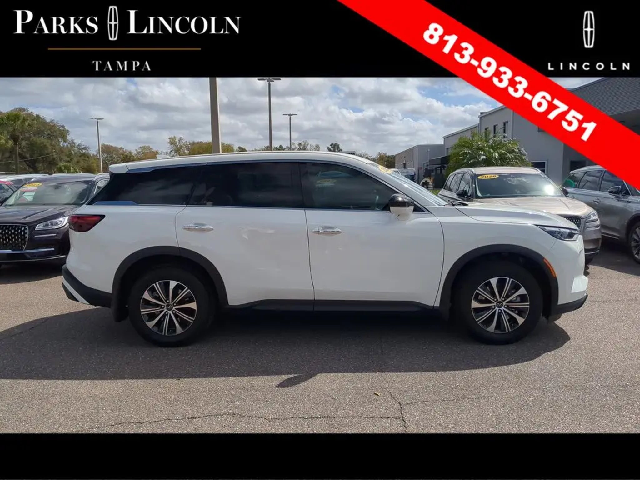 *****LIFETIME LIMITED POWERTRAIN WARRANTY***** ***PARKS LINCOLN OF TAMPA PHONE 813-933-6751*** INFINITI QX60 PURE AWD 9-Speed Automatic 2.0L I4 Turbocharged DOHC 16V LEV3-ULEV50 268hp * SUNROOF / MOONROOF, * BACKUP CAMERA, * BLIND SPOT MONITOR, * HD RADIO, * CLEAN CARFAX, * UPGRADED WHEELS, * AWD, *BLUETOOTH, *ALLOYS, * UPGRADE AUDIO SOUND SYSTEM, QX60 PURE, 4D Sport Utility, 2.0L I4 Turbocharged DOHC 16V LEV3-ULEV50 268hp, 9-Speed Automatic, AWD, Glacier White, Sandstone Leather, 3rd row seats: bench, 4-Wheel Disc Brakes, Alloy wheels, AM/FM radio: SiriusXM, Auto High-beam Headlights, Automatic temperature control, Blind Spot Warning, Driver vanity mirror, Dual front side impact airbags, Electronic Stability Control, Front dual zone A/C, Fully automatic headlights, Heated door mirrors, Heated front seats, Illuminated entry, Leather-Appointed Seating Surfaces, Low tire pressure warning, Memory seat, Passenger vanity mirror, Power Liftgate, Power moonroof, Power windows, Radio data system, Rain sensing wipers, Rear anti-roll bar, Rear Parking Sensors, Rear window defroster, Speed control, Speed-sensing steering, Split folding rear seat, Steering wheel mounted audio controls, Telescoping steering wheel, Tilt steering wheel, Turn signal indicator mirrors, Variably intermittent wipers. At Parks Lincoln of Tampa and Wesley Chapel you receive exclusive Features and Benefits to both Enhance and Protect your Vehicle. *** PARKS PLUS PROGRAM *** includes Nationwide LIFETIME WARRANTY, Anti-Theft VIN Etching, On Demand Roadside Assistance, ID Theft Protection, $2,500 Stolen Vehicle Assistance and Collision Loyalty Credit, Headlights & Interior Surfaces, Protective Coatings for your Paint, and Cabin Sanitizer Antimicrobial Protectant. We provide you the most value for your money. Guaranteed. Please see disclaimer below for full details on Parks Plus. Recent Arrival! 22/27 City/Highway MPG