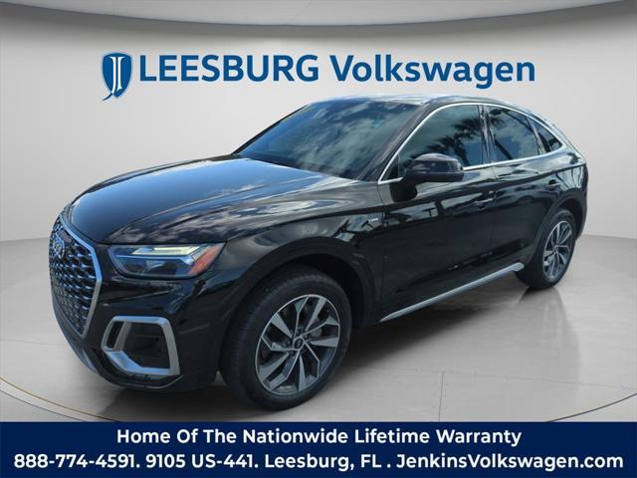 The price does not include tax, tag, license, an electronic filing fee of $449.00**, a private tag agency fee of $199.00**, and a predelivery service charge of $1199.00** **This charge represents costs and profit to the dealer for items such as inspecting, cleaning, and adjusting vehicles, as well as preparing documents related to the sale. * EPA-estimate metric: these are contingent on ideal conditions within a lab. Real-world situations such as carrying passengers or cargo, using climate control, driving style, and ambient temperatures can affect actual metrics. 22/29 City/Highway MPG Q5 Sportback 45 S line Premium quattro, 4D Sport Utility, 2.0L Turbocharged, quattro, Mythos Black Metallic, Black w/Leather Seating Surfaces, 10 Speakers, Audi Active Lane Assist, Audi Advanced Key, Audi Virtual Cockpit Plus, Auto High-beam Headlights, Auto-Dimming Power Folding Exterior Mirrors, Bang & Olufsen Sound System w/3D Sound, Brake assist, Convenience Package, Driver Seat Memory, Electronic Stability Control, Emergency communication system: Audi connect CARE, Hands-On Detection Steering Wheel, Heated Steering Wheel, Leatherette Covered Center Console & Door Armrests, Power Adjustable Steering Column, Power Liftgate, Power moonroof: Panoramic, Premium Plus Package, Rain sensing wipers, SiriusXM w/360L, Top View Camera System, Traffic Jam Assist, Wheels: 19 5-Double-Arm Design Bi-Color Finish. Mythos Black Metallic 22/29 City/Highway MPG 2023 Audi Q5 Sportback 45 S line Premium quattro quattro 7-Speed Automatic S tronic 2.0L Turbocharged Experience unparalleled confidence in your next vehicle purchase at Jenkins Volkswagen of Leesburg! For over 50 years, we've been dedicated to serving our community. Discover peace of mind with our EXCLUSIVE NATIONWIDE LIFETIME UNLIMITED MILEAGE WARRANTY (see dealer for details, year and mileage limits apply). Our pre-owned vehicles undergo comprehensive detailing and reconditioning, meticulously inspected to meet the stringent criteria for this exceptional warranty. We invest significantly in this process to ensure exceptional quality, and the detailed Reconditioning and Maintenance Repair History is available upon request. We don't just inspect; we ensure each vehicle is truly ready for the road. Visit Jenkins Volkswagen of Leesburg today and experience the difference!