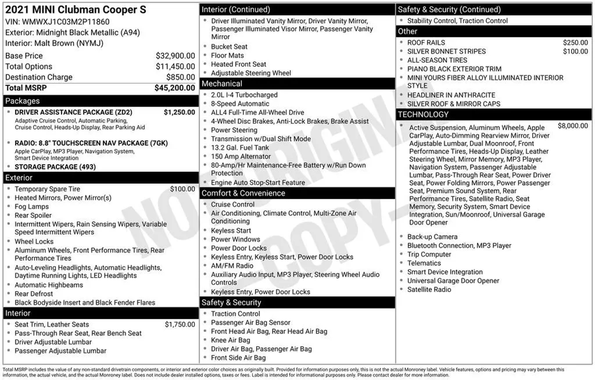 CARFAX One-Owner. Clean CARFAX. Certified. Midnight Black Metallic 2021 MINI Cooper S Clubman AWD 8-Speed Automatic Sport 2.0L I4 16V PRICE INCLUDES DEALER DOC FEE!, CLEAN CAR FAX REPORT, LOCAL TRADE, ONE OWNER, 4D Wagon, 2.0L I4 16V, 8-Speed Automatic Sport, AWD, Midnight Black Metallic, Malt Brown Chesterfield Lthr Malt Brown, Advanced Real-Time Traffic Information, Alloy wheels, Apple CarPlay Compatibility, Concierge Services, ConnectedDrive Services, Dynamic Digital Instrument Cluster, Heated Front Seats, Heated front seats, Media Display, MINI Assist eCall, MINI Connected, MINI Connected XL, MINI Head-Up Display, MINI Navigation, MINI TeleServices, Navigation System, Panoramic Moonroof, Radio: 8.8 Touchscreen Nav Package, Remote Services, Silver Bonnet Stripes, Silver Roof & Mirror Caps, Storage Package, Wireless Charging. Odometer is 10506 miles below market average! 23/32 City/Highway MPG Certification Program Details: Ford Blue Advantage: Blue Certified * 139 Point Inspection * Transferable Warranty * Vehicle History * Warranty Deductible: $100 * Roadside Assistance * Limited Warranty: 3 Month/4,000 Mile (whichever comes first) after new car warranty expires or from certified purchase date * and 11,000 FordPass Rewards Points to use toward first maintenance visit CALL 1-800-872-7693 TODAY TO SCHEDULE YOUR TEST DRIVE OR COME DOWN WE HAVE HUGE INVENTORY TO SELECT FROM!