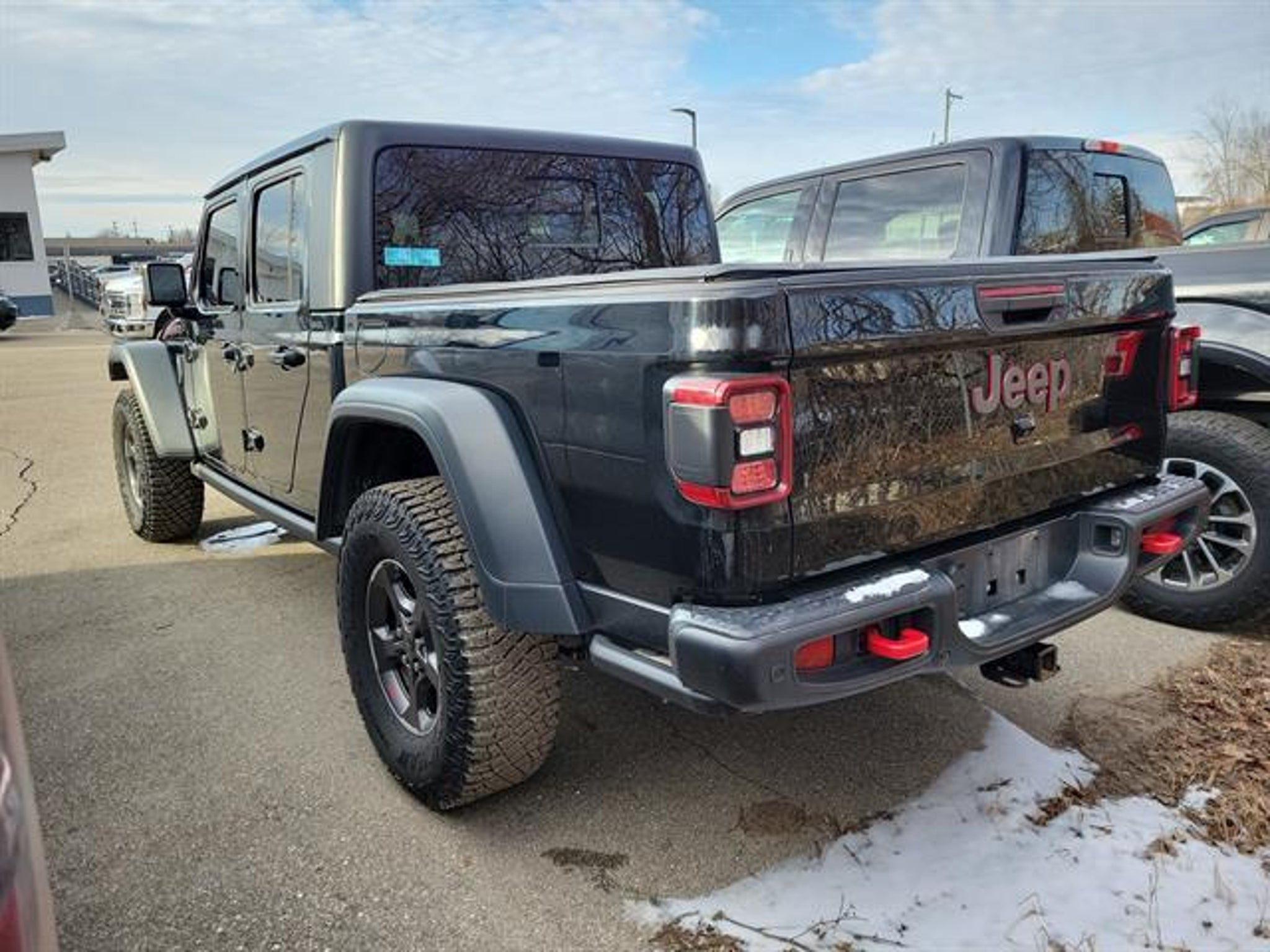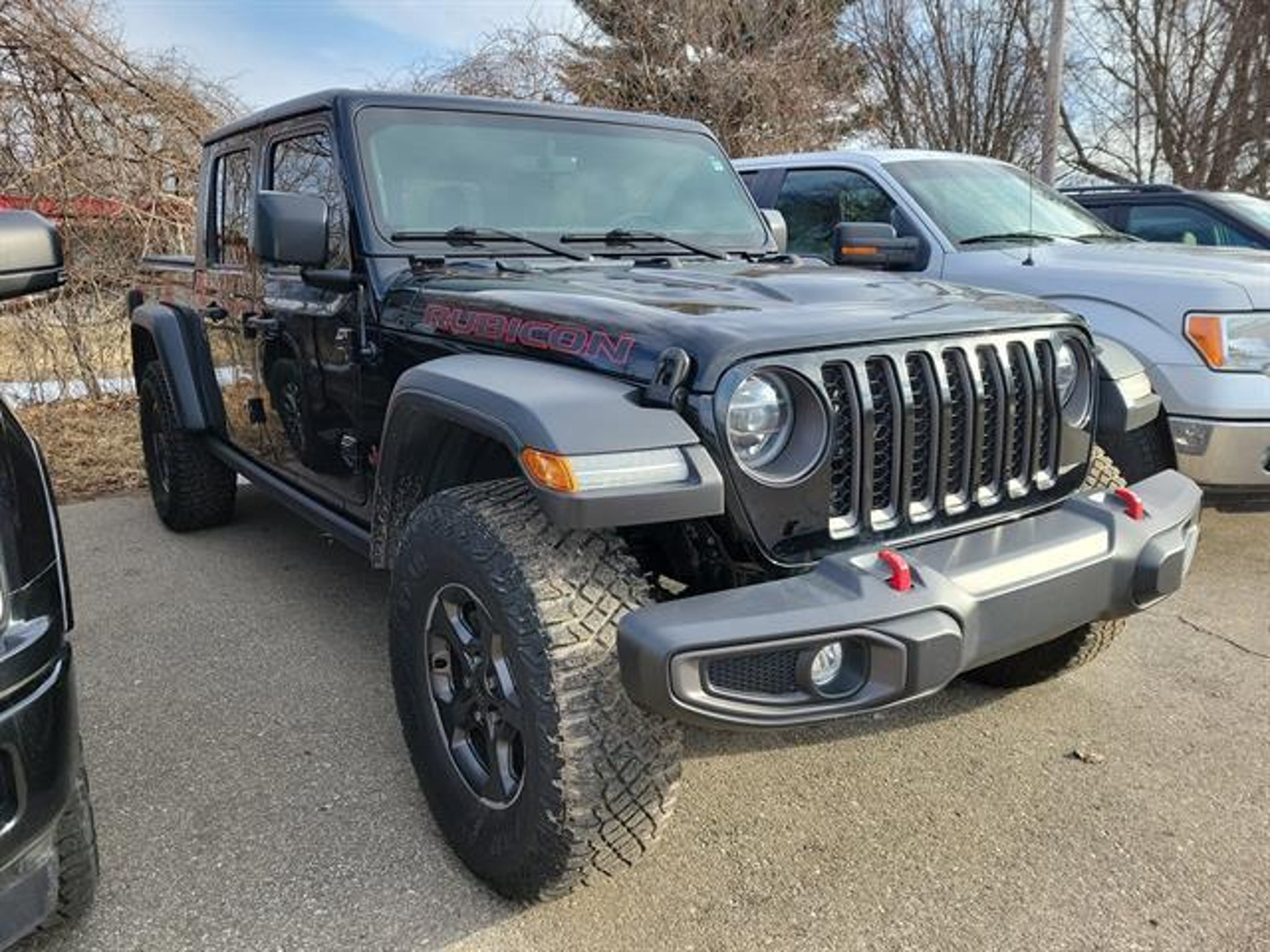 Conquer any terrain in this bold Black 2021 Jeep Gladiator Rubicon 4x4 Crew Cab! Built for adventure, it features a powerful 3.6L V6 engine paired with an 8-speed automatic transmission and legendary Jeep off-road capability, including electronic disconnecting front stabilizer bar, front and rear locking differentials, off-road tuned suspension, and skid plates. Enjoy modern tech like a 7-inch infotainment touchscreen with Uconnect, Apple CarPlay/Android Auto, Bluetooth, and an Alpine Premium Audio System. Comfort meets utility with leather-trimmed bucket seats, automatic climate control, remote start, premium cloth upholstery, and a removable soft top. The Trailer Tow Package, spray-in bedliner, and 7-pin wiring make towing and hauling a breeze. Safety features include rearview camera, blind spot monitoring, and advanced airbags. Ready for work or play, this Gladiator is your ultimate truck for every adventure. Schedule a test drive today! Clean CARFAX