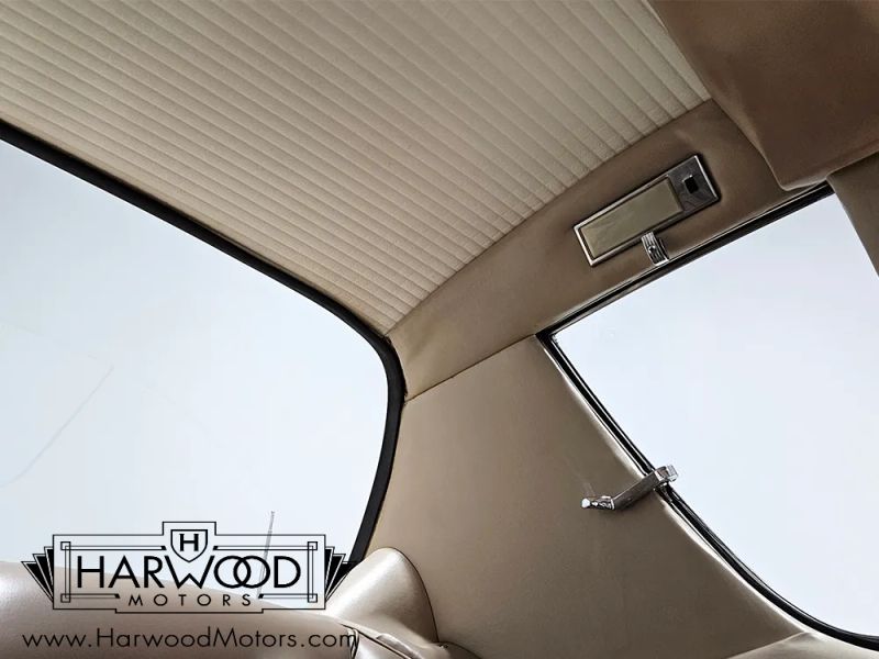 We believe the tan bucket seat interior is mostly original save for the carpets, which are just too nice to be 63 years old. You can see the aircraft influence throughout the drivers compartment, from the wrap-around instrument panel to the lever-style climate controls to the overhead headlight switches. The tan vinyl on the seats remains in excellent condition with no splits or tears, and the foam underneath still feels supportive and comfortable. The stylish two-spoke steering wheel isnt cracked or separated, and it frames a full array of fully operational gauges, including a vacuum gauge (only the clock is inop). The center stack houses the original AM radio, the A/C controls, the heater levers, and theres a cool pop-up vanity inside the glove box. Theres decent space in the back seat, and youll note this car is equipped with rather rare seat belts, an oddity in 1963. The funky ribbed headliner is in excellent condition, and theres a surprisingly spacious trunk in back which includes a full-sized spare tire underneath.