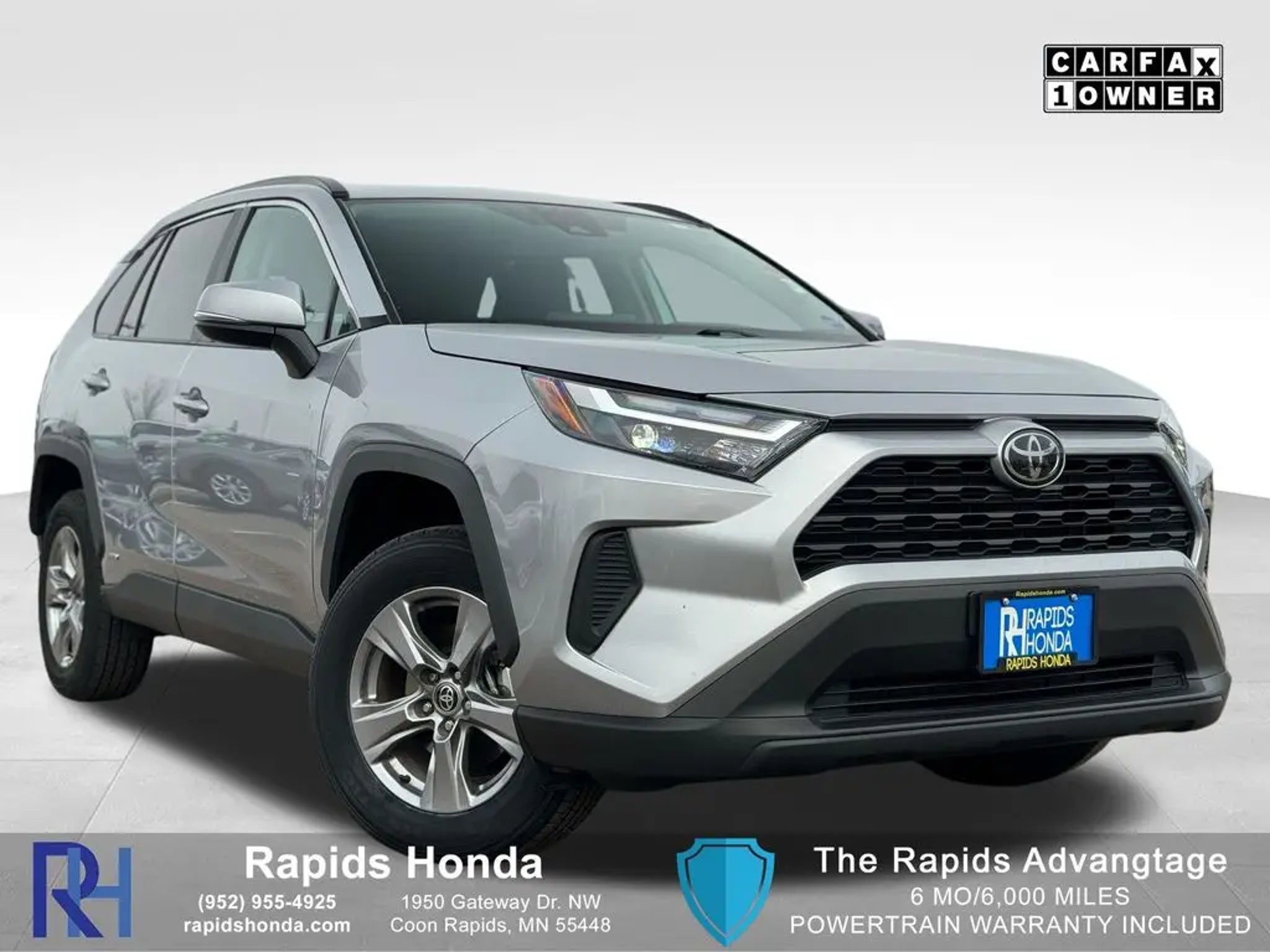 Now Available: Affordable Pre-Owned Silver Sky Metallic/Midnight Black Metallic 2025 Toyota RAV4 Hybrid XLE with 30617 miles at Rapids Honda! This well-equipped used 2025 Toyota RAV4 Hybrid XLE offers AWD traction, a 2.5L 4-Cylinder engine with eCVT, and fuel efficiency rated at 41 MPG city / 38 MPG highway / 39 MPG combined. Standout features include Apple CarPlay/Android Auto Compatibility, Backup Camera, and Toyota Safety Sense 2.5Fabric Seat Trim, Front Bucket Seats, Front dual zone A/C, and Split folding rear seat making it ready for its next adventure. Vehicles are inspected, detailed, and come with a vehicle history report. Available on select pre-owned vehicles at Rapids Honda (see salesperson for details and eligibility requirements), The Rapids Advantage includes a 6-month/6,000-mile Powertrain Warranty covering the engine, EV battery, transmission, and drivetrain, plus $200 deductible protection. You'll also receive Lifetime Car Washes, Lifetime Windshield Repellency, Lifetime Shuttle Service, and Auto Butler Environmental Protection, giving you lasting value beyond your purchase. Visit us at 1950 Gateway Dr NW off Hwy 10 & Hanson Blvd in Coon Rapids, MN, or call us at . Open Monday-Saturday.