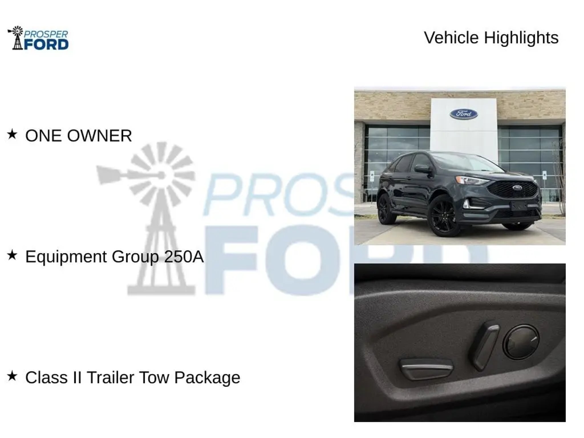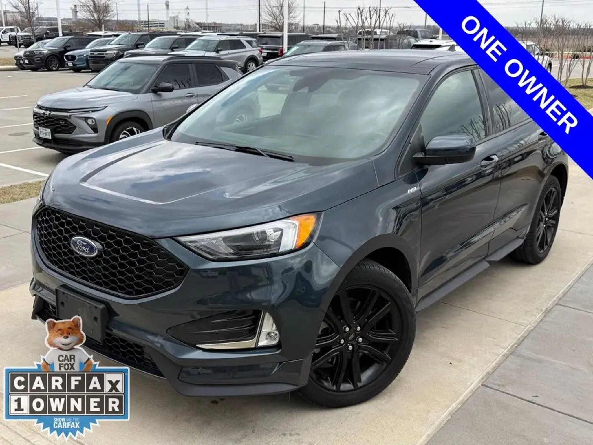 Discover the exceptional 2023 Ford Edge ST Line, a dynamic and versatile SUV that blends power, style, and cutting-edge technology. This one-owner vehicle boasts a captivating Blue exterior, complemented by a host of premium features that elevate the driving experience. - ONE OWNER - PANORAMIC VISTA ROOF - Class II Trailer Tow Package - HEATED STEERING WHEEL - MINI SPARE WHEEL Under the hood, the EcoBoost 2.0L I4 GTDi DOHC Turbocharged VCT engine, paired with an 8-Speed Automatic transmission and All-Wheel Drive, delivers a thrilling and efficient performance, with an impressive 21 city / 28 highway MPG. The Edge ST Line's interior is equally impressive, featuring ActiveX Seating Material Heated Bucket Seats, a Heated Steering Wheel, and a SYNC 4A with Enhanced Voice Recognition system that seamlessly integrates your smartphone and provides a premium audio experience. The Panoramic Vista Roof, with power open/close and a power shade, allows you to enjoy the great outdoors from the comfort of your vehicle. For added convenience, the Class II Trailer Tow Package, which includes trailer sway control, SelectShift capability, and steering wheel-mounted paddle shifters, makes towing a breeze. The Mini Spare Wheel, replacing the standard tire inflator and sealant kit, provides peace of mind on the road. This 2023 Ford Edge ST Line is a true standout in its class, combining exceptional performance, advanced technology, and a host of premium features that will elevate your driving experience. Visit our showroom today and let us demonstrate how this remarkable SUV can enhance your lifestyle.