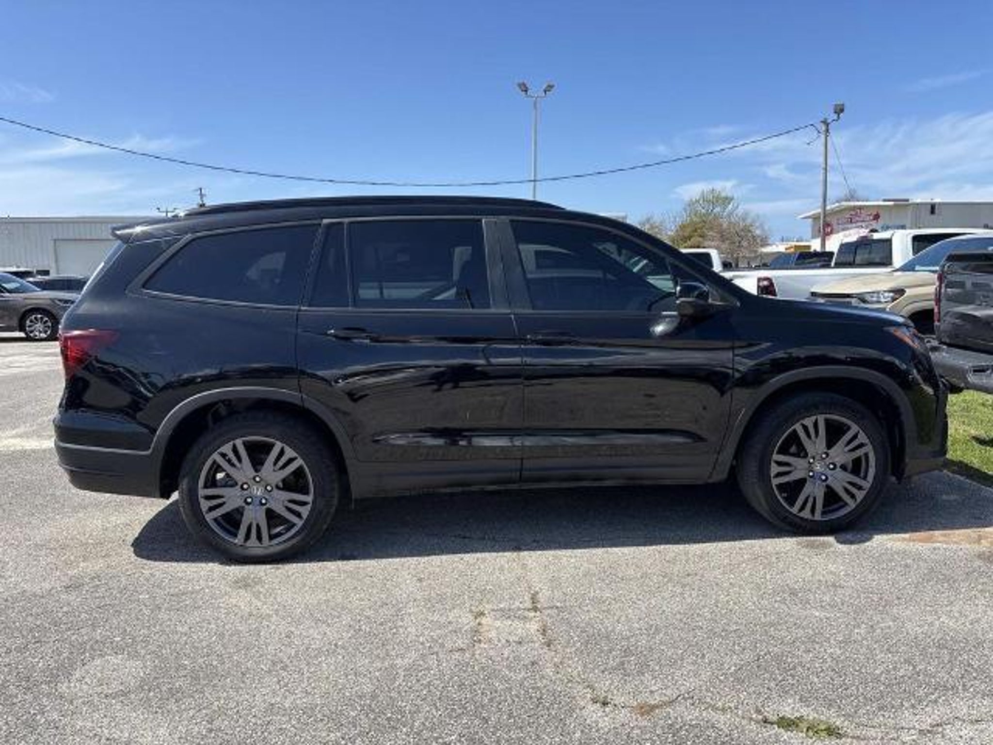 Recent Arrival! Odometer is 14271 miles below market average! 3rd row seats: split-bench, 4-Wheel Disc Brakes, 4.33 Axle Ratio, 7 Speakers, A/V remote: CabinControl, ABS brakes, Air Conditioning, Alloy wheels, AM/FM radio: SiriusXM, Apple CarPlay/Android Auto, Auto High-beam Headlights, Automatic temperature control, Blind Spot Information (BSI) System warning, Brake assist, Bumpers: body-color, Cloth Seat Trim, Delay-off headlights, Driver door bin, Driver vanity mirror, Dual front impact airbags, Dual front side impact airbags, Electronic Stability Control, Emergency communication system: HondaLink Assist, Exterior Parking Camera Rear, Forward collision: Collision Mitigation Braking System (CMBS) FCW mitigation, Four wheel independent suspension, Front anti-roll bar, Front Bucket Seats, Front Center Armrest, Front dual zone A/C, Front fog lights, Front reading lights, Fully automatic headlights, Heated door mirrors, Heated Front Bucket Seats, Heated front seats, Illuminated entry, Lane departure: Lane Keeping Assist System (LKAS) active, Low tire pressure warning, Occupant sensing airbag, Outside temperature display, Overhead airbag, Overhead console, Panic alarm, Passenger door bin, Passenger vanity mirror, Power door mirrors, Power driver seat, Power steering, Power windows, Radio data system, Radio: 215-Watt Audio System, Rear air conditioning, Rear anti-roll bar, Rear reading lights, Rear seat center armrest, Rear window defroster, Rear window wiper, Reclining 3rd row seat, Remote keyless entry, Roof rack: rails only, Security system, Speed control, Speed-sensing steering, Speed-Sensitive Wipers, Split folding rear seat, Spoiler, Steering wheel mounted audio controls, Tachometer, Telescoping steering wheel, Tilt steering wheel, Traction control, Trip computer, Turn signal indicator mirrors, Variably intermittent wipers, Wheels: 20 Pewter Gray Alloy. Black 2022 Honda Pilot Sport FWD 9-Speed Automatic 3.5L V6 24V SOHC i-VTEC