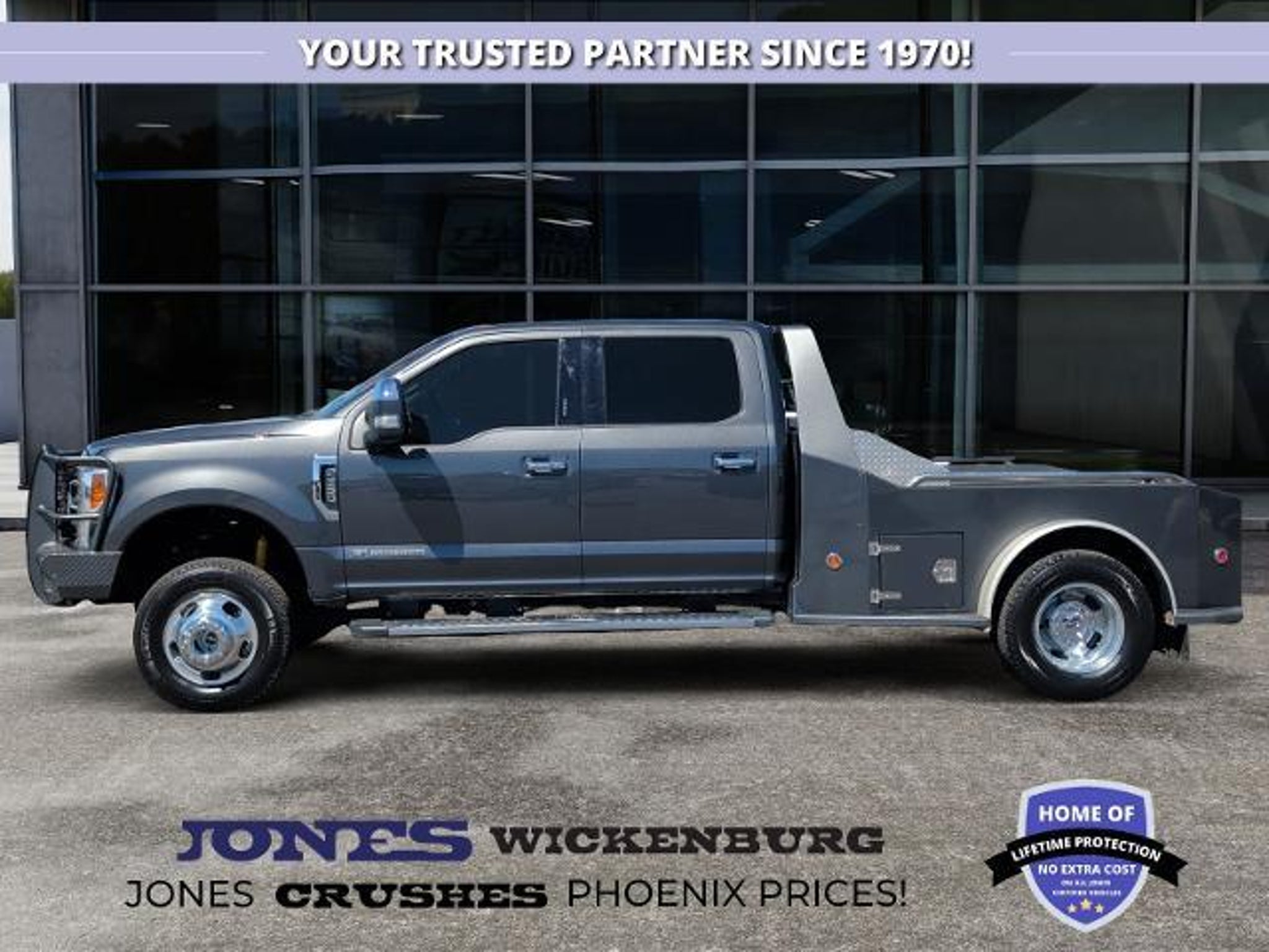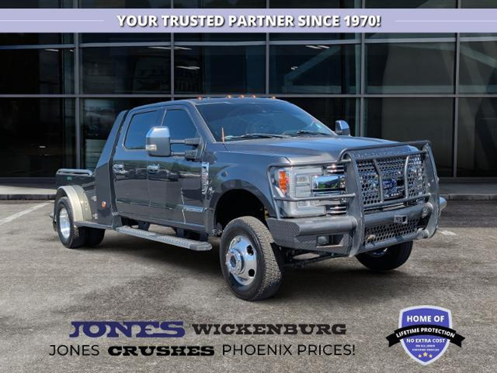 Heavy Duty Strength Meets Everyday Luxury Offered with pride by Jones Ford CJDR Wickenburg When your work demands the very best and your comfort shouldn't come second the 2018 Ford F350 Lariat DRW is the truck that rises above the rest. This isn't just a Super Duty it's a statement of capability, confidence, and craftsmanship. Under the hood lies Fords legendary 6.7L Power Stroke Turbo Diesel V8, producing a class defining 450 horsepower and an immense 935 lb-ft of torque. Comparable 2018 Lariat DRW models deliver this extraordinary output, giving you the muscle to tow up to 21,000 lbs. with conventional towing when properly equipped. This engine was built for the heaviest loads, the steepest climbs, and the longest days and it answers every challenge with quiet, unshakable authority. But the Lariat trim transforms that brute strength into refined comfort. Step inside and you're greeted with an upscale cabin designed to make long days feel effortless. With available leather seating, heated and ventilated front seats, advanced infotainment, and premium finishes, the Lariat blends rugged utility with luxurious calm. Comparable 2018 Lariat Crew Cab models feature thoughtful upgrades that keep you comfortable, connected, and fully in control. The dual rear wheel (DRW) setup isn't just for show it delivers superior stability, confidence, and traction when towing or hauling heavy equipment. For ranchers, contractors, haulers, and adventurers, this DRW platform is the foundation for serious productivity and serious peace of mind. On the road, the F350 Lariat DRW feels planted and powerful. On the job, it feels unstoppable. And at the end of the day, it feels good knowing your truck is built to last. At Jones Ford CJDR Wickenburg, were proud to pair hardworking customers with hardworking trucks always with smalltown honesty, friendly service, and zero pressure. Ready to experience the strength and comfort of this Lariat DRW? Contact us, visit our showroom, or schedule a test drive todayyour next powerhouse is waiting.