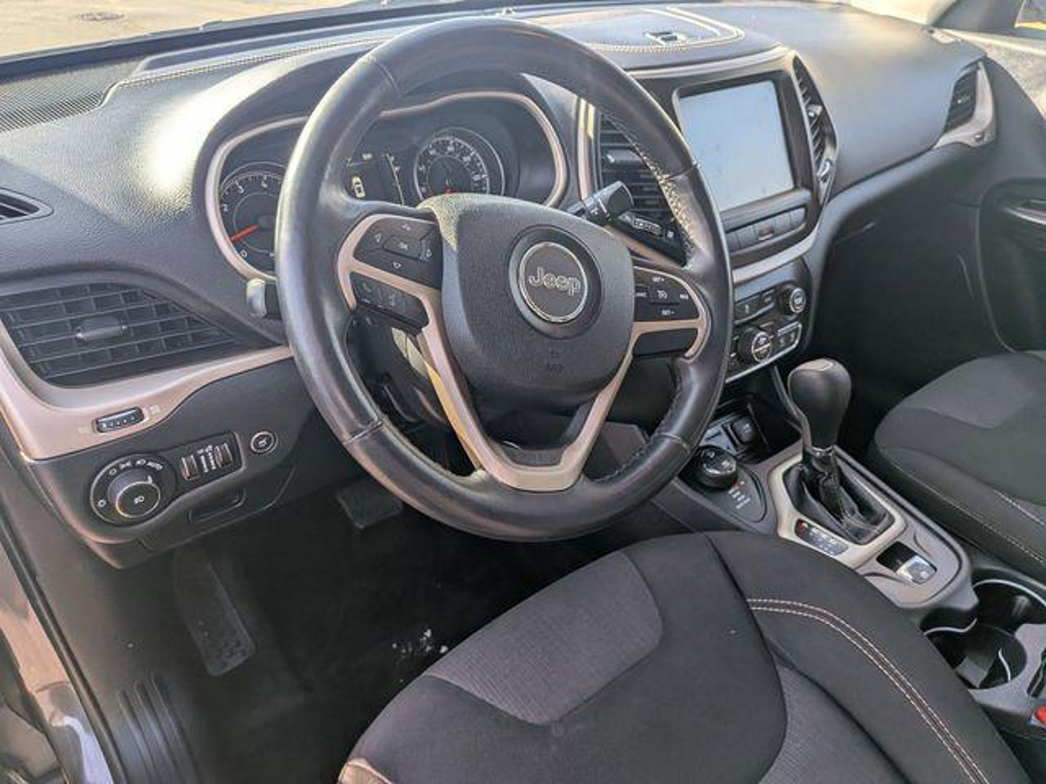 Just Arrived 2015 Jeep Cherokee Latitude 4WD, Clean CARFAX and a Local Trade IN, 9-Speed 948TE Automatic 2.4L 4-Cylinder SMPI SOHC, 1-Year SiriusXM Radio Service, 17 x 7 Aluminum Wheels, 6 Month Trial (Registration Required), 7 & 4 Pin Wiring Harness, 8.4 Touch Screen Display, Air Conditioning ATC w/Dual Zone Control, Auxiliary Transmission Oil Cooler, Cargo Net, Class III Receiver Hitch, Comfort/Convenience Group, Compass, For Details Go To DriveUconnect.com, Harman Radio Manufacturer, Humidity Sensor, Integrated Voice Command w/Bluetooth, Nav Capable! See Dealer For Details, Passive Entry/Keyless Go, Power 8-Way Driver Seat, Power Liftgate, Premium Air Filter, Quick Order Package 25J, Radio: Uconnect 8.4A AM/FM/SXM/BT, Rear-View Auto-Dimming Mirror w/Microphone, Remote Proximity Keyless Entry, Remote Start System, Remote USB Port, Security Alarm, SIRIUSXM Satellite Radio, Trailer Tow Group, Trailer Tow Wiring Harness, Uconnect Access, Universal Garage Door Opener. Please Call Recent Arrival! Odometer is 43855 miles below market average! 21/28 City/Highway MPG