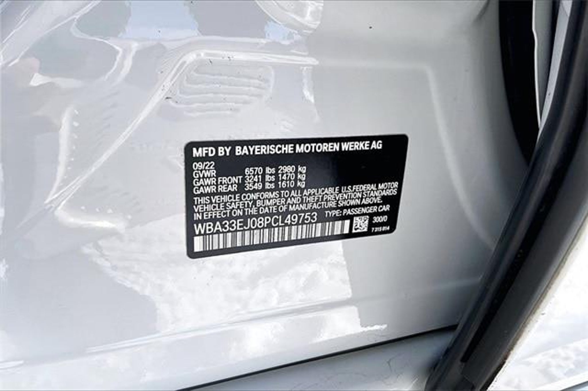 VIN WBA33EJ08PCL49753