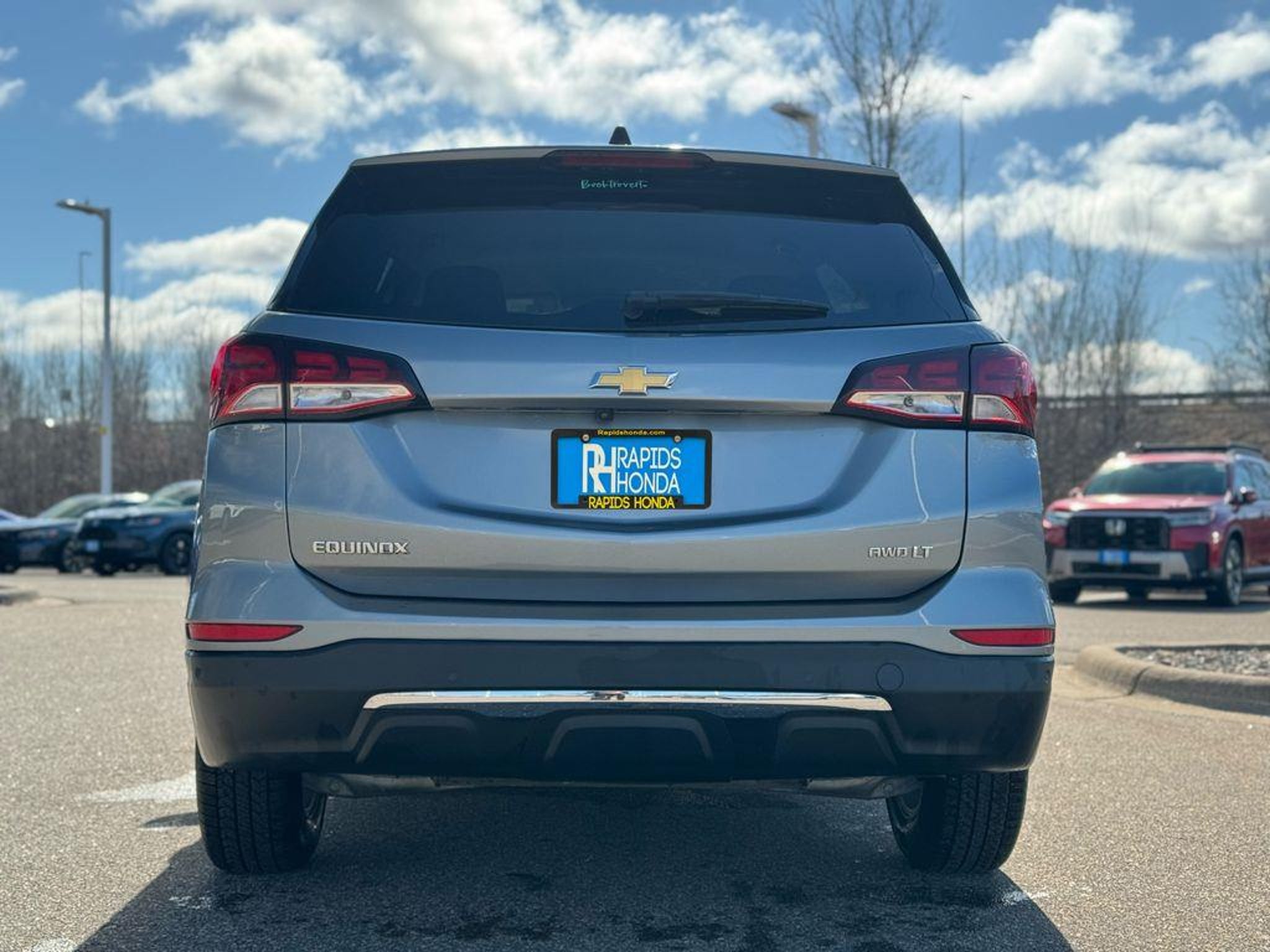 Now Available: Affordable Pre-Owned Sterling Gray Metallic 2023 Chevrolet Equinox LT with 114908 miles at Rapids Honda! This well-equipped used 2023 Chevrolet Equinox LT offers AWD traction, a 1.5L DOHC engine with 6-Speed Automatic Electronic with Overdrive, and fuel efficiency rated at 24 MPG city / 30 MPG highway / 26 MPG combined. Standout features include Adaptive Cruise Control and Apple CarPlay/Android Auto CompatibilityAdvanced Safety Package (Adaptive Cruise Control, HD Surround Vision, and Outside Heated Power-Adjustable Mirrors), Confidence & Convenience Package, Infotainment Package (120-Volt Power Outlet, 2 Rear USB Charging-Only Ports, 2 USB Data Ports, 2 USB Data Ports w/SD Card Reader, Bluetooth® For Phone, Heated Steering Wheel, Radio: Chevrolet Infotainment 3 Plus System, and SiriusXM Radio), Safety & Infotainment Package, Heated Driver & Front Passenger Seats, Lane Change Alert w/Side Blind Zone Alert, Premium Cloth Seat Trim, and Rear Power Liftgate making it ready for its next adventure. Vehicles are inspected, detailed, and come with a vehicle history report. Visit us at 1950 Gateway Dr NW off Hwy 10 & Hanson Blvd in Coon Rapids, MN, or call us at . Open Monday-Saturday.