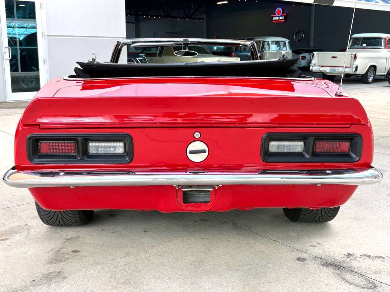 1968 Chevrolet Camaro Convertible 327 V8, Custom Pro-Touring Build Why This Car Is Special The 1968 Chevrolet Camaro is widely considered the sweet spot of the first-generation run. Chevrolet refined the platform after its 1967 debut, giving the 1968 model a revised front end with hidden windshield wipers, revised side marker lights to meet new federal safety standards, and a cleaner overall appearance that collectors have preferred ever since. The first-generation Camaro was Chevrolet's direct answer to the Ford Mustang, developed under the internal code name 'Panther' and rushed to market in just two years. By 1968, the formula was dialed in. The convertible body style makes this particular 1968 Chevrolet Camaro a rarer find. Of the roughly 235,000 Camaros produced for the 1968 model year, just over 20,000 were convertibles meaning the open-top cars accounted for less than 10 percent of total production. Survivors in this configuration that have been thoughtfully built rather than neglected are not easy to locate. The VIN on this car decodes to a Norwood, Ohio assembly plant build one of two plants producing Camaros in 1968, alongside Van Nuys, California. The Norwood facility had a strong reputation for quality among first-gen Camaro enthusiasts, and plant of origin is a detail that matters to serious collectors. This is not a garage-kept stocker. It has been built as a driver a pro-touring style 1968 Chevrolet Camaro Convertible with real performance upgrades under the hood, underneath the car, and inside the cabin. The modifications are brand-name, purposeful, and executed with the kind of consistency that separates a well-planned build from a parts-bin assembly. Features List - 327 cubic inch V8 engine - Automatic transmission with horseshoe-style floor shifter - Convertible body style with black convertible top - Headers and dual exhaust - MSD ignition system - Champion aluminum radiator - Wilwood disc brakes and Wilwood master cylinder - Power steering - Tubular control arms - Performance open-element air cleaner - Auto Meter Pro-Comp gauge cluster - Tilt steering column - Custom GT steering wheel - Upgraded bucket seats - Bluetooth-equipped retro-style sound system - Kick panel speakers and tweeters - Interior underglow lighting - Chrome Torque-Thrust style wheels - Blacked-out grille - Chrome front and rear bumpers - Red exterior - Black vinyl interior Mechanical The engine in this 1968 Chevrolet Camaro Convertible is a 327 cubic inch small block V8 a displacement with a long and respected history in Chevrolet's performance lineup. The 327 was offered in various states of tune across Chevrolet's product range throughout the 1960s, and its combination of light weight and free-revving character made it a favorite among drivers who valued balance over brute force. It is not the largest small block, but in a car that weighs under 3,400 pounds, it does not need to be. The engine bay shows the work that has gone into this build. Tubular headers feed into a true dual exhaust system, improving scavenging and giving the engine a sound that the factory cast manifolds simply cannot replicate. An MSD ignition system handles spark delivery, which meaningfully improves throttle response and consistency across the RPM range compared to a points-style distributor. A performance open-element air cleaner sits on top, and a Champion aluminum radiator handles cooling duties more efficiently than the original brass-and-copper unit. The Wilwood brake system is a practical and well-respected upgrade. Wilwood is an American manufacturer that supplies brake components to professional racing teams, and their disc brake conversion kits are among the most common and proven upgrades on pro-touring classic cars for good reason. Paired with a Wilwood master cylinder, the braking system on this car is far more capable than anything that left the Norwood plant in 1968. Tubular control arms at the front suspension imp