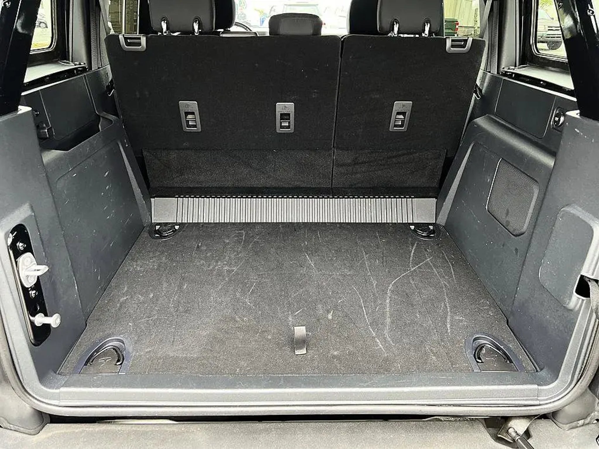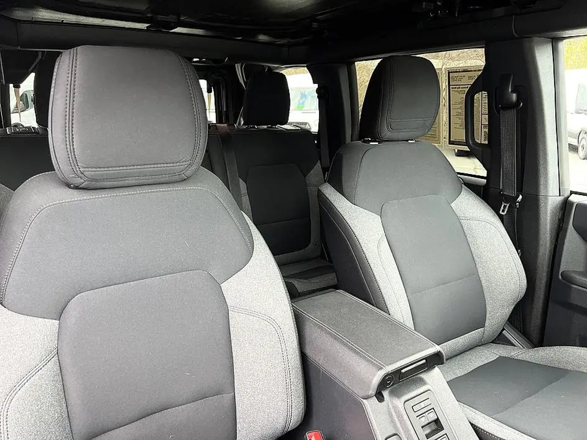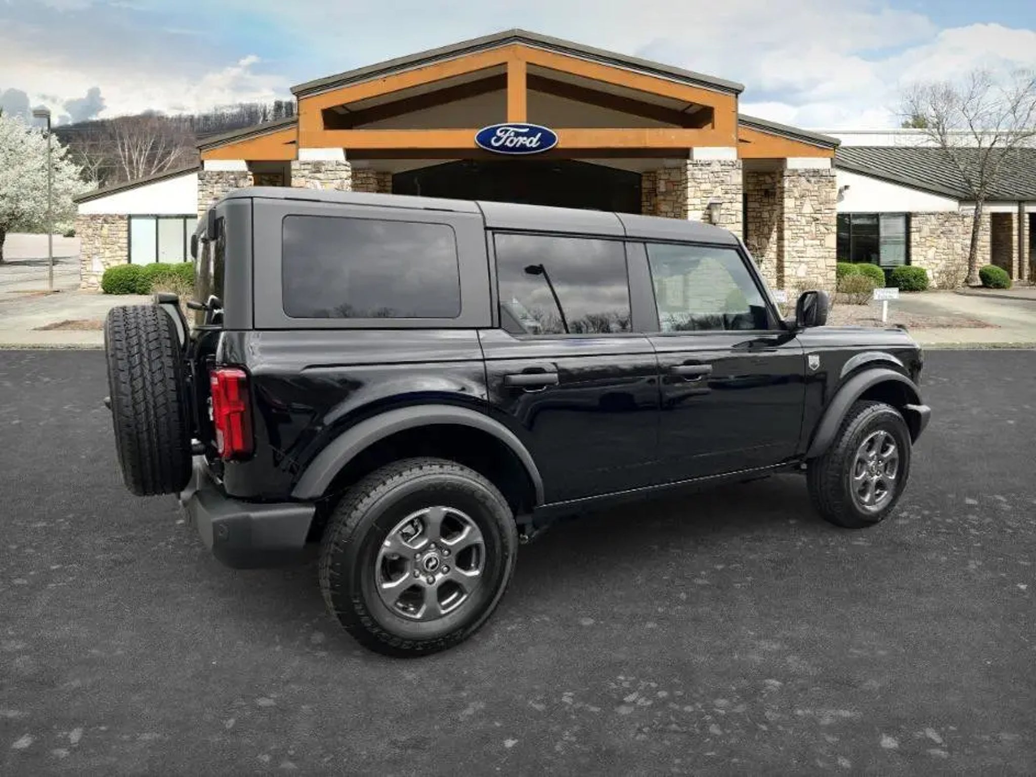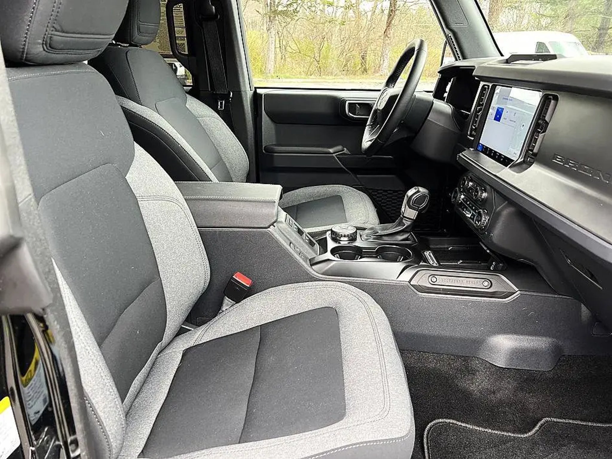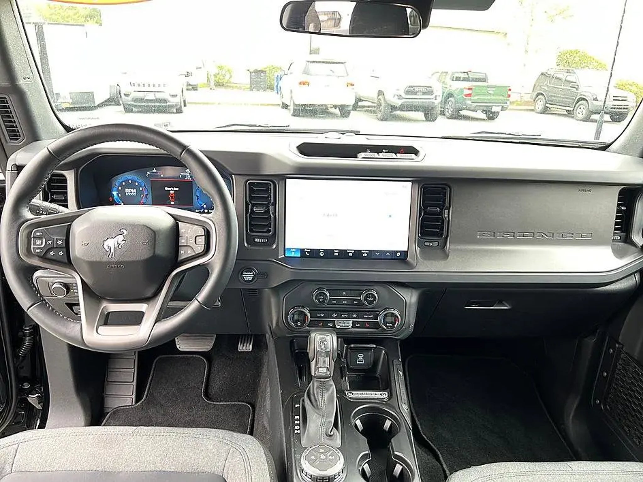 The 2025 Ford Bronco Big Bend is a rugged midsize SUV designed to balance everyday comfort with strong off-road capability. It comes standard with a 2.3-liter turbocharged EcoBoost® inline-4 engine producing up to about 300 horsepower paired with either a 7-speed manual transmission or an available 10-speed automatic, along with standard four-wheel drive for confident performance on various terrains. The Bronco Big Bend features the Terrain Management SystemTM with multiple G.O.A.T. (Goes Over Any Terrain) drive modes, helping adapt to mud, sand, snow, and other challenging conditions. The exterior includes durable styling with 17-inch wheels, all-terrain tires, black trim accents, and removable roof panels and doors for an open-air driving experience. Inside, the cabin offers comfortable cloth seating, a digital instrument cluster, modern infotainment with a touchscreen and smartphone connectivity, and practical features designed for outdoor use. Safety technologies include driver-assistance systems such as pre-collision assist with automatic emergency braking and blind-spot monitoring, making the 2025 Ford Bronco Big Bend a versatile SUV that combines daily usability with true adventure-ready capability.. Shadow Black 4WD CARFAX One-Owner.2025 Ford Bronco Big Bend