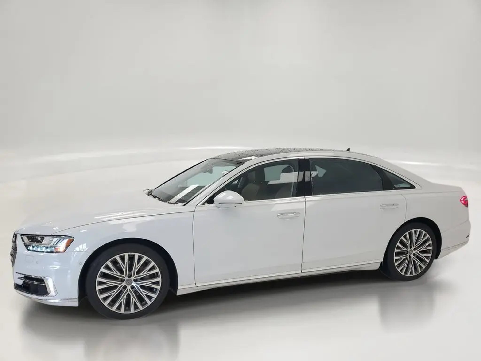 New Price! Glacier White Metallic 2019 Audi A8 4D Sedan L 55 quattro 3.0L V6 Turbocharged DOHC 24V ULEV II 335hp quattro Odometer is 12037 miles below market average! NAVIGATION, LEATHER, CLEAN CARFAX, HEATED SEATS, CUSTOM WHEELS, BLUETOOTH, USB CONNECTION, BACK UP CAMERA, PANORAMIC SUNROOF, BELOW MARKET VALUE, PUSH BUTTON START, ALL WHEEL DRIVE, A8 L 55 quattro, 4D Sedan, 3.0L V6 Turbocharged DOHC 24V ULEV II 335hp, 8-Speed Automatic with Tiptronic, quattro, Glacier White Metallic, Saiga Beige Leather, Acoustic & Break Resistant Dual Pane Glass, Adaptive Windshield Wiping System, Audi Active Lane Assist, Audi Adaptive Cruise Assist, Audi Head-Up Display, Audi Phone Box, Audi Pre Sense Basic & Rear, Audi Side Assist, Chrome Exterior Package, Cold Weather Package, Driver Assistance Package, Executive Package, HD Matrix-Design LED Headlights, Heated 4-Spoke Multifunction Steering Wheel, Heated Front Surfaces, Heated Rear Outboard Seats, Intersection Assist, Lighting Package, OLED Taillights w/Animation, Top View Camera System, Traffic Sign Recognition, Ventilated Comfort Front Seats. This A8 is well equipped with Chrome Exterior Package, Cold Weather Package (Adaptive Windshield Wiping System, Heated Front Surfaces, and Heated Rear Outboard Seats), Driver Assistance Package (Audi Active Lane Assist, Audi Adaptive Cruise Assist, Intersection Assist, and Traffic Sign Recognition), Executive Package (Acoustic & Break Resistant Dual Pane Glass, Audi Head-Up Display, Audi Phone Box, Audi Pre Sense Basic & Rear, Audi Side Assist, Heated 4-Spoke Multifunction Steering Wheel, Top View Camera System, and Ventilated Comfort Front Seats), Lighting Package (HD Matrix-Design LED Headlights and OLED Taillights w/Animation), A8 L 55 quattro, 4D Sedan, 3.0L V6 Turbocharged DOHC 24V ULEV II 335hp, 8-Speed Automatic with Tiptronic, quattro, Glacier White Metallic, Saiga Beige Leather, 17 Speakers, 4-Wheel Disc Brakes, ABS brakes, Adaptive suspension, Air Conditioning, Alloy wheels, AM/FM radio: SiriusXM, Audi smartphone interface (Apple CarPlay/Android Auto), Auto High-beam Headlights, Auto tilt-away steering wheel, Auto-dimming door mirrors, Auto-dimming Rear-View mirror, Auto-leveling suspension, Automatic temperature control, Bang & Olufsen 3D Premium Sound System, Brake assist, Bumpers: body-color, Compass, Delay-off headlights, Door auto-latch, Driver door bin, Driver vanity mirror, Dual front impact airbags, Dual front side impact airbags, Electronic Stability Control, Emergency communication system: Audi connect CARE, Exterior Parking Camera Rear, Four wheel independent suspension, Front anti-roll bar, Front Bucket Seats, Front Center Armrest w/Storage, Front dual zone A/C, Front fog lights, Front reading lights, Garage door transmitter: HomeLink, Genuine wood console insert, Head restraints memory, Headlight cleaning, Heated door mirrors, Heated Front Seats, Heated front seats, HVAC memory, Illuminated entry, Knee airbag, Leather Shift Knob, Leather steering wheel, Low tire pressure warning, Memory seat, Navigation System, Occupant sensing airbag, Outside temperature display, Overhead airbag, Overhead console, Panic alarm, Passenger door bin, Passenger vanity mirror, Power 2nd-Row Moonroof, Power adjustable front head restraints, Power door mirrors, Power driver seat, Power moonroof, Power passenger seat, Power steering, Power windows, Radio data system, Radio: Audi MMI Navigation Plus, Rain sensing wipers, Rear air conditioning, Rear anti-roll bar, Rear dual zone A/C, Rear fog lights, Rear reading lights, Rear seat center armrest, Rear side impact airbag, Rear Window Blind, Rear window defroster, Remote keyless entry, Seatbelt memory, Security system, Speed control, Speed-sensing steering, Speed-Sensitive Wipers, Steering wheel memory, Steering wheel mounted audio controls, Tachometer, Telescoping steering wheel, Tilt steering wheel, Traction control, Trip computer, Turn signal indicator mirrors, Valetta Leather Seat Upholstery, Varia