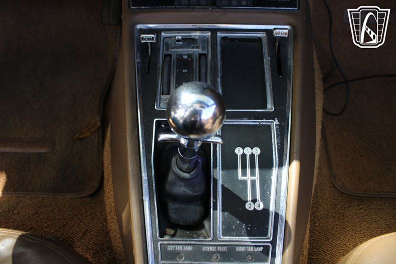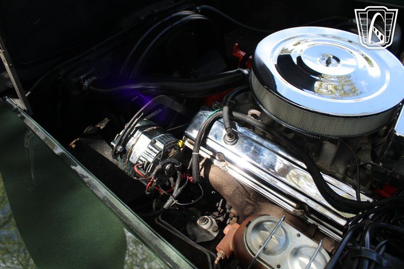 Slide into the driver's seat and feel the embrace of the tan interior, a timeless pairing with the bold green exterior. Your hands naturally find their place on the steering wheel, and as you glance over the dash, the classic styling of the gauges and controls takes you back to an era when driving was all about connection and passion. With the 4-speed manual transmission at your fingertips, you're in complete control, ready to unleash the power of the 350 cubic inch V8 engine under the hood.