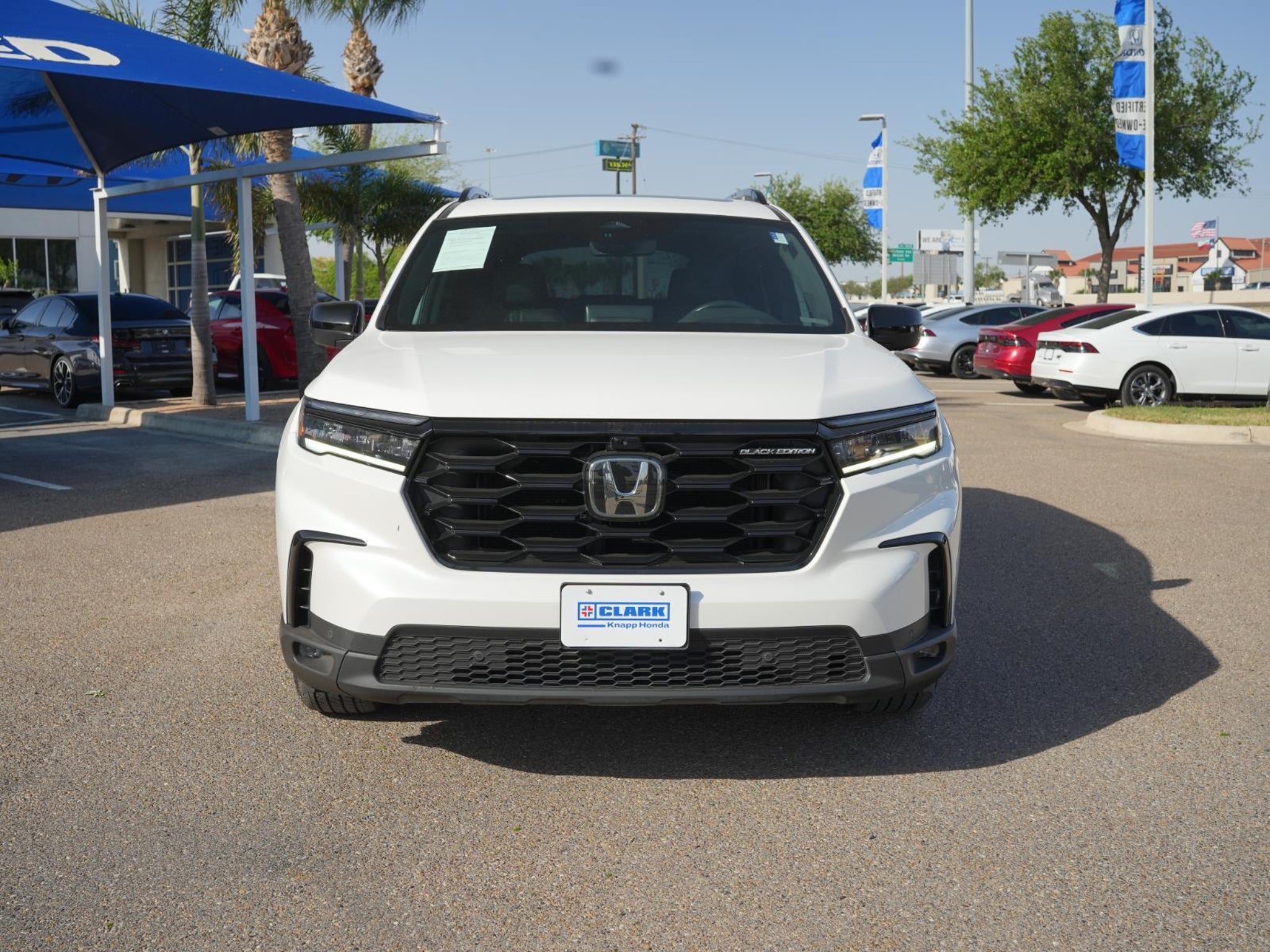 This Certified 2025 Honda Pilot Black Edition|has a Platinum White Pearl exterior and an Black interior color. 20,574 miles. Stock Number 56424A. You can connect with us by calling .\n \n\n\nNo Accidents! One Owner! \n \n\n Important Package and Feature Information \n\n\n\n\n\n Safety and Security Forward collision mitigation - Forward thinking. You look away for just a second and suddenly the vehicle in front of you has stopped. That's when the forward collision mitigation system comes to life. When it senses an impending impact, it will activate a combination of features to help prevent or reduce the severity of an accident. Forward collision mitigation is always looking ahead. Pedestrian impact prevention - An extra step toward safety. Pedestrians don't always stop, look, and listen, but with Pedestrian Impact Prevention, your vehicle is equipped to better see them and avoid them. This system constantly monitors the road ahead to identify and track pedestrians. It projects that image to an interior display screen, AND should an impact become likely, Pedestrian impact prevention takes steps to avoid a collision. Hands-on cruise control. Set it and forget it. Road trips used to be stressful. Cruise control only managed speed, but not distance or safety. Now, with hands-on cruise control, simply set your desired speed and let sensor technology maintain a safe distance between you and surrounding vehicles. It slows you down; speeds you up and even keeps you in your own lane. Meet your ultimate co-pilot with hands-on cruise control. Technology and Telematics Apple CarPlay/Android Auto smart device wireless mirroring Mobile hotspot - WiFi on the fly. Connect your devices to the Internet through your vehicle's private mobile hotspot and take the internet wherever your journey takes you, without eating up your data allowance. Find the hotspot with mobile hotspot. \n\nPLATINUM WHITE PEARL, BLACK, PERFORATED LEATHER SEAT TRIM \n Cars have been part of the Clark family since 1933 when we opened our first dealership. After building a strong reputation with our family owned and operated business, we have expanded our offerings to include trusted automakers like Honda. Now a 33-year Honda veteran, Clark Knapp Honda is proud to offer friendly service in a beautiful, modern building. This newer and larger facility is home to an express service lane, complimentary Wi-Fi, a kids entertainment zone, and an on-site full-service Allstate insurance agency. Our updated modern facility puts drivers and their families first.