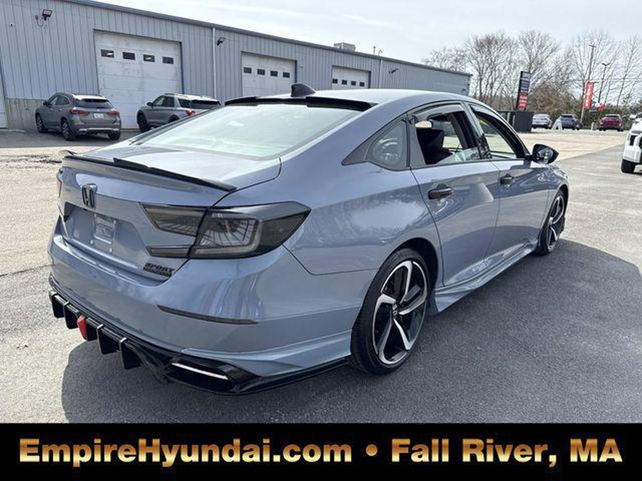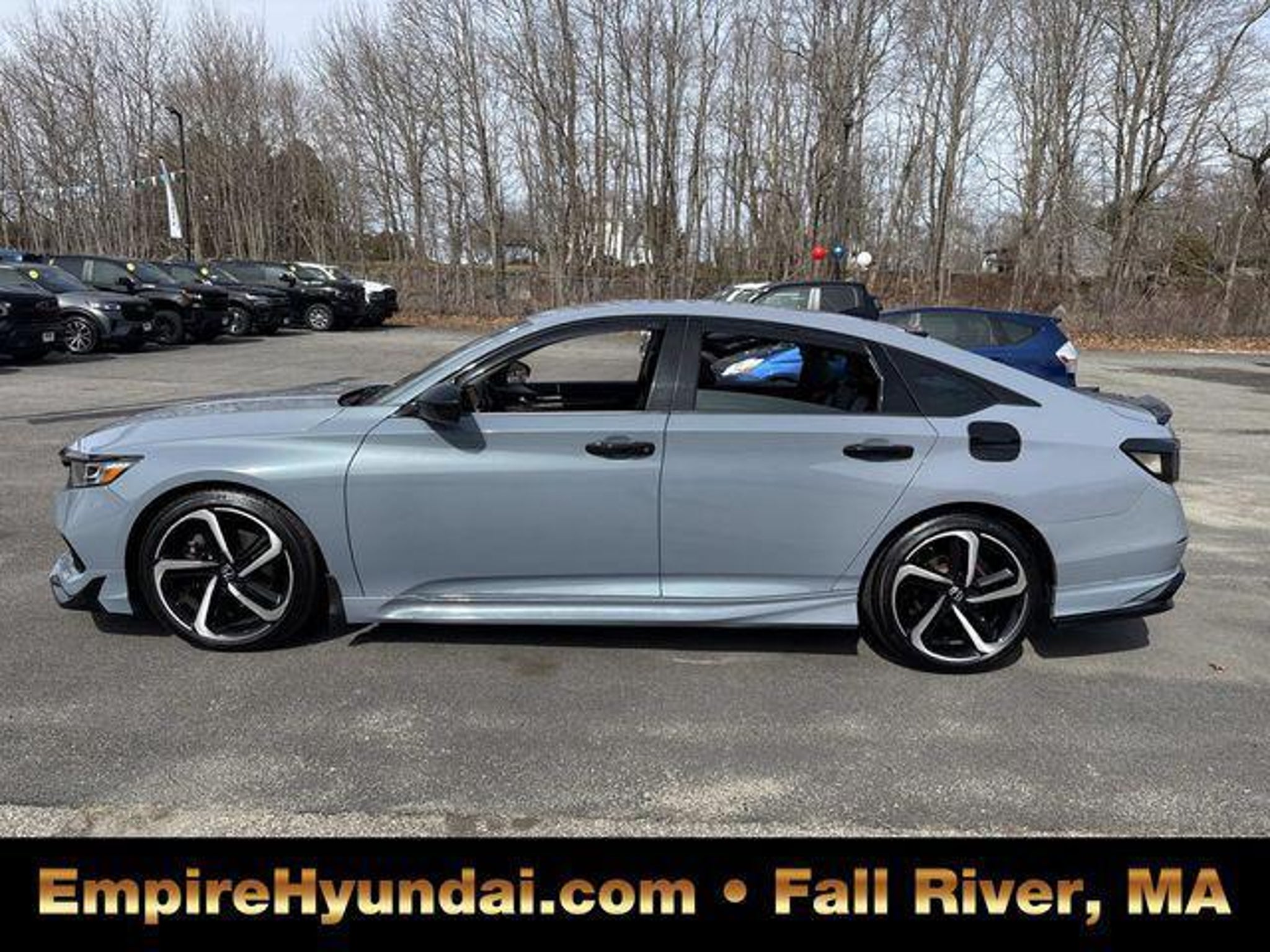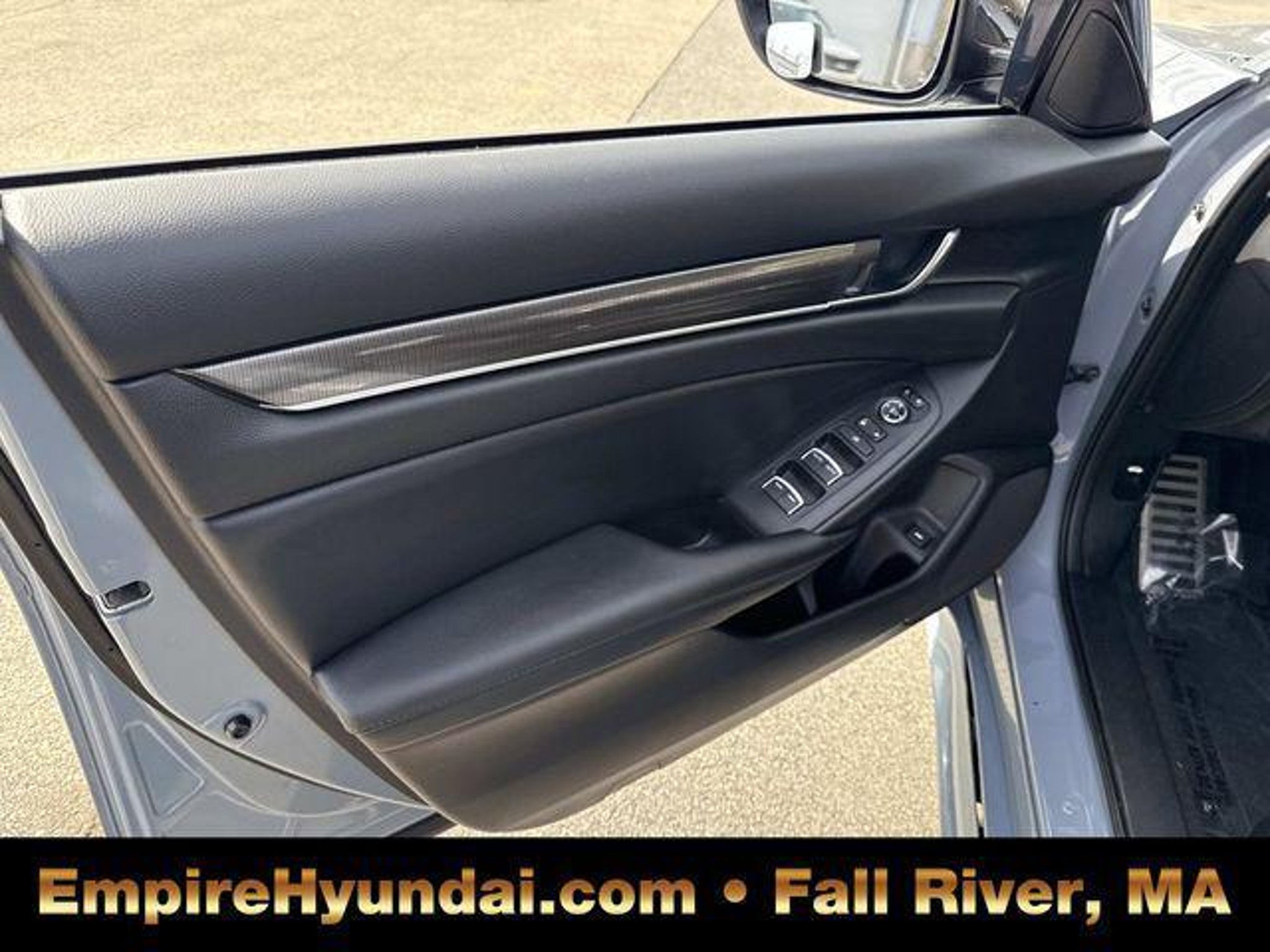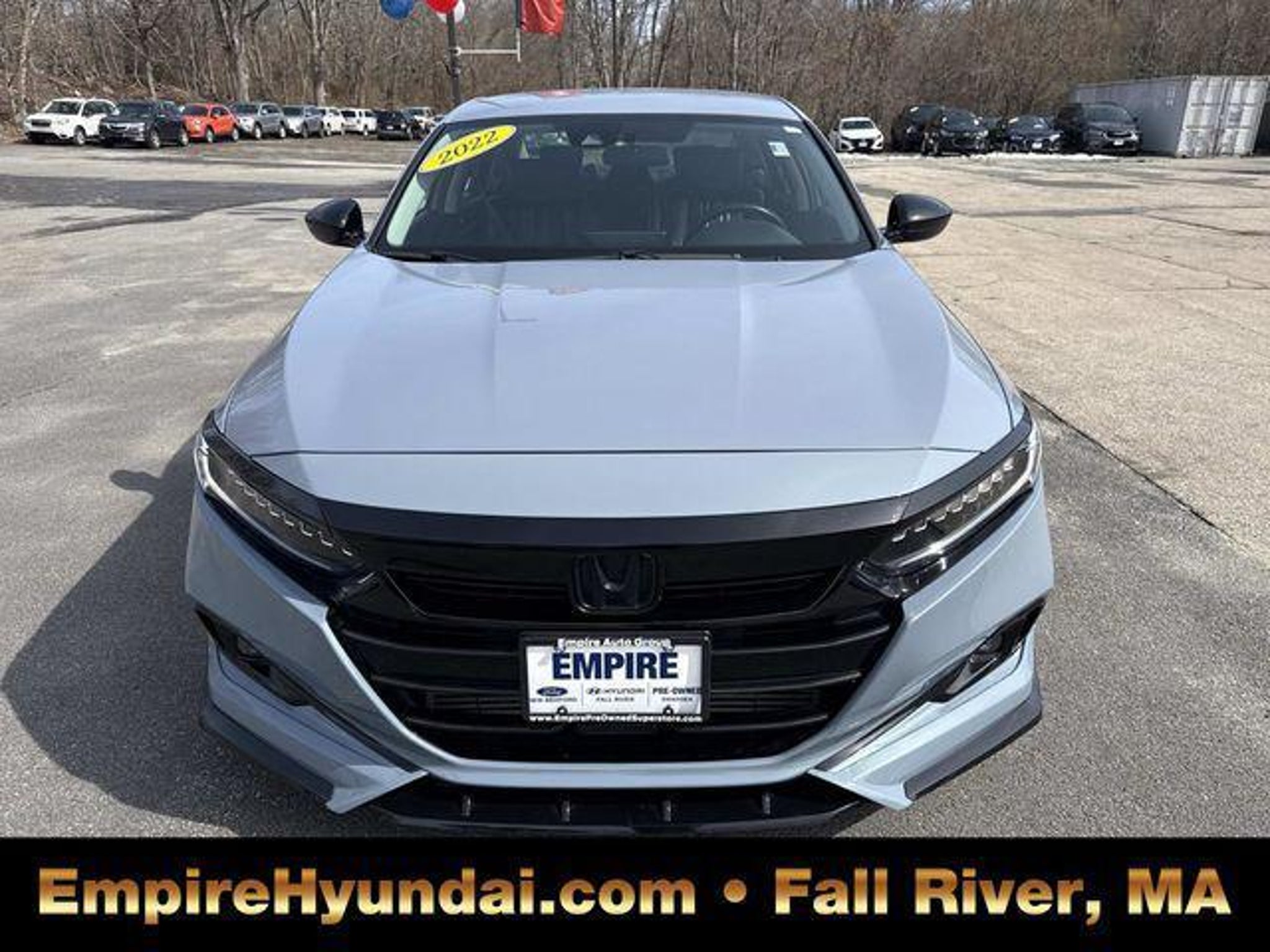 This vehicle has undergone the exact same 173-point rigorous inspection required for our CPO inventory, performed by our factory-trained technicians. You get a vehicle inspected to the highest standard without paying the certification fee. 150 Point Inspection, Accord Sport Special Edition, 4D Sedan, 1.5T I4 DOHC 16V Turbocharged VTEC, CVT, FWD, Sonic Gray Pearl, Black Leather, 4-Wheel Disc Brakes, 8 Speakers, ABS brakes, Adaptive Cruise Control: Adaptive Cruise Control (ACC) with Low-Speed Follow, Air Conditioning, Alloy wheels, AM/FM radio, Apple CarPlay/Android Auto, Auto High-beam Headlights, Automatic temperature control, Brake assist, Bumpers: body-color, Delay-off headlights, Driver door bin, Driver vanity mirror, Dual front impact airbags, Dual front side impact airbags, Electronic Stability Control, Emergency communication system: HondaLink, Exterior Parking Camera Rear, Forward collision: Collision Mitigation Braking System (CMBS) FCW mitigation, Four wheel independent suspension, Front anti-roll bar, Front Bucket Seats, Front Center Armrest, Front dual zone A/C, Front fog lights, Front reading lights, Fully automatic headlights, Heated door mirrors, Heated Front Bucket Seats, Heated front seats, Illuminated entry, Knee airbag, Lane Departure Warning System, Leather Shift Knob, Leather steering wheel, Low tire pressure warning, Occupant sensing airbag, Outside temperature display, Overhead airbag, Overhead console, Panic alarm, Passenger door bin, Passenger vanity mirror, Perforated Leather Seat Trim, Power door mirrors, Power driver seat, Power passenger seat, Power steering, Power windows, Radio data system, Radio: 180-Watt AM/FM Audio System, Rear anti-roll bar, Rear seat center armrest, Rear window defroster, Remote keyless entry, Security system, Speed control, Speed-sensing steering, Split folding rear seat, Spoiler, Steering wheel mounted audio controls, Tachometer, Telescoping steering wheel, Tilt steering wheel, Traction control, Trip computer, Variably intermittent wipers, Wheels: 19 Machine-Finished Alloy w/Black Inserts. Sonic Gray Pearl 2022 Honda Accord Sport Special Edition 4D Sedan FWD CVT 29/35 City/Highway MPG 1.5T I4 DOHC 16V Turbocharged VTEC Centrally located in Fall River, Empire Hyundai proudly serves the South Coast and East Bay communities. We are just a short drive from Somerset, Swansea, and Dartmouth, as well as New Bedford, Providence, Newport, Taunton, Raynham, Attleboro, Dighton, Rehoboth, Tiverton and Providence. Whether you are visiting from Freetown or Seekonk, premium service is right around the corner. Visit our showroom at 428 Pleasant Street, Fall River, MA, or explore our inventory online at EmpireHyundai.com Or call us at .