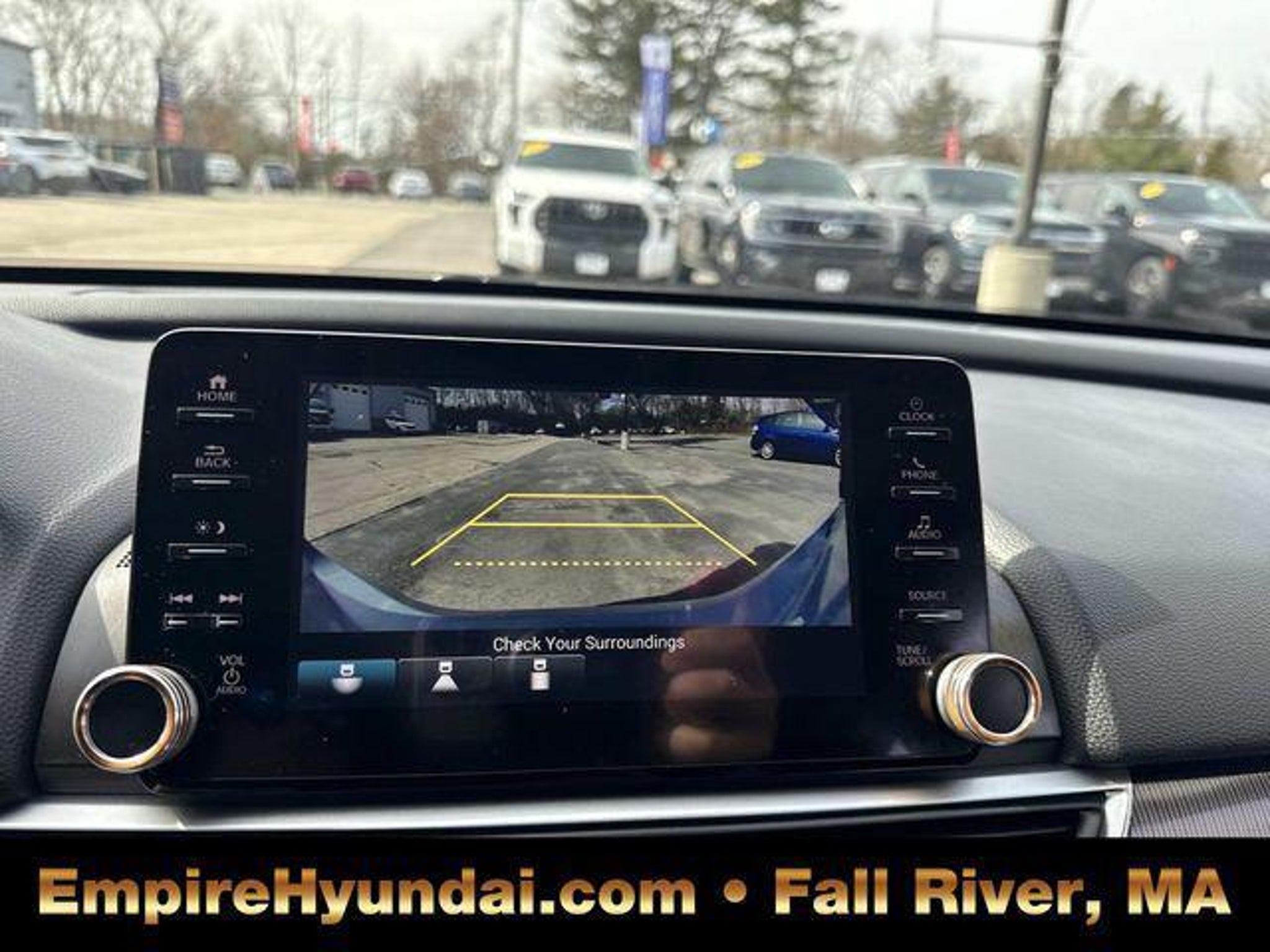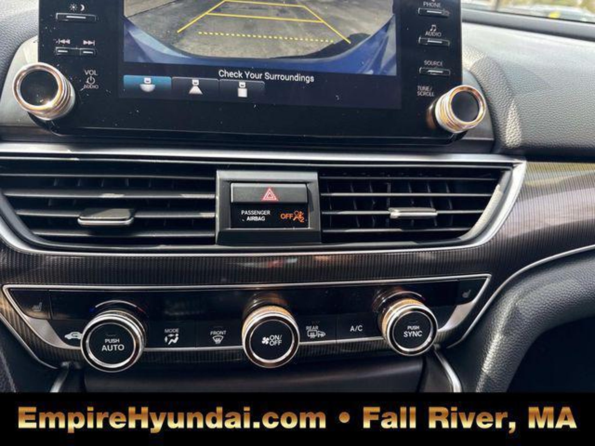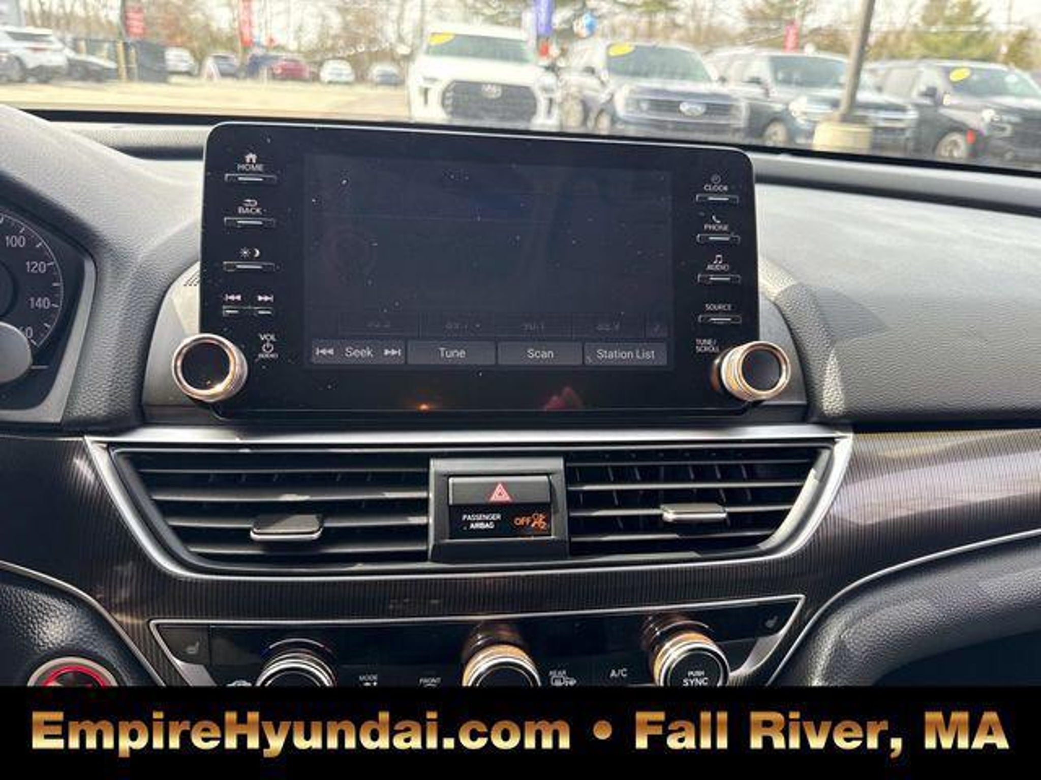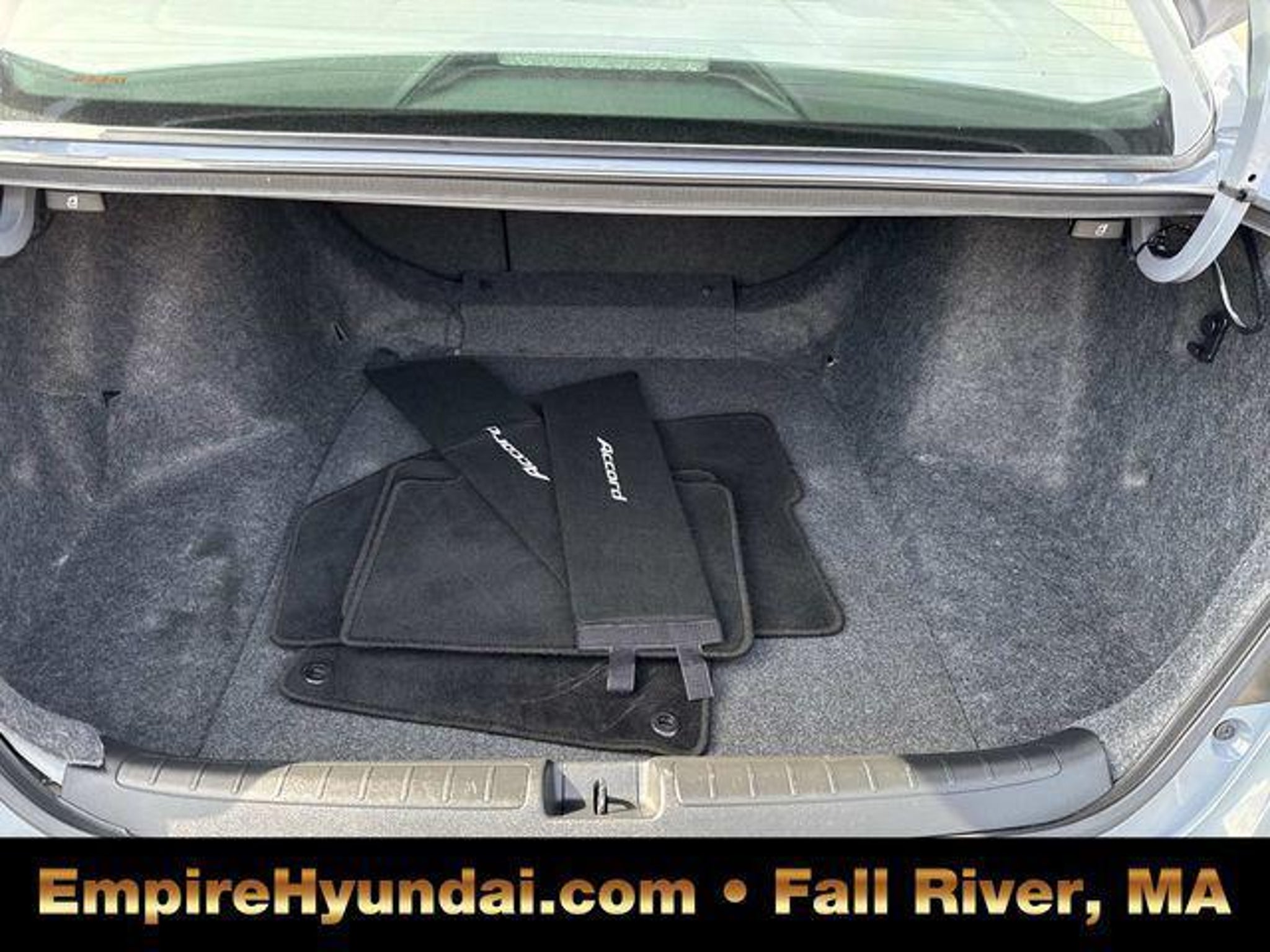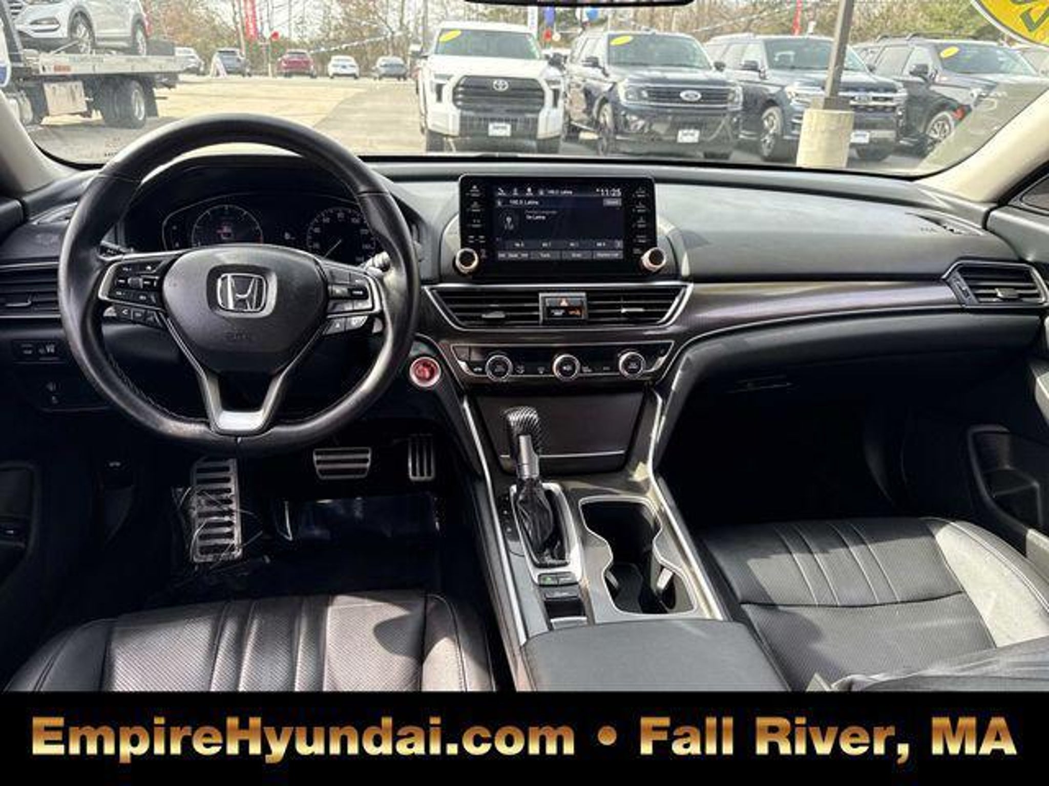 This vehicle has undergone the exact same 173-point rigorous inspection required for our CPO inventory, performed by our factory-trained technicians. You get a vehicle inspected to the highest standard without paying the certification fee. 150 Point Inspection, Accord Sport Special Edition, 4D Sedan, 1.5T I4 DOHC 16V Turbocharged VTEC, CVT, FWD, Sonic Gray Pearl, Black Leather, 4-Wheel Disc Brakes, 8 Speakers, ABS brakes, Adaptive Cruise Control: Adaptive Cruise Control (ACC) with Low-Speed Follow, Air Conditioning, Alloy wheels, AM/FM radio, Apple CarPlay/Android Auto, Auto High-beam Headlights, Automatic temperature control, Brake assist, Bumpers: body-color, Delay-off headlights, Driver door bin, Driver vanity mirror, Dual front impact airbags, Dual front side impact airbags, Electronic Stability Control, Emergency communication system: HondaLink, Exterior Parking Camera Rear, Forward collision: Collision Mitigation Braking System (CMBS) FCW mitigation, Four wheel independent suspension, Front anti-roll bar, Front Bucket Seats, Front Center Armrest, Front dual zone A/C, Front fog lights, Front reading lights, Fully automatic headlights, Heated door mirrors, Heated Front Bucket Seats, Heated front seats, Illuminated entry, Knee airbag, Lane Departure Warning System, Leather Shift Knob, Leather steering wheel, Low tire pressure warning, Occupant sensing airbag, Outside temperature display, Overhead airbag, Overhead console, Panic alarm, Passenger door bin, Passenger vanity mirror, Perforated Leather Seat Trim, Power door mirrors, Power driver seat, Power passenger seat, Power steering, Power windows, Radio data system, Radio: 180-Watt AM/FM Audio System, Rear anti-roll bar, Rear seat center armrest, Rear window defroster, Remote keyless entry, Security system, Speed control, Speed-sensing steering, Split folding rear seat, Spoiler, Steering wheel mounted audio controls, Tachometer, Telescoping steering wheel, Tilt steering wheel, Traction control, Trip computer, Variably intermittent wipers, Wheels: 19 Machine-Finished Alloy w/Black Inserts. Sonic Gray Pearl 2022 Honda Accord Sport Special Edition 4D Sedan FWD CVT 29/35 City/Highway MPG 1.5T I4 DOHC 16V Turbocharged VTEC Centrally located in Fall River, Empire Hyundai proudly serves the South Coast and East Bay communities. We are just a short drive from Somerset, Swansea, and Dartmouth, as well as New Bedford, Providence, Newport, Taunton, Raynham, Attleboro, Dighton, Rehoboth, Tiverton and Providence. Whether you are visiting from Freetown or Seekonk, premium service is right around the corner. Visit our showroom at 428 Pleasant Street, Fall River, MA, or explore our inventory online at EmpireHyundai.com Or call us at .