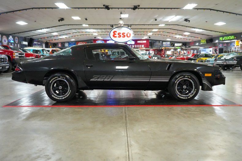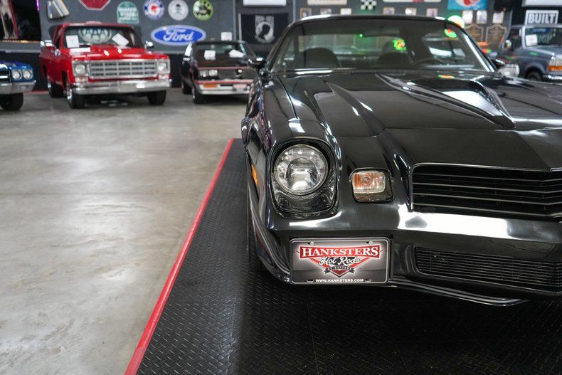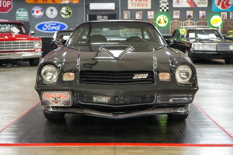 This 1980 Chevrolet Camaro Z/28 delivers classic muscle car appeal with a 350 Small Block Chevy V8, GM TH350 automatic transmission, and GM 10-bolt POSI rear end with 3.31 gears. Performance upgrades include a Holley Street Dominator intake, Edelbrock 600 CFM 4-barrel carburetor, HEI distributor, aluminum radiator, and flex-style cooling fan. Comfort features include power steering, power brakes with front discs, and a Jensen Bluetooth radio with Kenwood speakers. It sports black leather interior, 15" OEM Z/28 rally wheels, and Cooper Cobra Radial G/T tires. Finished in bold black with Z/28 decals. Shipping and warranty included at full retail price.