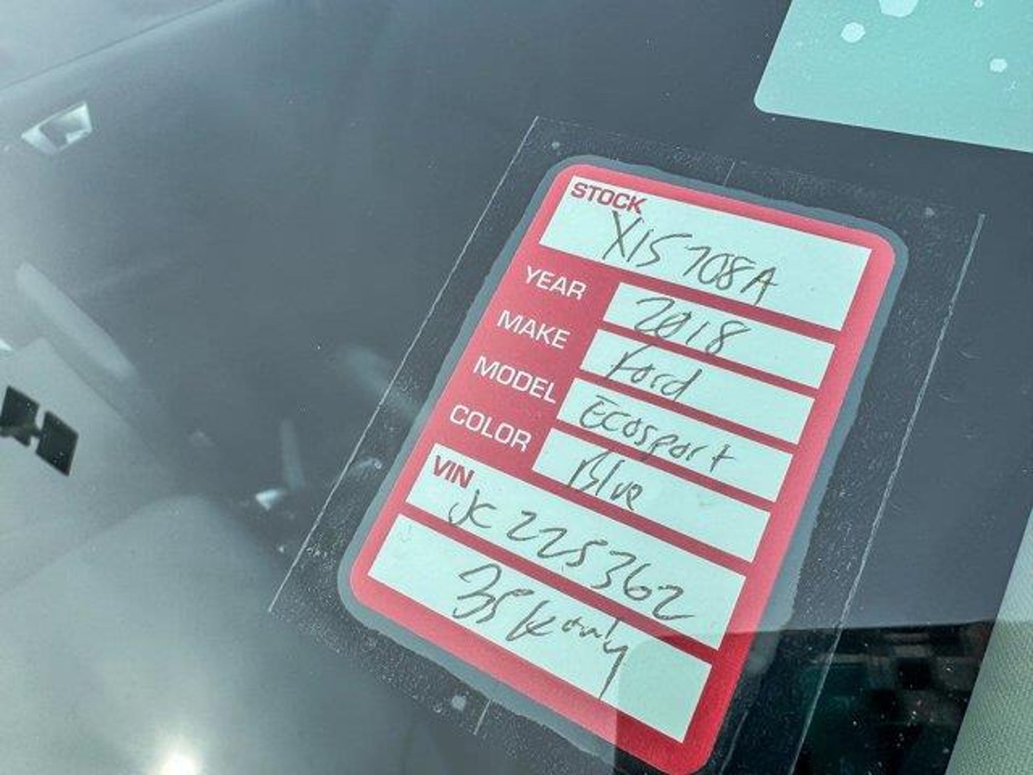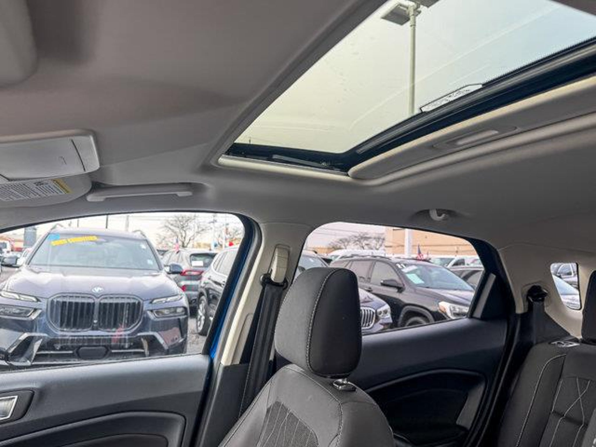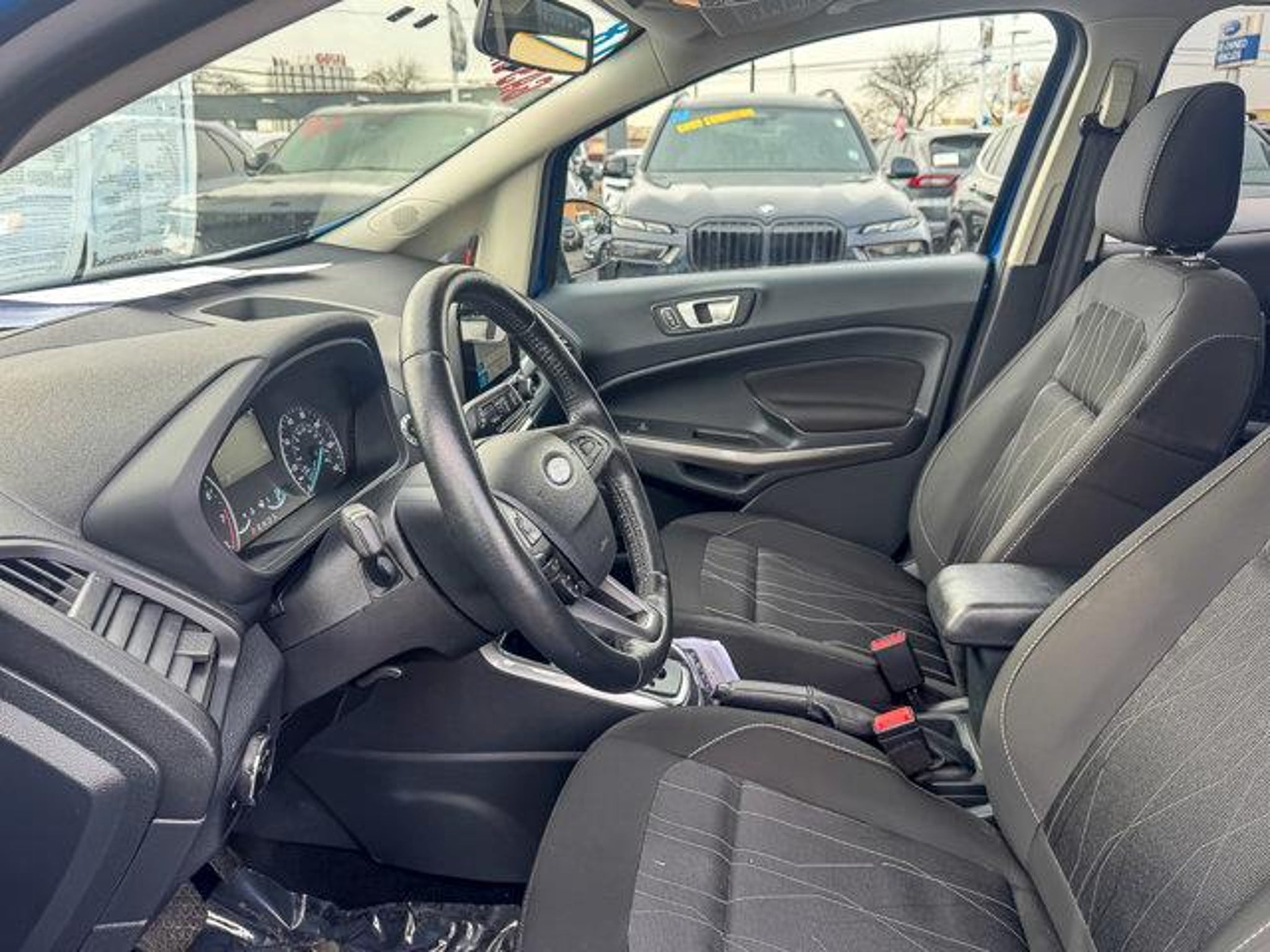 2018 Ford EcoSport SE Lightning Blue FWD 4D Sport Utility EcoBoost 1.0L I3 GTDi DOHC Turbocharged VCT 6-Speed Automatic 27/29 City/Highway MPG **With some available options like Equipment Group 200A, Interior Protection Package (Cargo Mat and Front & Rear Floor Liners), Ford Blue Certified Certified, 4-Wheel Disc Brakes, 6 Speakers, ABS brakes, Air Conditioning, Alloy wheels, AM/FM radio: SiriusXM, AppLink/Apple CarPlay and Android Auto, Automatic temperature control, Axle Ratio: 3.44, Brake assist, Bumpers: body-color, Compass, Delay-off headlights, Driver door bin, Driver vanity mirror, Dual front impact airbags, Dual front side impact airbags, Electronic Stability Control, Emergency communication system: SYNC 3 911 Assist, Exterior Parking Camera Rear, Front anti-roll bar, Front Bucket Seats, Front Center Armrest, Front fog lights, Front reading lights, Front wheel independent suspension, Fully automatic headlights, Heated front seats, Illuminated entry, Knee airbag, Leather Shift Knob, Leather steering wheel, Low tire pressure warning, Occupant sensing airbag, Outside temperature display, Overhead airbag, Overhead console, Panic alarm, Passenger door bin, Passenger vanity mirror, Power door mirrors, Power driver seat, Power moonroof, Power steering, Power windows, Radio data system, Radio: AM/FM Stereo w/MP3 Capable, Rear Parking Sensors, Rear seat center armrest, Rear side impact airbag, Rear window defroster, Rear window wiper, Remote keyless entry, Roof rack: rails only, SiriusXM Radio, Speed control, Speed-sensing steering, Split folding rear seat, Steering wheel mounted audio controls, SYNC 3 Communications & Entertainment System, Tachometer, Telescoping steering wheel, Tilt steering wheel, Tire Inflator & Sealant Kit, Traction control, Trip computer, Turn signal indicator mirrors, Unique Cloth Heated Bucket Seats, Variably intermittent wipers, and Wheels: 16 Shadow Silver-Painted Aluminum ** Cargo Mat, Equipment Group 200A, Front & Rear Floor Liners, Interior Protection Package. Odometer is 29598 miles below market average! 27/29 City/Highway MPG Certified. Ford Blue Certified Details: * Roadside Assistance * 139 Point Inspection * Transferable Warranty * Warranty Deductible: $100 * Vehicle History * and 11,000 FordPass Rewards Points to use toward first maintenance visit * Limited Warranty: 3 Month/4,000 Mile (whichever comes first) after new car warranty expires or from certified purchase date #1 VOLUME FORD DEALER IN ILLINOIS & THE ENTIRE MIDWEST FOR 18 YEARS. Awards: *