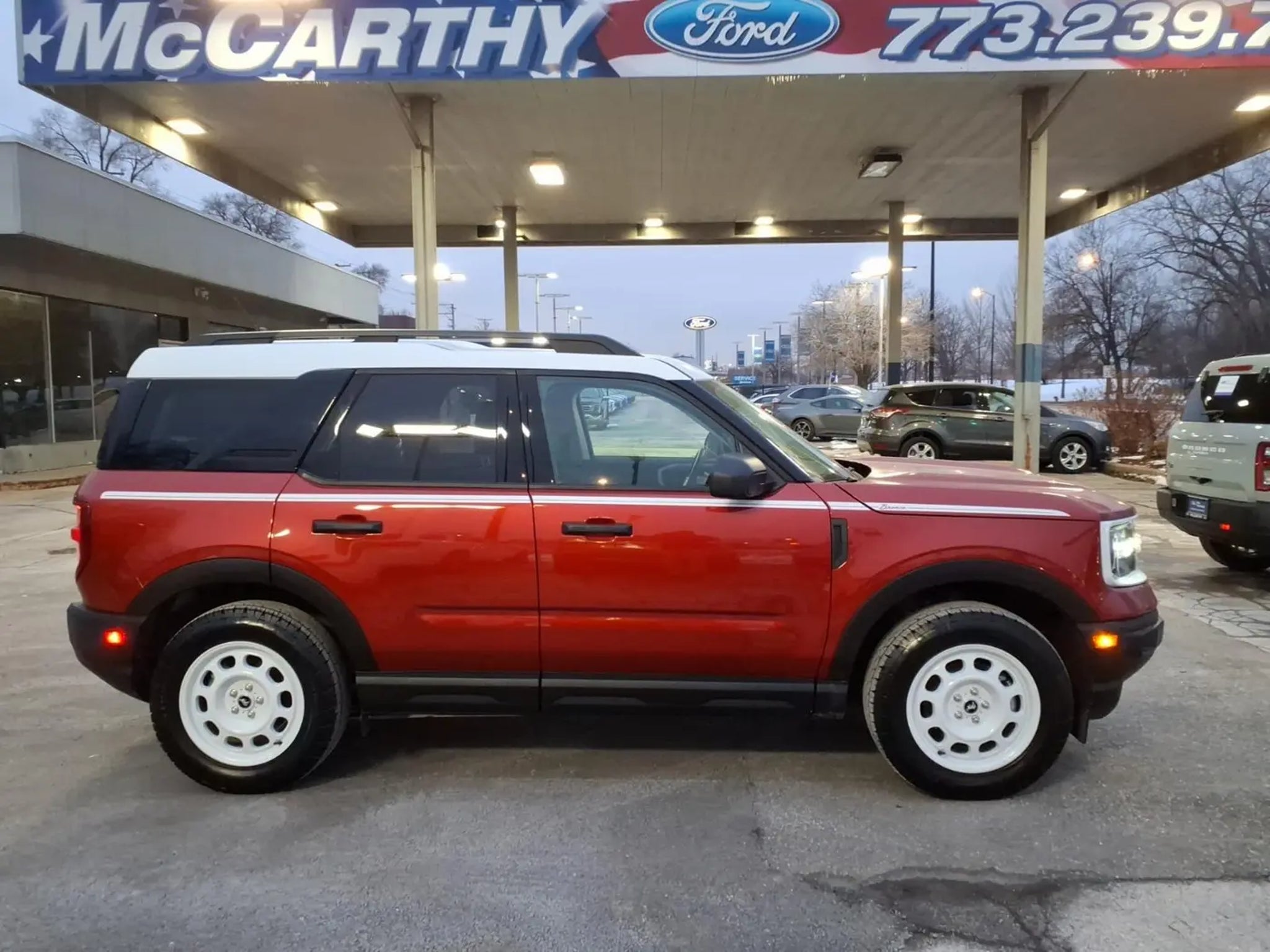 Details > 2024 Ford Bronco Sport AWD Heritage 4DR SUV For Sale in Chicago, IL Private Party Sellers Click here to place your ad now! You auta tell them you saw the ad in AutaBuy when you call or email. 1/16 2/16 3/16 4/16 5/16 6/16 7/16 8/16 9/16 10/16 11/16 12/16 13/16 14/16 15/16 16/16 View 16 Photos View All Add to My Garage Parked in Your Garage! Mccarthy Ford, Inc. Contact Seller: I would like to: Make Offer Check Availability Ask A Question Request More Photos Check Financing Options Send a copy of this message to me Add this listing to my garage Send to Mobile Mileage 9,463 Exterior Color Hot Pepper Red Metallic Tinted Clearcoat Interior Color Navy Pier Doors 4 Engine 1.5L I3 Transmission 8 Speed Auto Stock # T21109A VIN 3FMCR9G61RRE96808 Estimated Monthly Payment $540 mo Apply Now J.J. Best Banc & Co. 2024 Ford Bronco Sport AWD Heritage 4DR SUV Description: Primary Listing: 2024 Ford Bronco Sport Heritage · Mileage: 9,463 · Color: Hot Pepper Red Metallic Tinted Clearcoat Price: $31,040. Mileage 9,463 Exterior Color Hot Pepper Red Metallic Tinted Clearcoat Interior Color Navy Pier Doors 4 Engine 1.5L I3 Transmission 8 Speed Auto Stock # T21109A VIN 3FMCR9G61RRE96808 Estimated Monthly Payment $540 mo Apply Now J.J. Best Banc & Co. Add to My Garage Parked in Your Garage! Message Seller Mccarthy Ford, Inc. Contact Seller: I would like to: Make Offer Check Availability Ask A Question Request More Photos Check Financing Options Send a copy of this message to me Add this listing to my garage Offered for sale by Mccarthy Ford, Inc. CHICAGO, IL Price: $31,040. Offered for sale by Mccarthy Ford, Inc. CHICAGO, IL [entire inventory] Ask Auta Intelligence The first collector-car AI built directly into a classic car marketplace How many of these were produced? What does this VIN number tell me? What colors did these come in? When was this model first introduced? How many passengers can this seat comfortably? How far is this from me? Where is this located? What safety features does this model offer? How many Bronco Sports were produced in Red? What kind of mileage do these get? Can you show me more suvs for a similar price? What transmission options did these offer? How easy are parts to find for this model? Tell me the history on this model What trim levels were available for this model? What factory options were available on this model? What engine options did these come with? Do you have a similar car to sell? List It Now! Questions about this car? Ask Auta Intelligence for production numbers, available options, etc. · Subscribe to AutaBuy! · Send a Gift Subscription Notice to a Friend