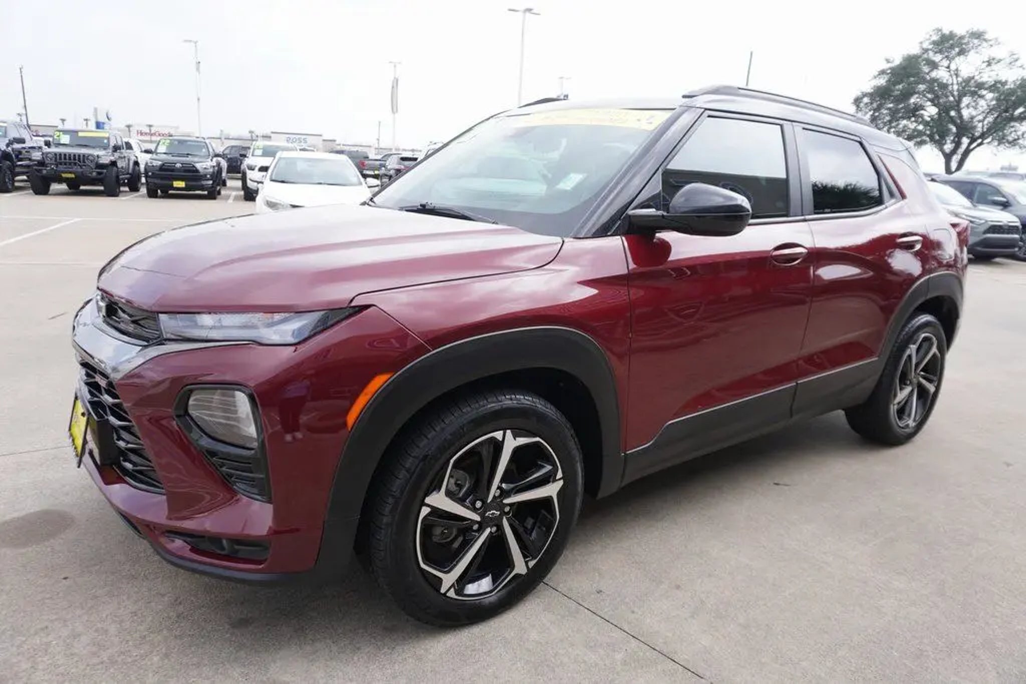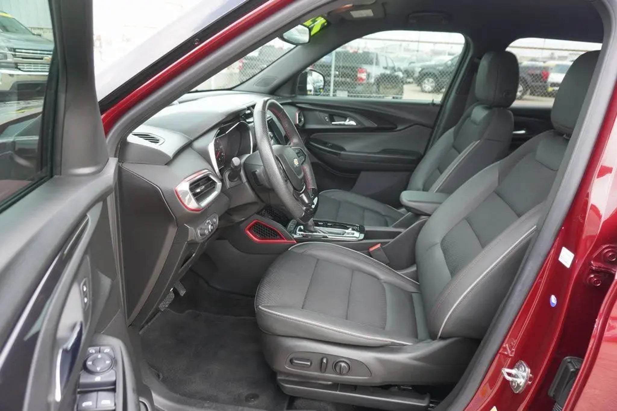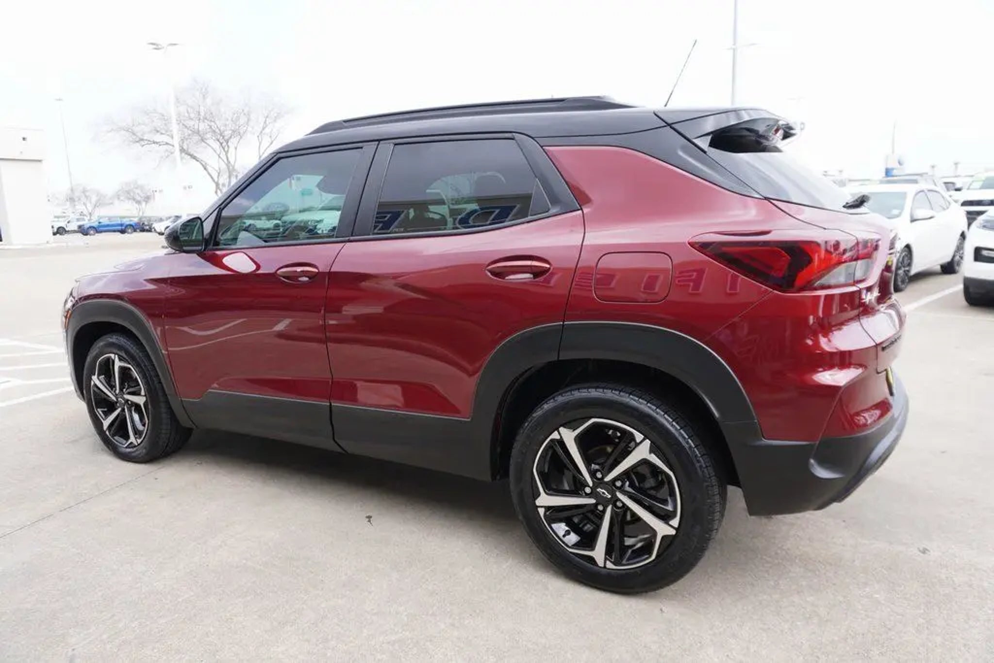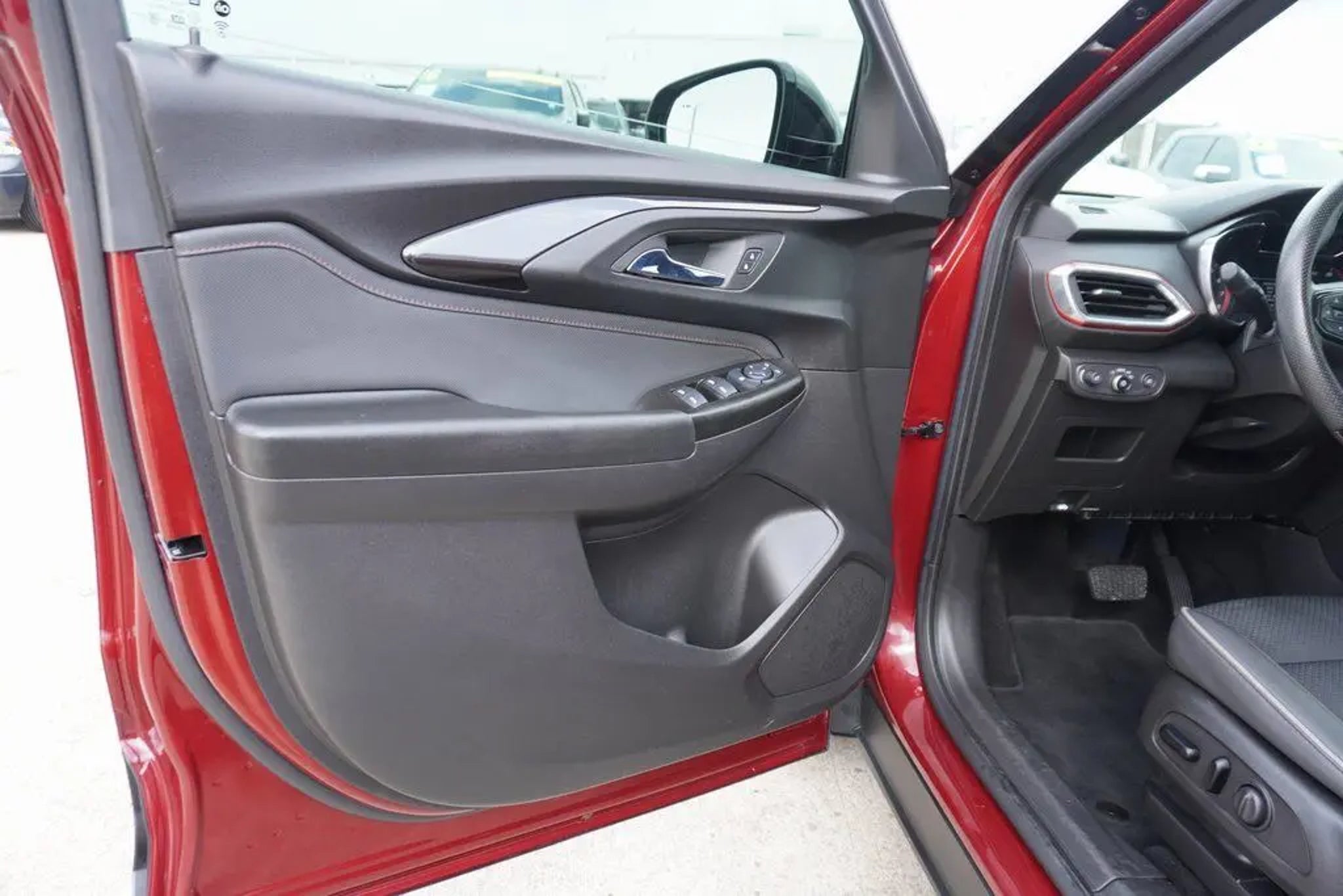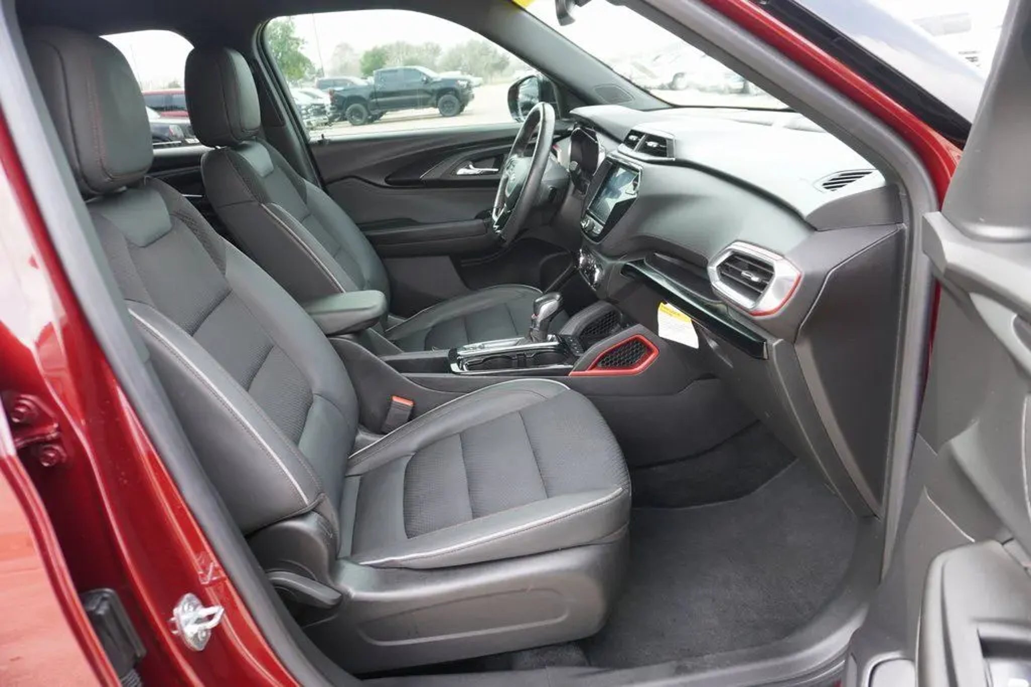 This 2023 Chevrolet TrailBlazer RS in Crimson Metallic includes the following features: 1.3L Ecotec Turbo DOHC SIDI w/VVT CVT FWD Convenience Package (1 Type-A & 1 Type-C USB Charging-Only Ports, 120-Volt Power Outlet, 8 Diagonal Color Touchscreen Display, Cabin Humidity Sensor, Driver & Front Passenger Illuminated Vanity Mirrors, Inside Rear-View Auto-Dimming Mirror, and Single-Zone Auto Climate Control Air Conditioning), Driver Confidence Package (Lane Change Alert w/Side Blind Zone Alert, Rear Cross Traffic Alert, and Rear Park Assist), Preferred Equipment Group 1RS (Heated Steering Wheel), 2-Way Adjustable Front Head Restraints, 2-Way Power Driver Lumbar Seat Adjuster, 4-Way Manual Front Passenger Seat Adjuster, 4-Wheel Disc Brakes, 5.45 Axle Ratio, 6 Speakers, 6-Speaker Audio System Feature, 7 Diagonal Color Touchscreen, 8-Way Power Driver Seat Adjuster, ABS brakes, Air Conditioning, Alloy wheels, AM/FM radio: SiriusXM, Auto High-beam Headlights, Brake assist, Bumpers: body-color, Cloth w/Leatherette Seat Trim, Compass, Delay-off headlights, Driver door bin, Driver vanity mirror, Dual front impact airbags, Dual front side impact airbags, Electronic Stability Control, Emergency communication system: OnStar and Chevrolet connected services capable, Exterior Parking Camera Rear, Flat-Folding Front Passenger Seatback, Front anti-roll bar, Front Bucket Seats, Front Center Armrest, Front fog lights, Front License Plate Bracket, Front reading lights, Front wheel independent suspension, Fully automatic headlights, Heated door mirrors, Heated Driver & Front Passenger Seats, Heated front seats, Heated steering wheel, Illuminated entry, Knee airbag, Leather Shift Knob, Leather steering wheel, Low tire pressure warning, Mosaic Black Metallic Two-Tone Roof, Not Equipped w/Rear Park Assist (060), Occupant sensing airbag, Overhead airbag, Overhead console, Panic alarm, Passenger door bin, Passenger vanity mirror, Power door mirrors, Power driver seat, Power steering, Power windows, Radio data system, Radio: Chevrolet Infotainment 3 System, Rear seat center armrest, Rear side impact airbag, Rear window defroster, Rear window wiper, Remote keyless entry, Ride & Handling Suspension, Security system, SiriusXM Radio, Speed control, Split folding rear seat, Spoiler, Steering wheel mounted audio controls, Tachometer, Telescoping steering wheel, Tilt steering wheel, Traction control, Trip computer, Variably intermittent wipers, Wheels: 18 High Gloss Black Machined Aluminum, and Wireless Apple CarPlay/Android Auto. Crimson