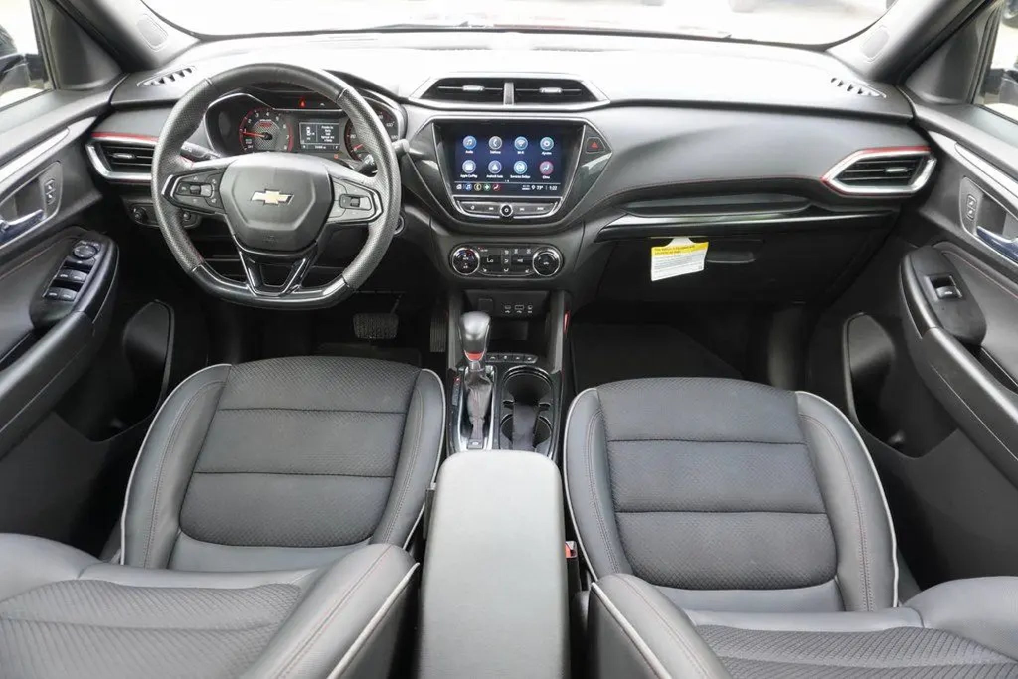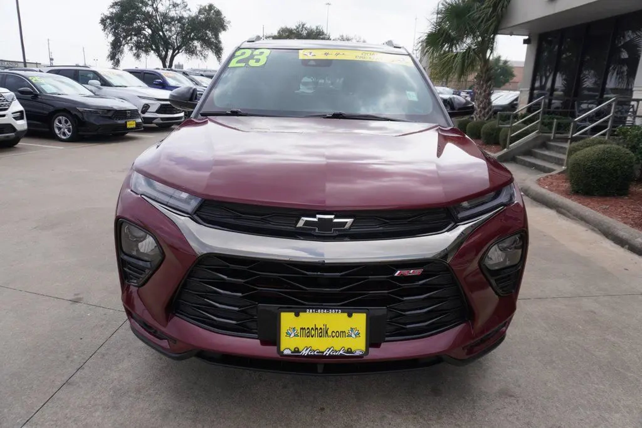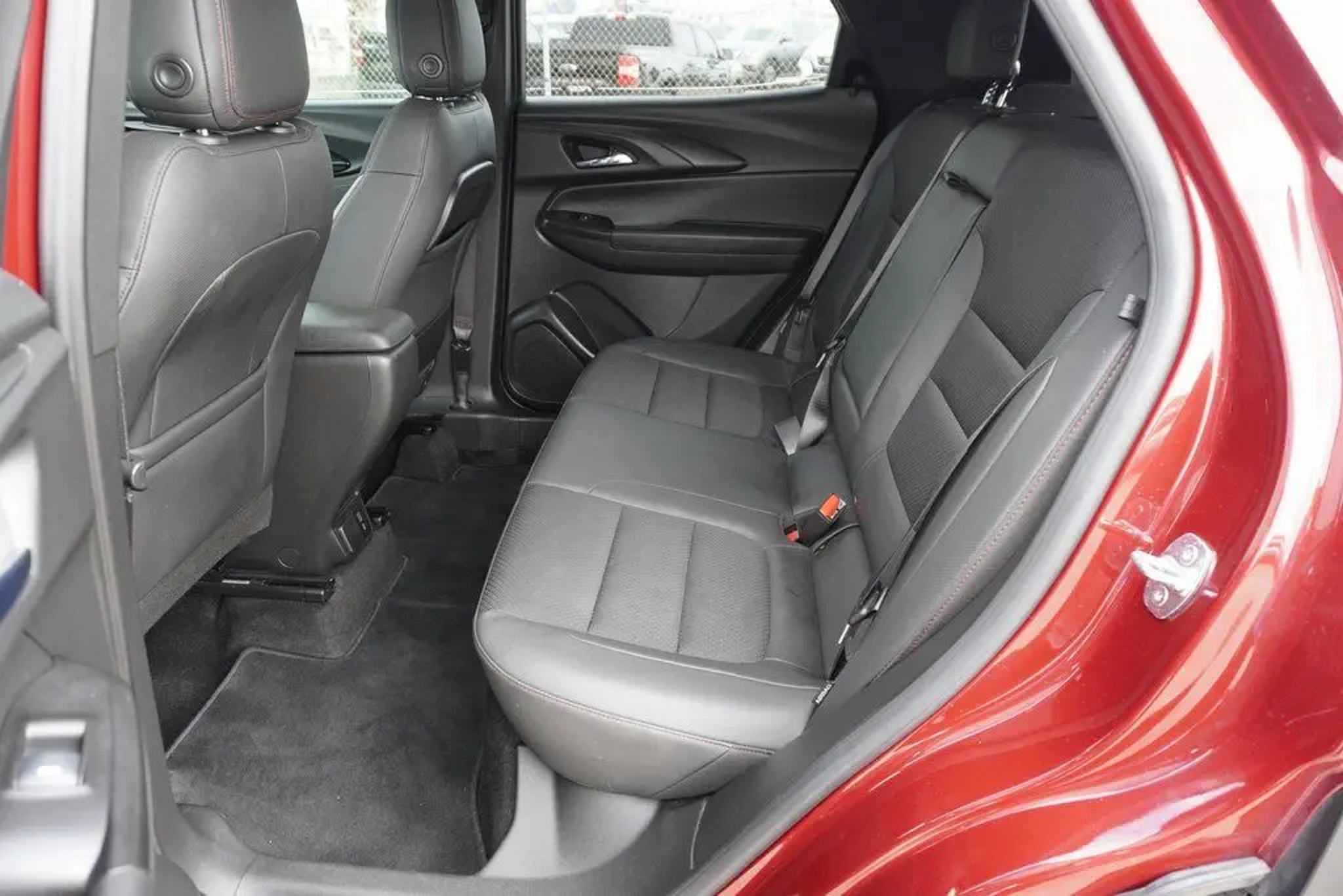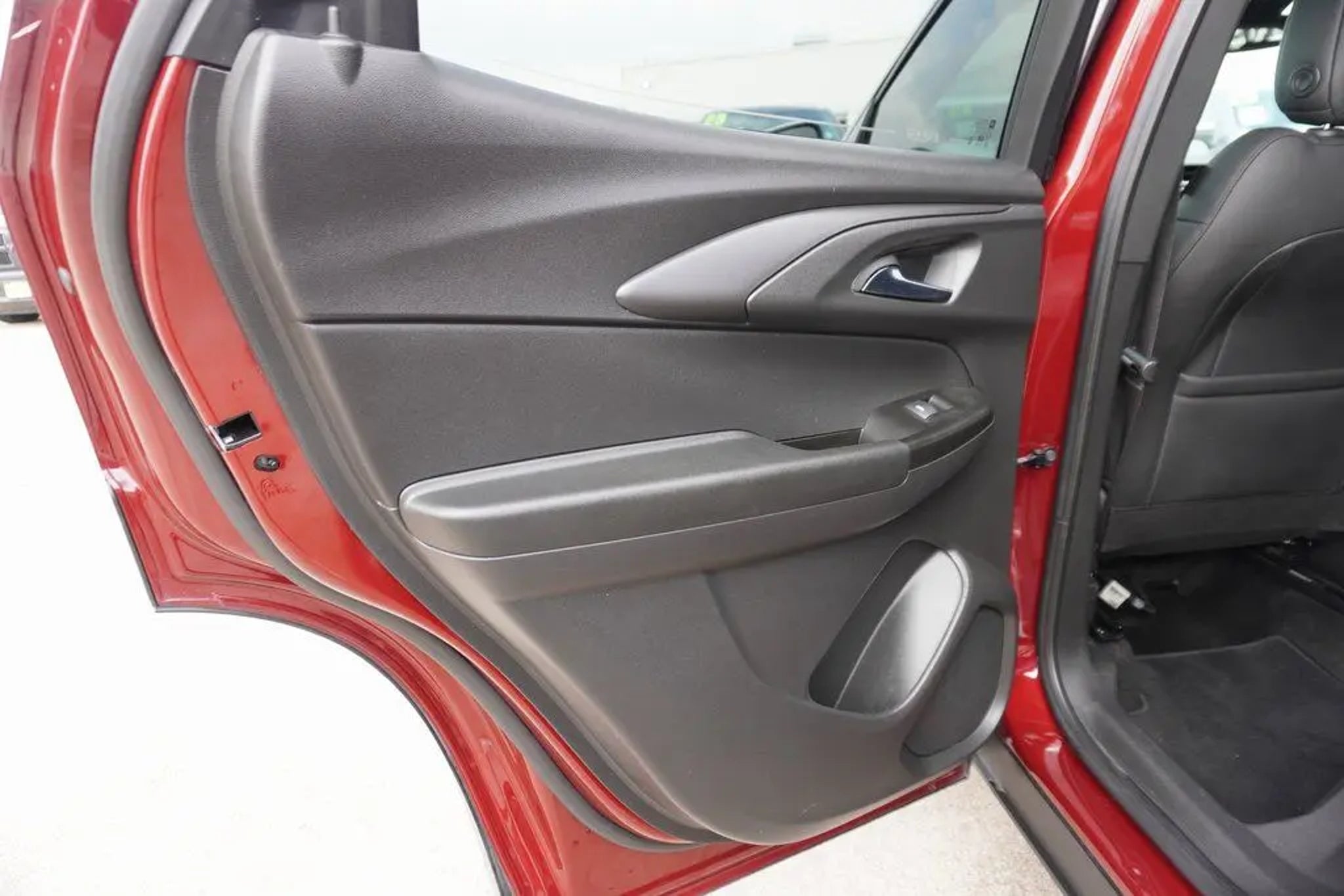 This 2023 Chevrolet TrailBlazer RS in Crimson Metallic includes the following features: 1.3L Ecotec Turbo DOHC SIDI w/VVT CVT FWD Convenience Package (1 Type-A & 1 Type-C USB Charging-Only Ports, 120-Volt Power Outlet, 8 Diagonal Color Touchscreen Display, Cabin Humidity Sensor, Driver & Front Passenger Illuminated Vanity Mirrors, Inside Rear-View Auto-Dimming Mirror, and Single-Zone Auto Climate Control Air Conditioning), Driver Confidence Package (Lane Change Alert w/Side Blind Zone Alert, Rear Cross Traffic Alert, and Rear Park Assist), Preferred Equipment Group 1RS (Heated Steering Wheel), 2-Way Adjustable Front Head Restraints, 2-Way Power Driver Lumbar Seat Adjuster, 4-Way Manual Front Passenger Seat Adjuster, 4-Wheel Disc Brakes, 5.45 Axle Ratio, 6 Speakers, 6-Speaker Audio System Feature, 7 Diagonal Color Touchscreen, 8-Way Power Driver Seat Adjuster, ABS brakes, Air Conditioning, Alloy wheels, AM/FM radio: SiriusXM, Auto High-beam Headlights, Brake assist, Bumpers: body-color, Cloth w/Leatherette Seat Trim, Compass, Delay-off headlights, Driver door bin, Driver vanity mirror, Dual front impact airbags, Dual front side impact airbags, Electronic Stability Control, Emergency communication system: OnStar and Chevrolet connected services capable, Exterior Parking Camera Rear, Flat-Folding Front Passenger Seatback, Front anti-roll bar, Front Bucket Seats, Front Center Armrest, Front fog lights, Front License Plate Bracket, Front reading lights, Front wheel independent suspension, Fully automatic headlights, Heated door mirrors, Heated Driver & Front Passenger Seats, Heated front seats, Heated steering wheel, Illuminated entry, Knee airbag, Leather Shift Knob, Leather steering wheel, Low tire pressure warning, Mosaic Black Metallic Two-Tone Roof, Not Equipped w/Rear Park Assist (060), Occupant sensing airbag, Overhead airbag, Overhead console, Panic alarm, Passenger door bin, Passenger vanity mirror, Power door mirrors, Power driver seat, Power steering, Power windows, Radio data system, Radio: Chevrolet Infotainment 3 System, Rear seat center armrest, Rear side impact airbag, Rear window defroster, Rear window wiper, Remote keyless entry, Ride & Handling Suspension, Security system, SiriusXM Radio, Speed control, Split folding rear seat, Spoiler, Steering wheel mounted audio controls, Tachometer, Telescoping steering wheel, Tilt steering wheel, Traction control, Trip computer, Variably intermittent wipers, Wheels: 18 High Gloss Black Machined Aluminum, and Wireless Apple CarPlay/Android Auto. Crimson