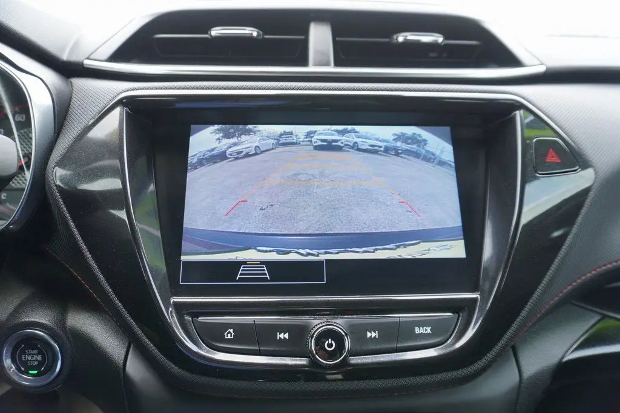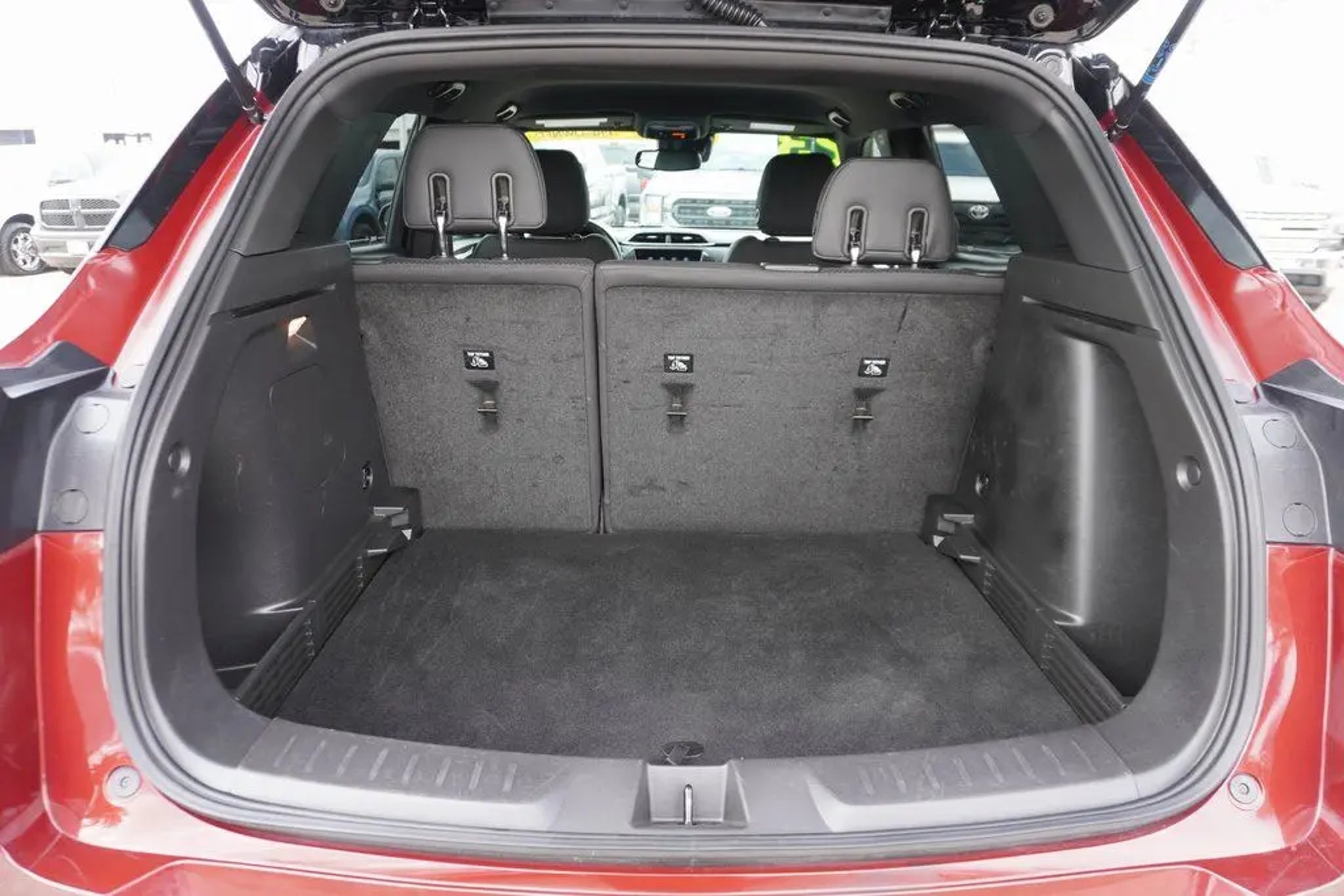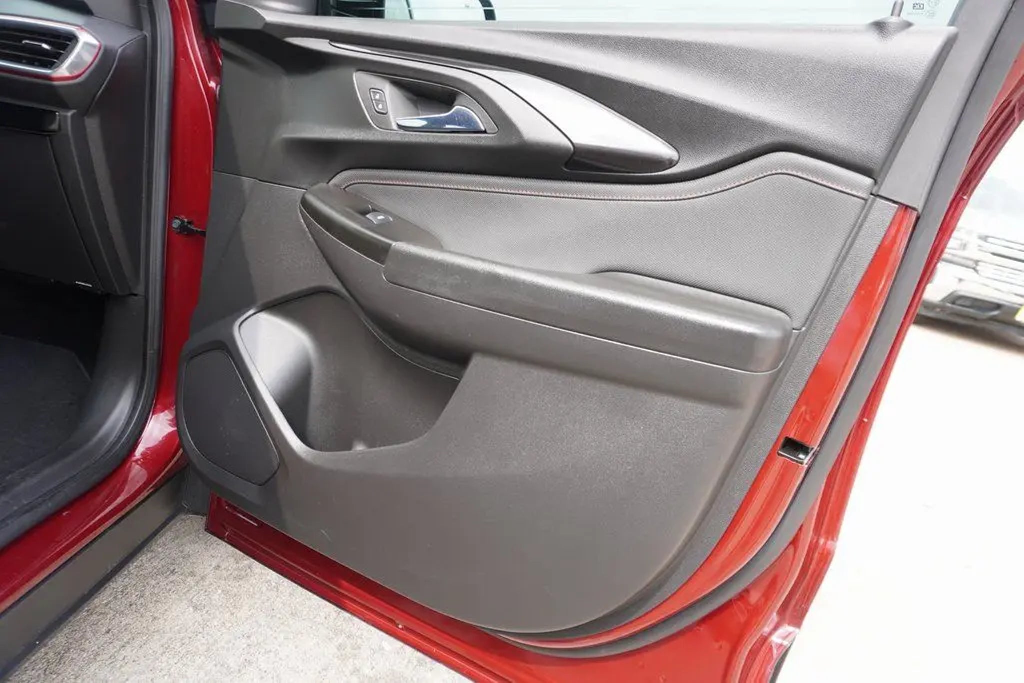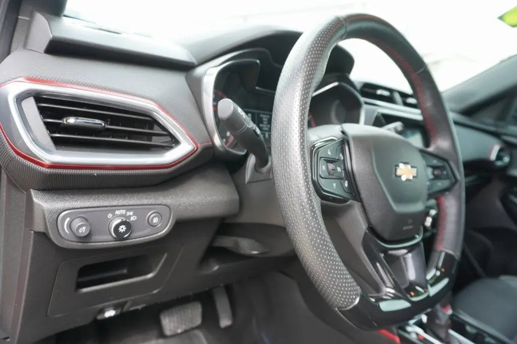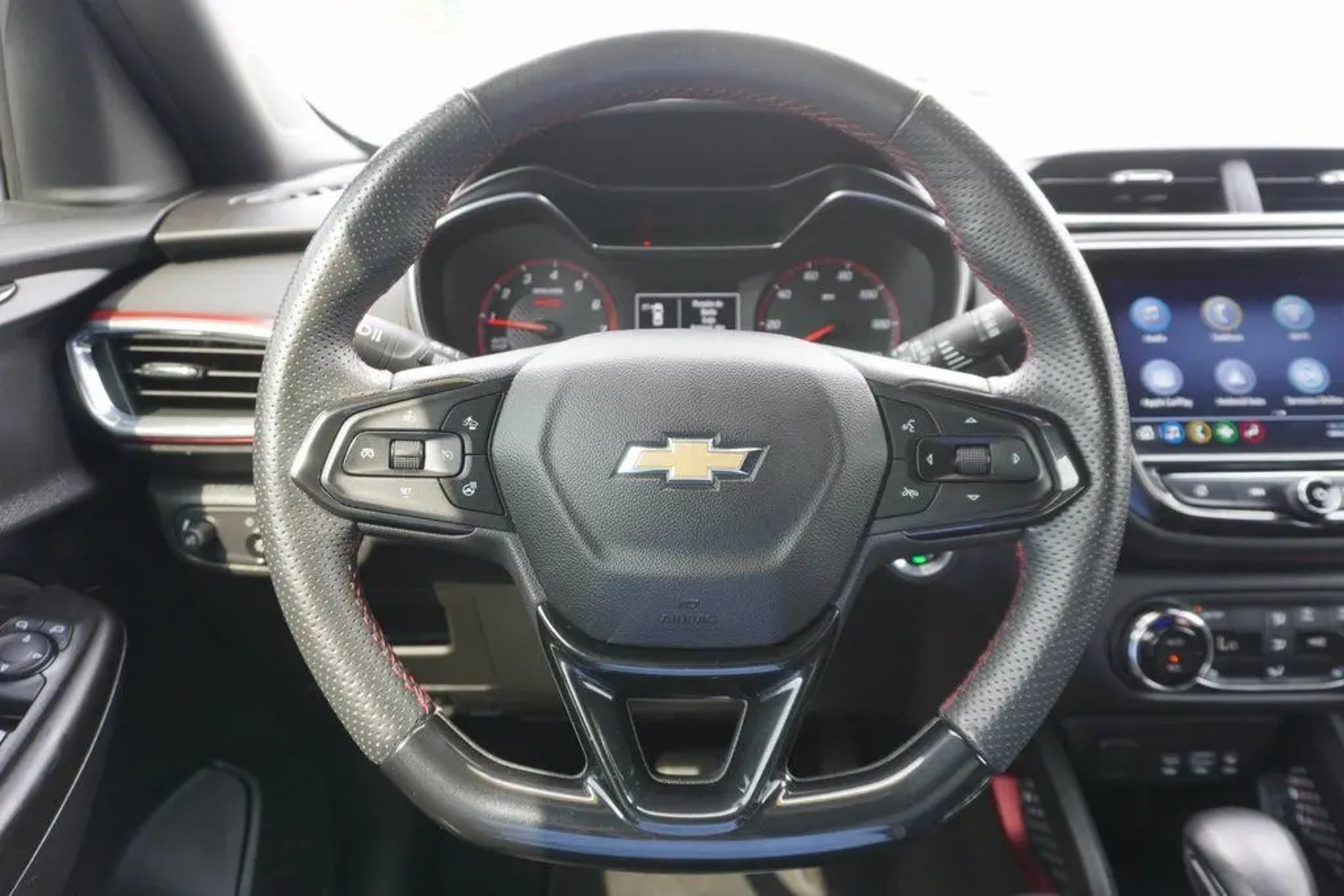 This 2023 Chevrolet TrailBlazer RS in Crimson Metallic includes the following features: 1.3L Ecotec Turbo DOHC SIDI w/VVT CVT FWD Convenience Package (1 Type-A & 1 Type-C USB Charging-Only Ports, 120-Volt Power Outlet, 8 Diagonal Color Touchscreen Display, Cabin Humidity Sensor, Driver & Front Passenger Illuminated Vanity Mirrors, Inside Rear-View Auto-Dimming Mirror, and Single-Zone Auto Climate Control Air Conditioning), Driver Confidence Package (Lane Change Alert w/Side Blind Zone Alert, Rear Cross Traffic Alert, and Rear Park Assist), Preferred Equipment Group 1RS (Heated Steering Wheel), 2-Way Adjustable Front Head Restraints, 2-Way Power Driver Lumbar Seat Adjuster, 4-Way Manual Front Passenger Seat Adjuster, 4-Wheel Disc Brakes, 5.45 Axle Ratio, 6 Speakers, 6-Speaker Audio System Feature, 7 Diagonal Color Touchscreen, 8-Way Power Driver Seat Adjuster, ABS brakes, Air Conditioning, Alloy wheels, AM/FM radio: SiriusXM, Auto High-beam Headlights, Brake assist, Bumpers: body-color, Cloth w/Leatherette Seat Trim, Compass, Delay-off headlights, Driver door bin, Driver vanity mirror, Dual front impact airbags, Dual front side impact airbags, Electronic Stability Control, Emergency communication system: OnStar and Chevrolet connected services capable, Exterior Parking Camera Rear, Flat-Folding Front Passenger Seatback, Front anti-roll bar, Front Bucket Seats, Front Center Armrest, Front fog lights, Front License Plate Bracket, Front reading lights, Front wheel independent suspension, Fully automatic headlights, Heated door mirrors, Heated Driver & Front Passenger Seats, Heated front seats, Heated steering wheel, Illuminated entry, Knee airbag, Leather Shift Knob, Leather steering wheel, Low tire pressure warning, Mosaic Black Metallic Two-Tone Roof, Not Equipped w/Rear Park Assist (060), Occupant sensing airbag, Overhead airbag, Overhead console, Panic alarm, Passenger door bin, Passenger vanity mirror, Power door mirrors, Power driver seat, Power steering, Power windows, Radio data system, Radio: Chevrolet Infotainment 3 System, Rear seat center armrest, Rear side impact airbag, Rear window defroster, Rear window wiper, Remote keyless entry, Ride & Handling Suspension, Security system, SiriusXM Radio, Speed control, Split folding rear seat, Spoiler, Steering wheel mounted audio controls, Tachometer, Telescoping steering wheel, Tilt steering wheel, Traction control, Trip computer, Variably intermittent wipers, Wheels: 18 High Gloss Black Machined Aluminum, and Wireless Apple CarPlay/Android Auto. Crimson