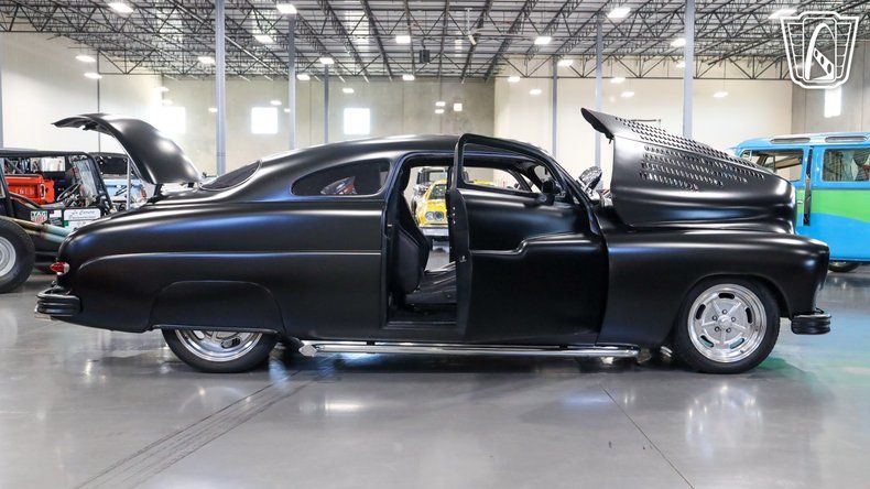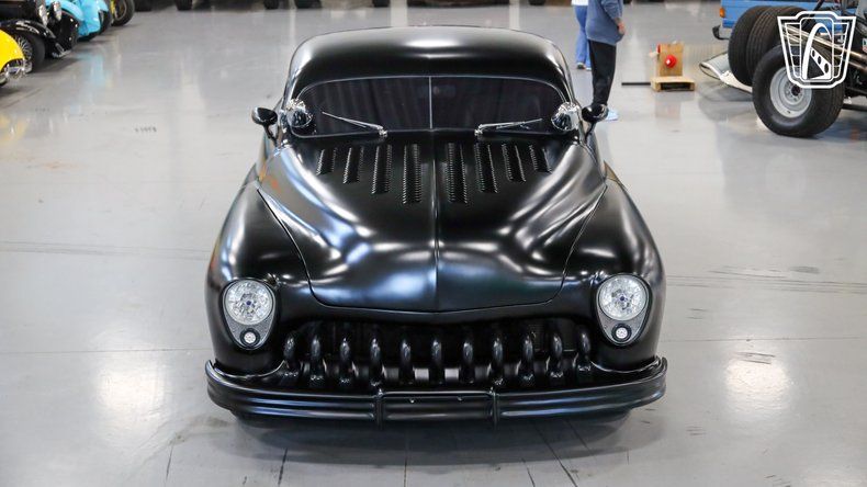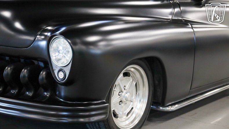 Gateway Classic Cars of San Antonio/Austin is excited to present this bold and beautifully customized 1950 Mercury Coupe, finished in a sinister matte black exterior that gives this legendary lead-sled an unmistakable presence. Few classic cars capture the spirit of the early custom car movement like the 1950 Mercury. The 1949"1951 Mercurys became some of the most iconic custom cars of the 1950s, made famous by hot rodders who chopped, lowered, and smoothed them into rolling works of art. This car carries that same attitude while adding modern performance and comfort. Slip into the black leather seats and you'll immediately appreciate the craftsmanship that went into building this Mercury. The cabin blends classic style with modern touches, featuring a billet steering wheel, digital gauges, and a Quick Silver shifter that adds a sleek performance feel to every drive. Turn the key and the real excitement begins. Under the hood sits a massive Cadillac 500 CID V8 delivering serious muscle and a deep, commanding rumble that lets everyone know this Mercury means business. Backed by an automatic transmission, this coupe offers effortless cruising power while still delivering the kind of torque that makes every green light feel like an event. Keeping things comfortable and connected inside the cabin is a P. L.Z. double din radio paired with JBL speakers, filling the interior with crisp sound whether you're cruising to classic rock or your favorite playlist. Vintage Air conditioning keeps the cabin cool even on the hottest summer days, making this classic as enjoyable to drive as it is to admire. Modern conveniences continue with power windows, power locks, power steering, and power brakes. Up front you'll find disc brakes while the rear retains drum brakes, providing confident stopping power to match the car's performance. This Mercury rides on aluminum American Racing wheels wrapped in Road Hugger tires, giving the car a perfect blend of classic hot rod styling and modern road grip. The stance is aggressive, the ride is smooth, and the look is unmistakably cool. With its intimidating matte black finish, massive V8 power, and a perfect blend of vintage style and modern amenities, this 1950 Mercury Coupe is a rolling piece of hot rod history that's ready to turn heads everywhere it goes. Whether you're heading to a car show, cruising the boulevard, or simply enjoying the open road, this Mercury promises to make every drive unforgettable.