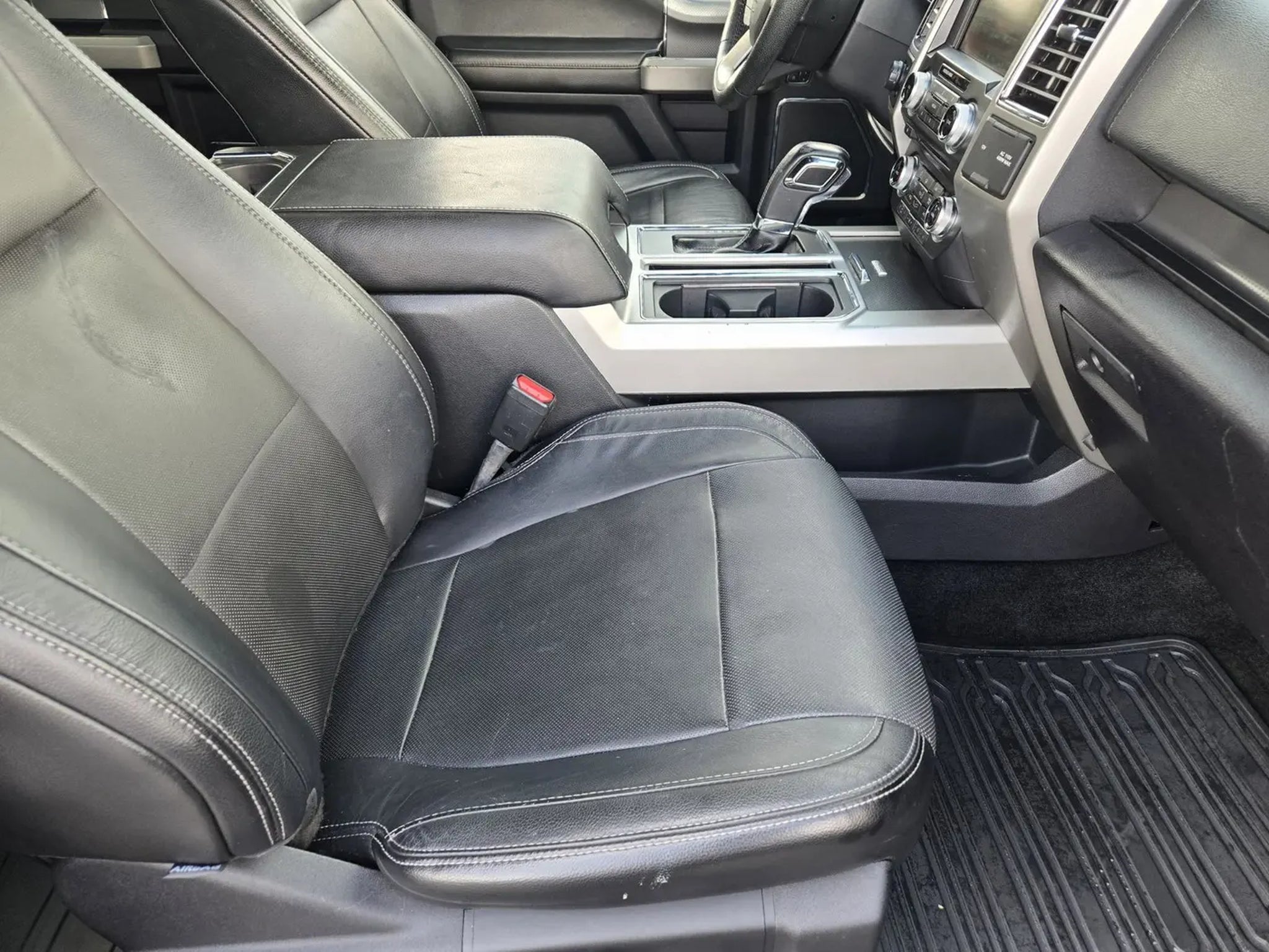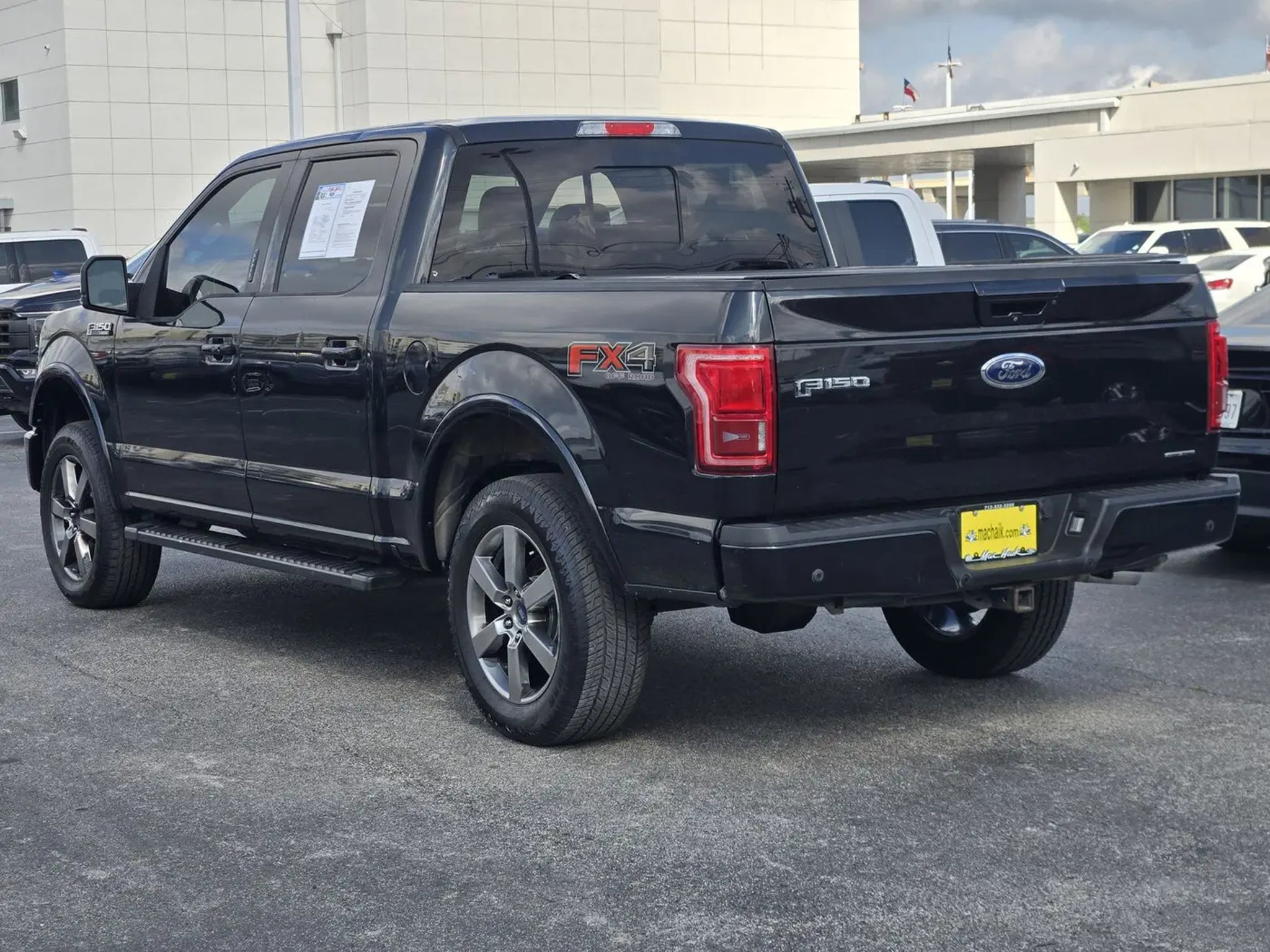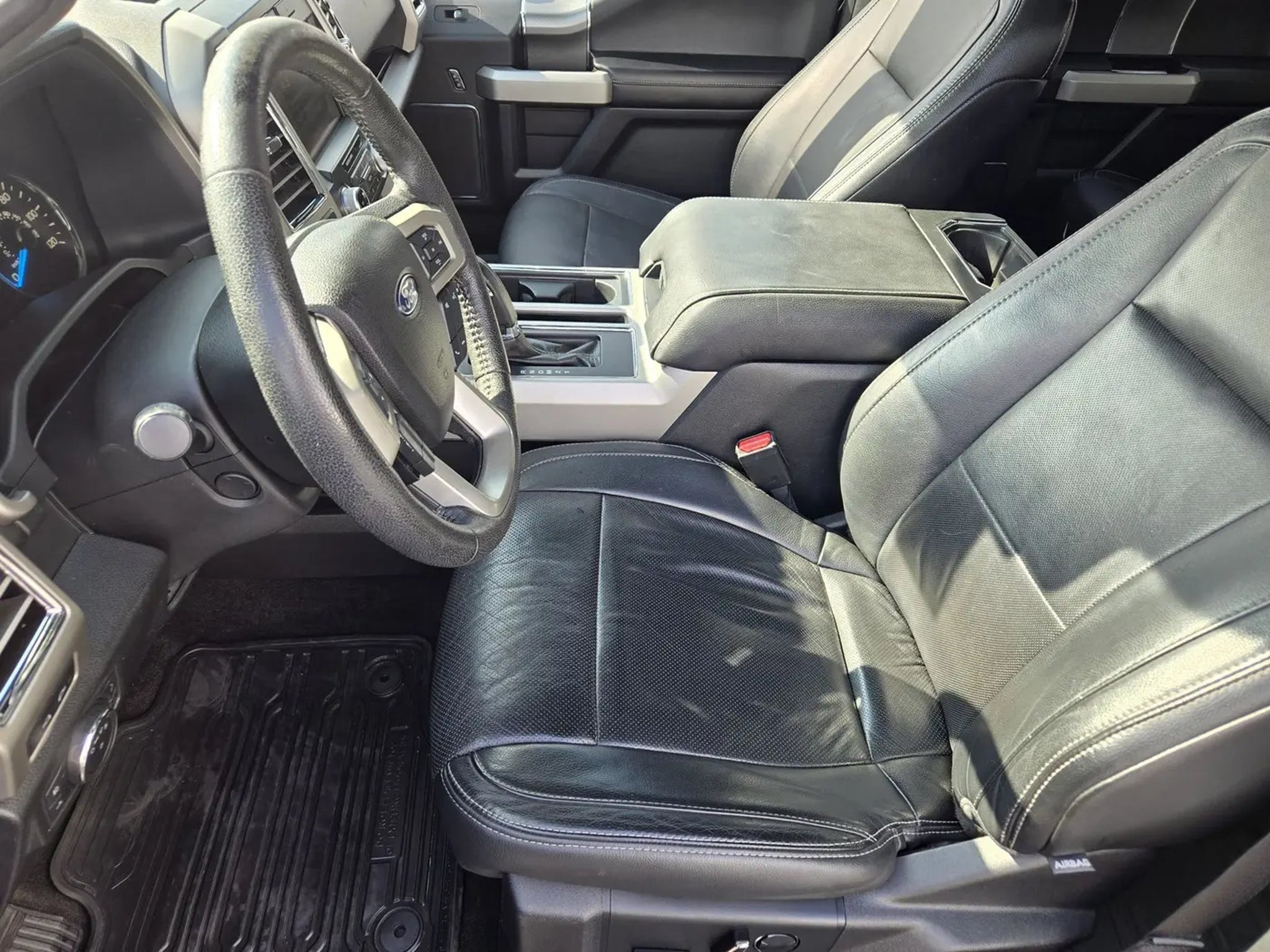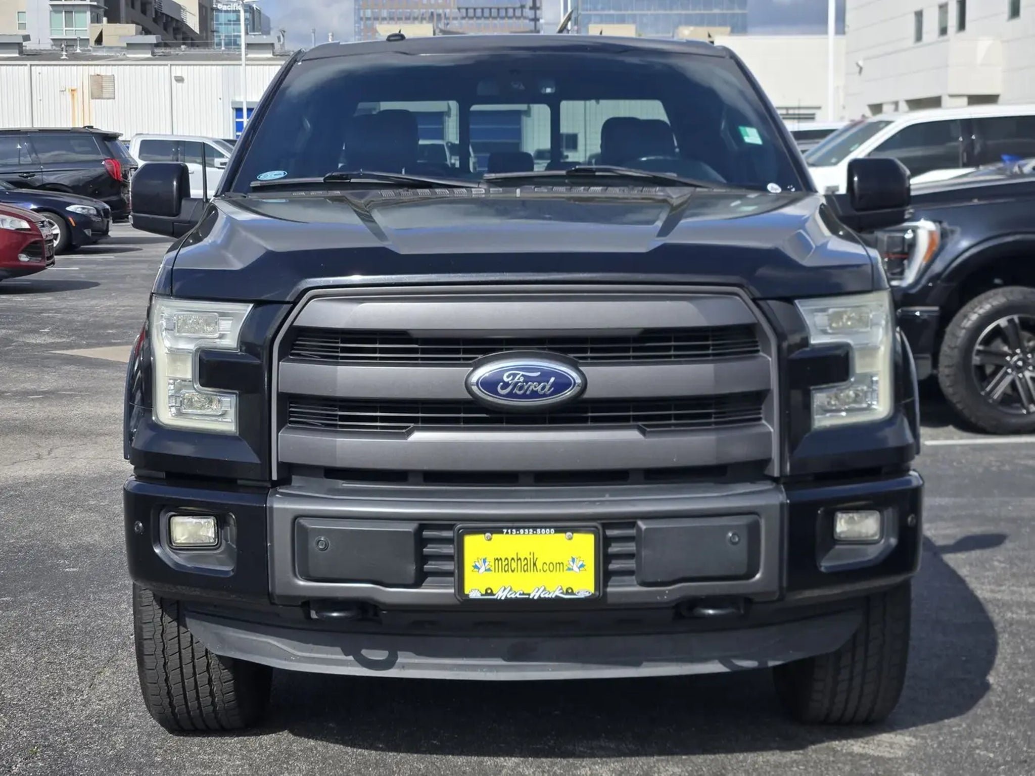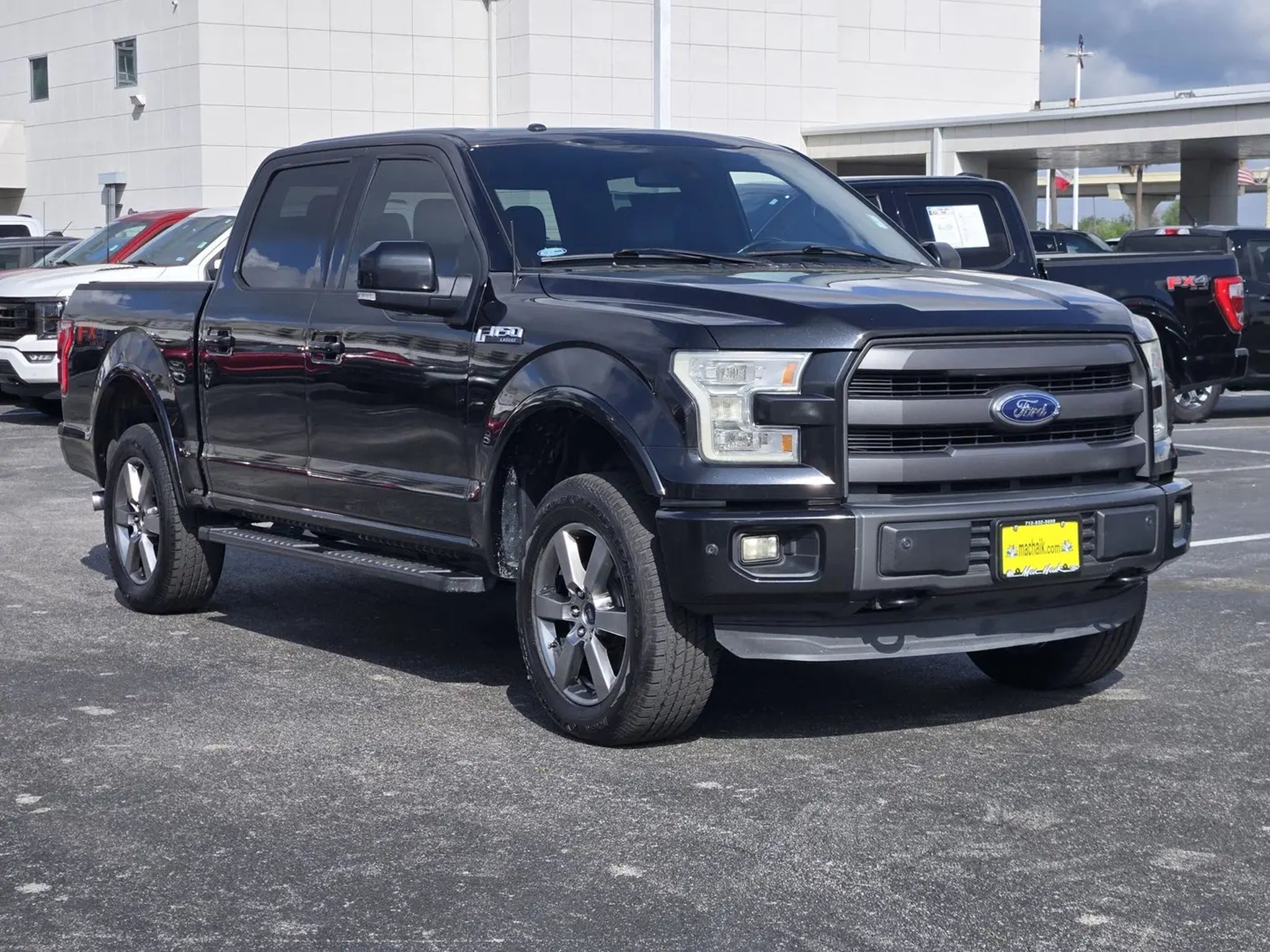Equipment Group 502A Luxury (110V/400W Outlet, 2nd Row Heated Seats, Automatic High Beam w/Rain-Sensing Wipers, BLIS Blind Spot Information System, Heated Steering Wheel, Leather-Trimmed Bucket Seats, LED Side-Mirror Spotlights, Power Glass Sideview Mirr w/Chrome Skull Caps, Power Tilt/Telescoping Steering Column w/Memory, Quad Beam LED Headlamps Taillamps, Radio: Sony Single CD w/HD SiriusXM Satellite, Remote Start System, Reverse Sensing System, Universal Garage Door Opener, and Voice-Activated Navigation), FX4 Off-Road Package (4x4 FX4 Off-Road Decal, Front Rear Off-Road Tuned Shock Absorbers, and Hill Descent Control), Lariat Chrome Appearance Package (Single-Tip Chrome Exhaust), Lariat Sport Appearance Package (Accent-Color 3-Bar Style Grille, Accent-Color Angular Step Bars, Accent-Color Front Bumper w/Body-Color End Caps, Box Side Decal, and Wheels: 18' 6-Spoke Machined-Aluminum), Trailer Tow Package (Auxiliary Transmission Oil Cooler, Class IV Trailer Hitch Receiver, and Upgraded Front Stabilizer Bar), F-150 Lariat, 4D SuperCrew, 5.0L V8 FFV, 6-Speed Automatic Electronic, 4WD, Tuxedo Black Metallic, Black w/Leather-Trimmed Bucket Seats, 18' Machined-Aluminum Wheels, 4-Wheel Disc Brakes, 7 Speakers, ABS brakes, Adjustable pedals, Air Conditioning, Alloy wheels, AM/FM radio: SiriusXM, Auto-dimming door mirrors, Auto-dimming Rear-View mirror, Automatic temperature control, Brake assist, Bumpers: chrome, CD player, Compass, Delay-off headlights, Driver door bin, Driver vanity mirror, Dual front impact airbags, Dual front side impact airbags, Electronic Stability Control, Extended Range 36 Gallon Fuel Tank, Exterior Parking Camera Rear, Front anti-roll bar, Front Center Armrest w/Storage, Front dual zone A/C, Front fog lights, Front License Plate Bracket, Front reading lights, Front wheel independent suspension, Fully automatic headlights, Heated door mirrors, Heated front seats, Illuminated entry, Integrated Trailer Brake Controller, Leather-Trimmed 40/20/40 Front Seat, Low tire pressure warning, Memory seat, Occupant sensing airbag, Outside temperature display, Overhead airbag, Overhead console, Panic alarm, Passenger door bin, Passenger vanity mirror, Pedal memory, Power door mirrors, Power driver seat, Power passenger seat, Power steering, Power windows, Radio data system, Radio: Single-CD w/SiriusXM Satellite, Rear reading lights, Rear seat center armrest, Rear step bumper, Rear window defroster, Remote keyless entry, Security system, Speed control, Speed-sensing steering, Split folding rear seat
