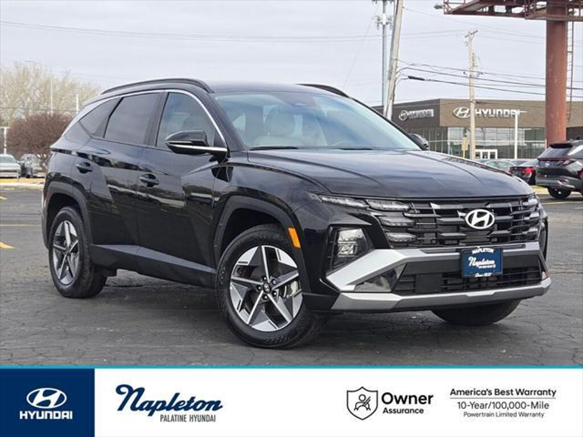 Factory MSRP: $36,680 $1,744 off MSRP! Phantom Black 2025 Hyundai Tucson 4D Sport Utility SEL Convenience 2.5L I4 DGI DOHC 16V LEV3-SULEV30 187hp 24/30 City/Highway MPG 8-Speed Automatic with SHIFTRONIC AWD Option Group 01, 18 Alloy Wheels, 4-Wheel Disc Brakes, 6 Speakers, ABS brakes, Air Conditioning, All Season Fitted Liners, Alloy wheels, AM/FM radio: SiriusXM, Apple CarPlay & Android Auto, Auto High-beam Headlights, Auto-dimming Rear-View mirror, Automatic temperature control, Brake assist, Bumpers: body-color, Cargo Organizer, Cargo Tray, Carpeted Floor Mats, Delay-off headlights, Driver door bin, Driver vanity mirror, Dual front impact airbags, Dual front side impact airbags, Electronic Stability Control, Emergency communication system: Bluelink, First Aid Kit, Four wheel independent suspension, Front anti-roll bar, Front Bucket Seats, Front Center Armrest, Front dual zone A/C, Front reading lights, Fully automatic headlights, H-Tex Seat Trim, Heated door mirrors, Heated Front Bucket Seats, Heated front seats, Illuminated entry, Leather steering wheel, Low tire pressure warning, Navigation System, Occupant sensing airbag, Outside temperature display, Overhead airbag, Overhead console, Panic alarm, Passenger door bin, Passenger vanity mirror, Power door mirrors, Power driver seat, Power Liftgate, Power moonroof, Power steering, Power windows, Radio data system, Radio: AM/FM/HD Audio System, Rear anti-roll bar, Rear Bumper Applique, Rear reading lights, Rear seat center armrest, Rear side impact airbag, Rear window defroster, Rear window wiper, Remote keyless entry, Security system, Speed control, Split folding rear seat, Spoiler, Steering wheel mounted audio controls, Tachometer, Telescoping steering wheel, Tilt steering wheel, Traction control, Trip computer, Turn signal indicator mirrors, Variably intermittent wipers, and Wheel Locks.