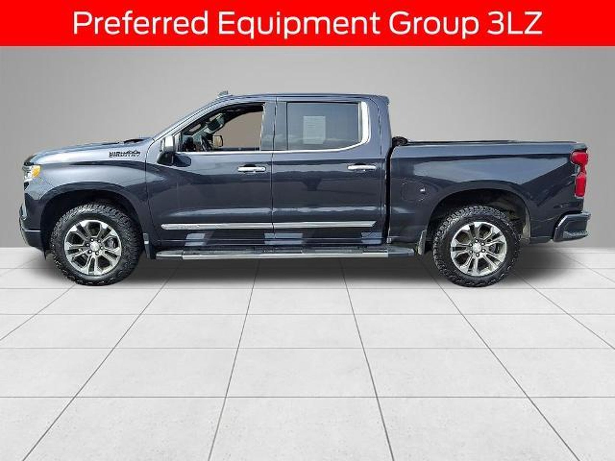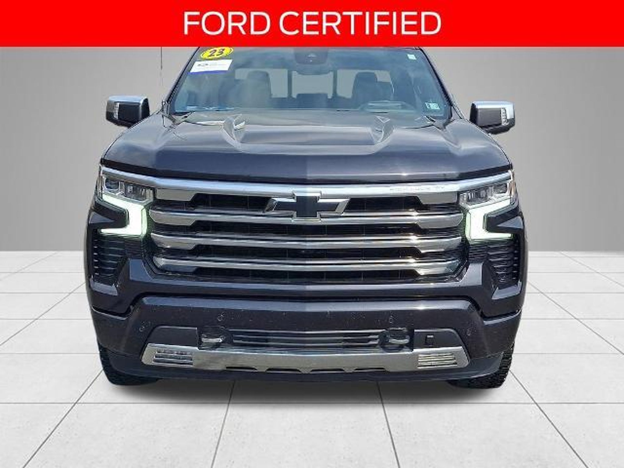 2023 Chevrolet Silverado 1500 High Country 4X4 10-Way Power Driver Seat w/Lumbar, 10-Way Power Passenger Seat Adjuster w/Lumbar, 12.3 Multicolor Reconfigurable Digital Display, 120-Volt Bed Mounted Power Outlet, 120-Volt Instrument Panel Power Outlet, 15 Diagonal Multicolor Head-Up Display, 2 USB Data Ports, 2nd Row Heated Outboard Seats, 4 WHEEL DRIVE, 4-Wheel Disc Brakes, ABS brakes, Adaptive Cruise Control, Air Conditioning, AM/FM radio: SiriusXM with 360L, Apple CarPlay/Android Auto, Auto High-beam Headlights, Auto-dimming door mirrors, Auto-Dimming Inside Rear-View Mirror, Auto-Locking Rear Differential, Automatic temperature control, Bed View Camera, Black Name Plates (LPO), Bluetooth? For Phone, Body-Color Painted Mirror Caps, Brake assist, Chevrolet Connected Access Capable, Chevytec Spray-On Black Bedliner, Chrome Assist Steps, Chrome Recovery Hooks, Color-Keyed Carpeting Floor Covering, Compass, Dark Essentials Package (LPO), Deep-Tinted Glass, Delay-off headlights, Driver Memory, Dual Exhaust w/Polished Outlets, Dual front impact airbags, Dual front side impact airbags, Dual Rear USB Ports (Charge Only), Electric Rear-Window Defogger, Electrical Steering Column Lock, Electronic Cruise Control, Electronic Stability Control, Electronic Transmission Range Selector Shifter, Floor Mounted Center Console, FORD CERTIFIED, Front anti-roll bar, Front Black Bowtie Emblem (LPO), Front Bucket Seats, Front Carpeted Floor Mats, Front Center Armrest, Front dual zone A/C, Front fog lights, Front LED Fog Lamps, Front Rainsensing Wipers, Front wheel independent suspension, Fully automatic headlights, HD Surround Vision, Heated Driver & Front Outboard Passenger Seats, Heated front seats, Heated rear seats, Heated Steering Wheel, Heavy-Duty Air Filter, High Capacity Suspension Package, Hill Descent Control, Hitch Guidance, Hitch Guidance w/Hitch View, Integrated Trailer Brake Controller, Keyless Open & Start, LED Cargo Area Lighting, Memory seat, Off-Road Suspension, ONE OWNER, OnStar & Chevrolet Connected Services Capable, Outside Heated Power-Adjustable Mirrors, Panic alarm, Perforated Leather Seat Trim, Perimeter Lighting, Power driver seat, Power Front Passenger Windows w/Express Up/Down, Power Front Windows w/Driver Express Up/Down, Power passenger seat, Power Rear Windows w/Express Down, Power Sliding Rear Window w/Rear Defogger, Power steering, Power Tailgate, Power Tilt & Telescoping Steering Column, Power windows, Preferred Equipment Group 3LZ, Premium audio system: Chevrolet Infotainment 3 Premium, Pre