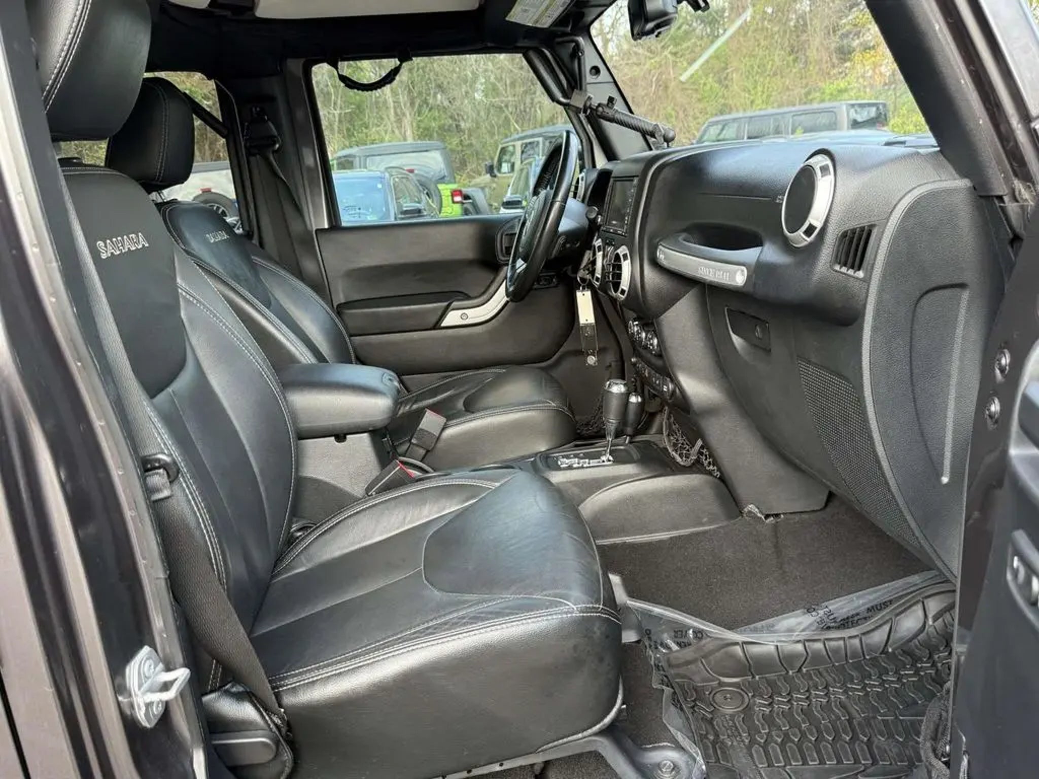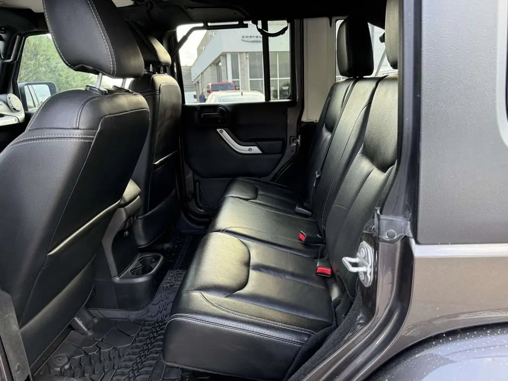 Discover the ultimate off-road companion in this 2016 Jeep Wrangler Unlimited Sahara. With its rugged good looks and exceptional capability, this Jeep is ready to take you on unforgettable adventures. - 35 TIRES - BLACK RHINO RIMS - BLACK, LEATHER TRIMMED BUCKET SEATS - Front Seat Back Map Pockets, Driver Height Adjuster Seat, Heated Front Seats - 5-Speed Automatic (W5A580) (Includes Tip Start, Hill Descent Control) - RADIO: 430N - 6.5 Touchscreen Display, Remote USB Port, 5-Year SiriusXM Travel Link Service, 40GB Hard Drive w/28GB Available, GPS Navigation, SiriusXM Travel Link - BLACK 3-PIECE HARD TOP - Freedom Panel Storage Bag, Rear Window Defroster, Rear Window Wiper/Washer, Delete Sunrider Soft Top - ALPINE 9-SPEAKER W/ALL WEATHER SUBWOOFER - Amplified 552W 9 speaker, including subwoofer - MAX TOW PACKAGE - Includes Class II Receiver Hitch, 3.73 Rear Axle Ratio, Trailer Tow w/4-Pin Connector Wiring - CONNECTIVITY GROUP - Includes Vehicle Information Center, Remote USB Port, Uconnect Voice Command w/Bluetooth, Tire Pressure Monitoring Display - REMOTE START SYSTEM - AIR CONDITIONING W/AUTO TEMP CONTROL - Humidity Sensor, Air Filtering This Wrangler Unlimited Sahara is equipped with a powerful 3.6L V6 24V VVT engine, mated to a smooth-shifting 5-speed automatic transmission and 4-wheel drive. It delivers an impressive combination of off-road capability and on-road comfort, with features like GPS navigation, a premium audio system, and advanced connectivity. The rugged exterior is complemented by a sleek gray finish and custom upgrades like 35-inch tires and black rims, giving this Jeep an unmistakable presence. Inside, the cabin is appointed with premium leather-trimmed bucket seats, heated for your comfort, and a wealth of technology features, including a 6.5-inch touchscreen display, remote USB port, and Uconnect voice command with Bluetooth. The Max Tow Package adds even more versatility, with a Class II receiver hitch and 3.73 rear axle ratio for effortless towing. Whether you're tackling the trails or navigating the city, this 2016 Jeep Wrangler Unlimited Sahara is ready to take you there in style and comfort. Experience the unparalleled capability and refined features that make this Jeep a true standout in its class. Schedule a test drive today and discover the freedom and adventure that awaits.