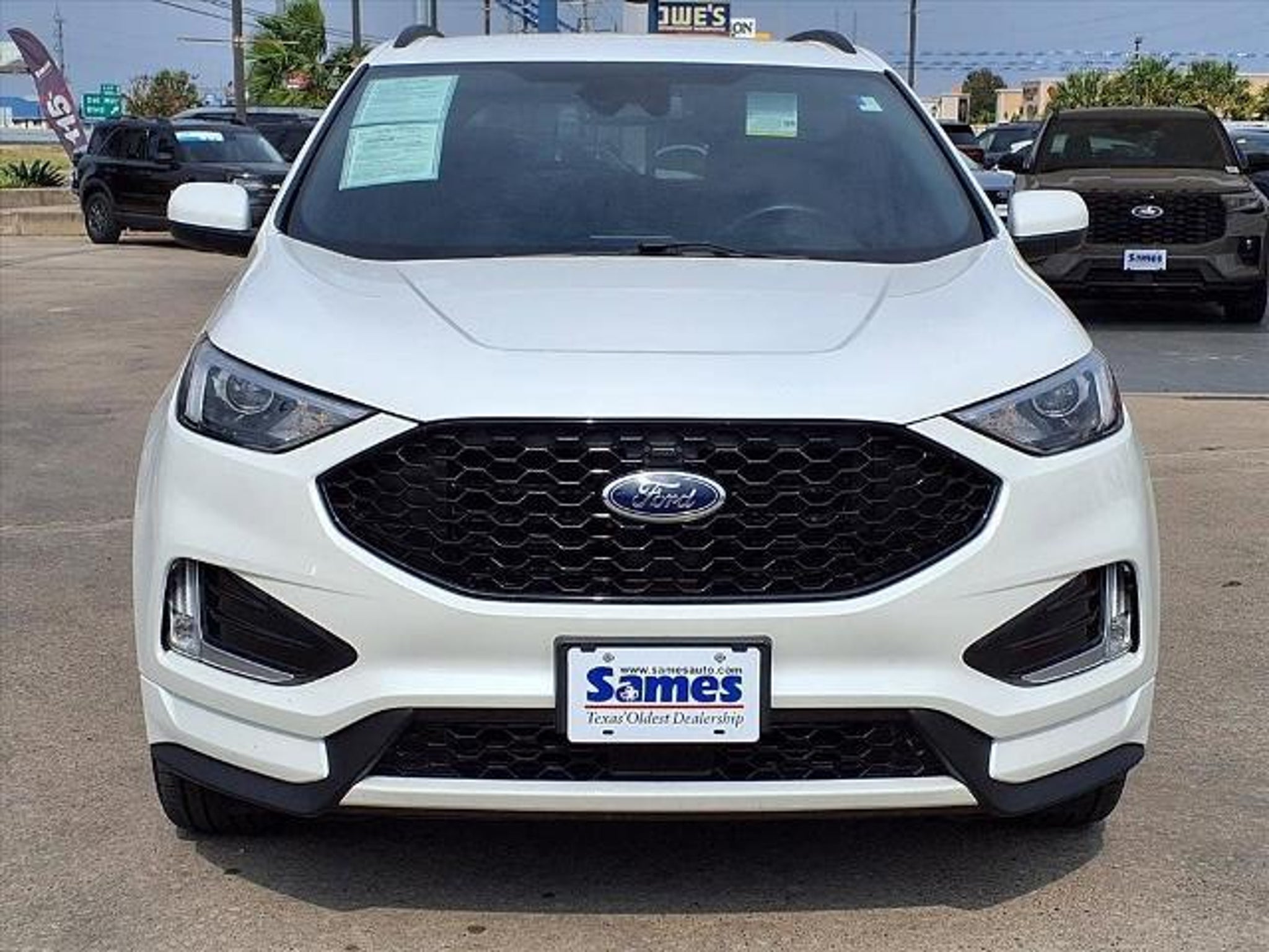 This 2024 Ford Edge ST Line in White Metallic comes with the following features: EcoBoost 2.0L I4 GTDi DOHC Turbocharged VCT 8-Speed Automatic AWD 3.80 Axle Ratio, 4-Wheel Disc Brakes, 6 Speakers, ABS brakes, ActiveX Trimmed Heated Bucket Seats, Air Conditioning, Alloy wheels, AM/FM radio: SiriusXM with 360L, AM/FM Stereo, Auto High-beam Headlights, Auto-dimming Rear-View mirror, Automatic temperature control, Black Roof-Rack Side Rails, Brake assist, Bumpers: body-color, Compass, Delay-off headlights, Driver door bin, Driver vanity mirror, Dual front impact airbags, Dual front side impact airbags, Electronic Stability Control, Emergency communication system: SYNC 4 911 Assist, FordPass Connect, Four wheel independent suspension, Front anti-roll bar, Front Bucket Seats, Front Center Armrest w/Storage, Front dual zone A/C, Front reading lights, Fully automatic headlights, Heated door mirrors, Heated front seats, Illuminated entry, Knee airbag, Leather steering wheel, Low tire pressure warning, Occupant sensing airbag, Outside temperature display, Overhead airbag, Overhead console, Panic alarm, Passenger door bin, Passenger vanity mirror, Power door mirrors, Power driver seat, Power Liftgate, Power passenger seat, Power steering, Power windows, Rear anti-roll bar, Rear Parking Sensors, Rear reading lights, Rear seat center armrest, Rear window defroster, Rear window wiper, Remote keyless entry, SiriusXM w/360L, Speed control, Speed-Sensitive Wipers, Split folding rear seat, Spoiler, Steering wheel mounted audio controls, SYNC 4A w/Enhanced Voice Recognition, Tachometer, Telescoping steering wheel, Tilt steering wheel, Traction control, Trip computer, and Variably intermittent wipers. Certification Program Details: 2 Year/100,000 Mile Limited Powertrain Warranty, Rental Reimbursement, Road Side Assist, Emergency Travel Expense Reimbursement, Tire Hazard Protection. See dealer for details. Sames Auto Group stores have been in business for over 115 years, as part of the Oldest Auto Group in Texas we're committed to providing exceptional service before, during, and after your purchase. Our expert team at Sames Ford of Bastrop will ensure you drive away completely satisfied. Schedule your virtual consultation or test drive today. No hassle remote delivery to Houston, Austin and San Antonio and the rest of Texas available upon request.