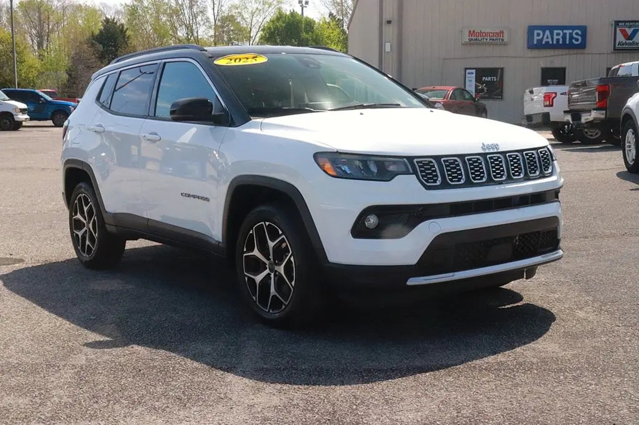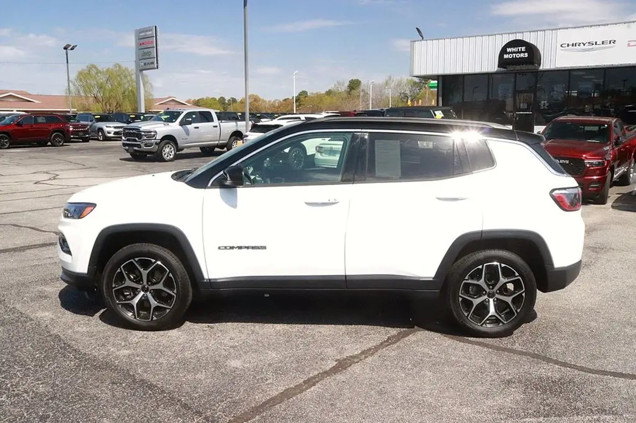 Recent Arrival! All Routine Maintenance Up To Date. 2025 Jeep Compass Limited Bright White Clearcoat Odometer is 15994 miles below market average! 24/32 City/Highway MPG Equipped with Quick Order Package 29G, 10.1 Touchscreen Display, 3.73 Final Drive Ratio, 4-Wheel Disc Brakes, 6 Speakers, ABS brakes, Air Conditioning, Alloy wheels, AM/FM radio: SiriusXM, Apple CarPlay/Android Auto, Auto High-beam Headlights, Auto-dimming Rear-View mirror, Automatic temperature control, Brake assist, Bumpers: body-color, Compass, Delay-off headlights, Driver door bin, Driver vanity mirror, Dual front impact airbags, Dual front side impact airbags, Electronic Stability Control, Emergency communication system: Jeep Connect, Four wheel independent suspension, Front anti-roll bar, Front Bucket Seats, Front Center Armrest w/Storage, Front dual zone A/C, Front fog lights, Front reading lights, Fully automatic headlights, Heated door mirrors, Heated front seats, Illuminated entry, Knee airbag, Leather Shift Knob, Leather steering wheel, Leatherette Seats, Low tire pressure warning, Occupant sensing airbag, Outside temperature display, Overhead airbag, Overhead console, Panic alarm, ParkView Rear Back-Up Camera, Passenger door bin, Passenger vanity mirror, Power door mirrors, Power driver seat, Power steering, Power windows, Premium audio system: UConnect 5, Radio: Uconnect 5 w/10.1 Display, Rain sensing wipers, Rear anti-roll bar, Rear seat center armrest, Rear window defroster, Rear window wiper, Remote keyless entry, Security system, Speed control, Split folding rear seat, Spoiler, Steering wheel mounted audio controls, Tachometer, Telescoping steering wheel, Tilt steering wheel, Traction control, Trip computer, Turn signal indicator mirrors, Variably intermittent wipers, and Wheels: 18 x 7 Painted Diamond Cut Alum (DISC) Family owned and operated since 1938. BUY ONLINE-TEXT-EMAIL-CHAT-PHONE. A better way to buy your next vehicle. Where a handshake still means something. Serving Roanoke Rapids, Weldon, Halifax, Scotland Neck, Emporia, South Hill, Franklin, Henderson, Louisburg, Murfreesboro, Littleton, Lake Gaston. We sale nationwide!