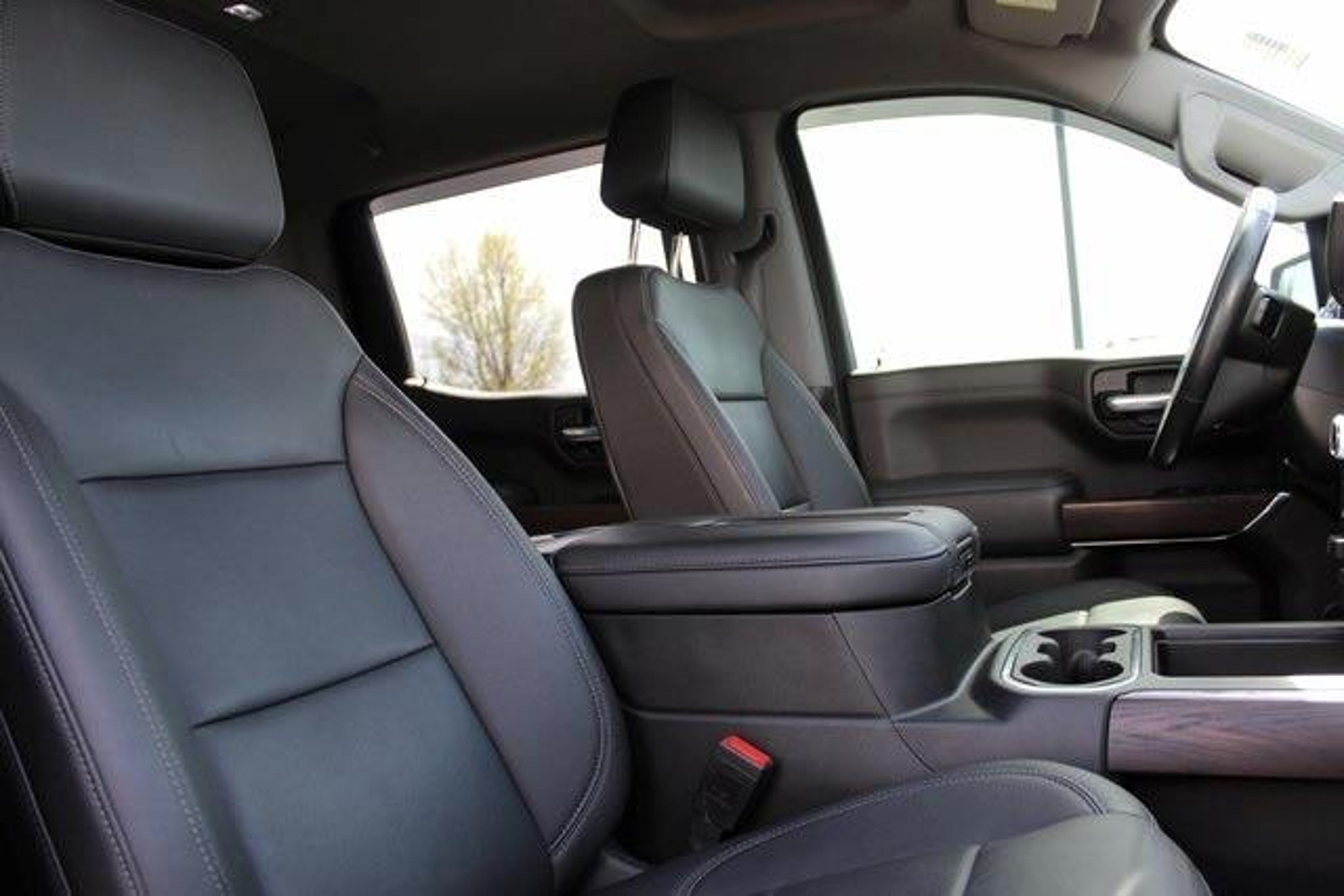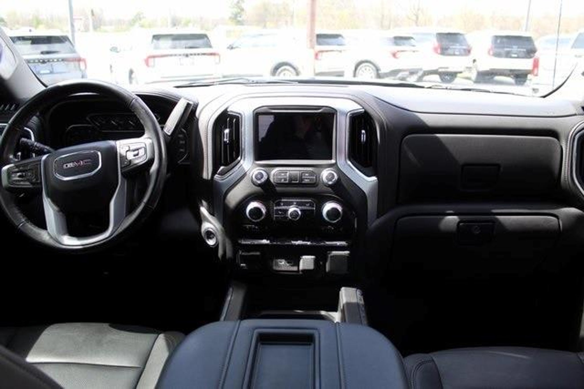 Pacific Blue Metallic 2021 GMC Sierra 1500 SLT RWD 10-Speed Automatic 3.0L I6 LOW MILES, ONE OWNER, LOCAL TRADE, CLEAN CARFAX, 10-Speed Automatic, Jet Black Leather, 10-Way Power Driver Seat Adjuster w/Lumbar, 10-Way Power Passenger Seat Adjuster w/Lumbar, 12-Volt Rear Auxiliary Power Outlet, 120-Volt Bed Mounted Power Outlet, 120-Volt Instrument Panel Power Outlet, 170 Amp Alternator, 2 USB Ports, 2 USB Ports (1st Row), 20 x 9 Polished Aluminum Wheels, 220 Amp Alternator, 3.23 Rear Axle Ratio, 4-Wheel Disc Brakes, 4G LTE Wi-Fi Hotspot Capable, 6 Speakers, 6-Speaker Audio System Feature, ABS brakes, Air Conditioning, Alloy wheels, AM/FM radio: SiriusXM with 360L, Apple CarPlay/Android Auto, Auto-dimming door mirrors, Auto-dimming Rear-View mirror, Auto-Locking Rear Differential, Automatic temperature control, Auxiliary External Transmission Oil Cooler, Brake assist, Bumpers: chrome, Chrome Grille, Chrome Wheel To Wheel Assist Steps, Color-Keyed Carpeting Floor Covering, Compass, Deep-Tinted Glass, Delay-off headlights, Driver door bin, Driver Memory, Driver vanity mirror, Dual front impact airbags, Dual front side impact airbags, Electric Rear-Window Defogger, Electrical Lock Control Steering Column, Electronic Stability Control, Engine Block Heater, Floor-Mounted Center Console, Front 40/20/40 Split-Bench Seat, Front anti-roll bar, Front Bucket Seats, Front Center Armrest w/Storage, Front dual zone A/C, Front fog lights, Front License Plate Kit, Front reading lights, Front wheel independent suspension, Fully automatic headlights, GMC Connected Access Capable, Heated 2nd Row Outboard Seats, Heated door mirrors, Heated Driver & Front Outboard Passenger Seating, Heated front seats, Heated steering wheel, Heavy Duty Suspension, Hitch Guidance, Hitch Guidance w/Hitch View, Illuminated entry, In-Vehicle Trailering App, Integrated Trailer Brake Controller, Keyless Open & Start, LED Cargo Area Lighting, Low tire pressure warning, Manual Tilt-Wheel & Telescoping Steering Column, Memory seat, Not Equipped w/HD Radio, Not Equipped w/Heated 2nd Row Outboard Seats, Occupant sensing airbag, OnStar & GMC Connected Services Capable, Outside temperature display, Overhead airbag, Overhead console, Panic alarm, Passenger door bin, Passenger vanity mirror, Perf Leather-Appointed Front Outboard Seat Trim, Power Door Locks, Power door mirrors, Power driver seat, Power Front Passenger Windows w/Express Up/Down, Power Front Windows w/Driver Express Up/Down, Power passenger seat, Power Rear Windows w/Express Down, Power Sliding
