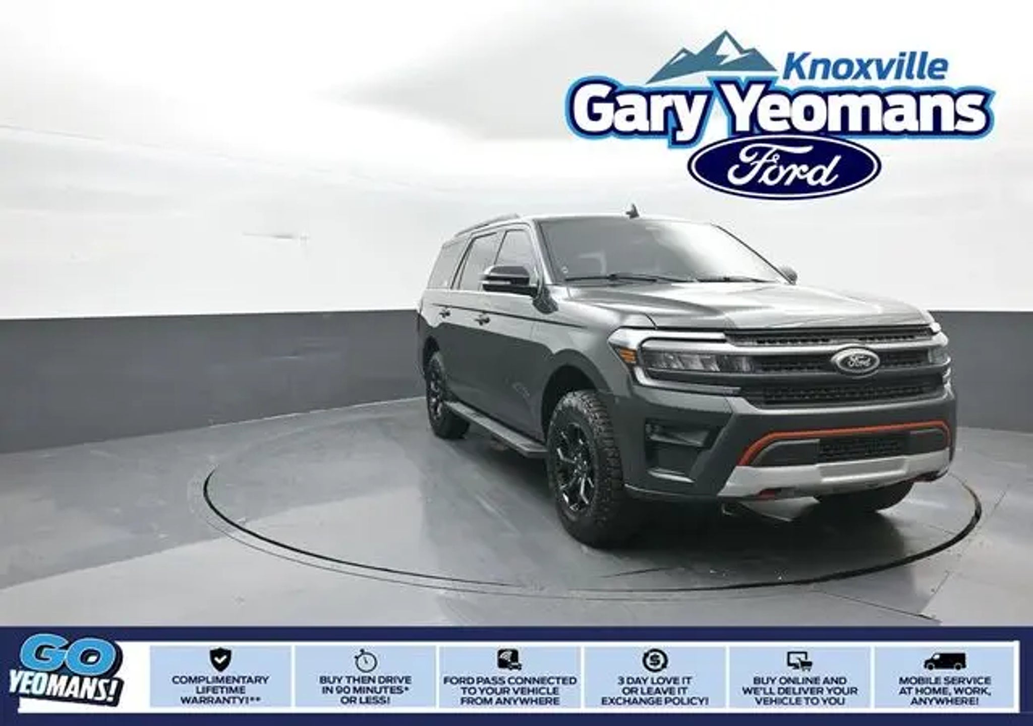 Certified. 2022 Ford Expedition Timberline Green Metallic 4WD EcoBoost 3.5L V6 GTDi DOHC 24V Twin Turbocharged **CERTIFIED, **PANORAMIC ROOF, **TOWING PACKAGE, Expedition Timberline, 4WD, Equipment Group 500A Standard Package, Heavy-Duty Trailer Tow Package, Integrated Trailer Brake Controller, Pro Trailer Backup Assist, Reverse Brake Assist. **INCLUDED FEATURES & OPTIONS: Equipment Group 500A Standard Package, Heavy-Duty Trailer Tow Package (Integrated Trailer Brake Controller, Pro Trailer Backup Assist, and Reverse Brake Assist), Expedition Timberline, Ford Gold Certified Certified, 4WD, 2nd Row Power-Folding 40/20/40 Leather Bench Seat, 3rd row seats: split-bench, 4-Wheel Disc Brakes, 6 Speakers, ABS brakes, Active Park Assist 2.0, Adjustable pedals, Air Conditioning, Alloy wheels, AM/FM radio: SiriusXM with 360L, Auto High-beam Headlights, Auto Start-Stop Removal, Auto-dimming door mirrors, Auto-dimming Rear-View mirror, Automatic temperature control, Brake assist, Bumpers: body-color, Compass, ControlTrac w/3.73 Axle Ratio, Delay-off headlights, Driver door bin, Driver vanity mirror, Dual front impact airbags, Dual front side impact airbags, Electronic Stability Control, Emergency communication system: SYNC 4 911 Assist, Exterior Parking Camera Rear, Four wheel independent suspension, Front anti-roll bar, Front Bucket Seats, Front Center Armrest, Front dual zone A/C, Front fog lights, Front reading lights, Fully automatic headlights, Garage door transmitter, Hands-Free Foot-Activated Feature Removal, Heated & Vent Cloth/Vinyl Front Captain's Chairs, Heated door mirrors, Illuminated entry, Leather steering wheel, Low tire pressure warning, Memory seat, Navigation system: Connected Navigation, Occupant sensing airbag, Outside temperature display, Overhead airbag, Overhead console, Panic alarm, Panoramic Vista Roof, Passenger door bin, Passenger vanity mirror, Pedal memory, Power door mirrors, Power driver seat, Power Liftgate, Power passenger seat, Power steering, Power windows, Radio data system, Radio: AM/FM Stereo w/MP3 Capable, Rear air conditioning, Rear anti-roll bar, Rear reading lights, Rear window defroster, Rear window wiper, Reclining 3rd row seat, Remote keyless entry, Reversible Cargo Mat, Security system, SiriusXM w/360L, Speed control, Speed-sensing steering, Speed-Sensitive Wipers, Split folding rear seat, Spoiler, Steering wheel memory, Steering wheel mounted audio controls, SYNC 4 w/Enhanced Voice Recognition, Tachometer, Telescoping steering wheel, Tilt steering wheel, Traction control, Trip computer, Turn signal indicator mirrors, Variably intermittent wipers, Voltmeter, and Wheels: 18 Ebony-Painted. Ford Gold Certified Details: * Vehicle History * Warranty Deductible: $100 * Transferable Warranty * Roadside Assistance * and 22,000 FordPass Rewards Points to use toward first two maintenance visits * Powertrain Limited Warranty: 84 Month/100,000 Mile (whichever comes first) from original in-service date * Limited Warranty: 12 Month/12,000 Mile (whichever comes first) after new car warranty expires or from certified purchase date * 172 Point Inspection At Gary Yeomans Ford Knoxville we offer Market Based Pricing, so please call to check on the availability of this vehicle.