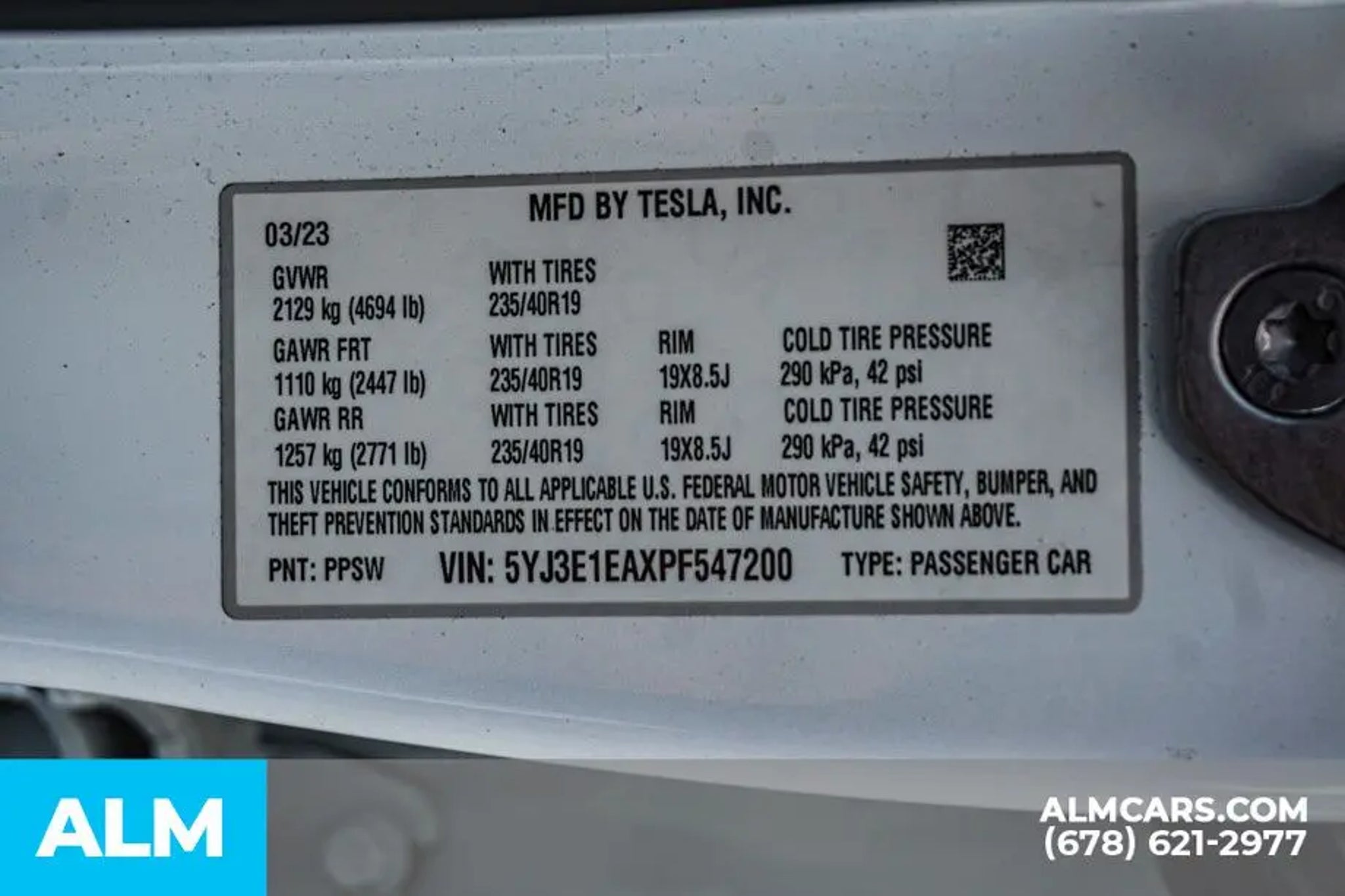 VIN 5YJ3E1EAXPF547200