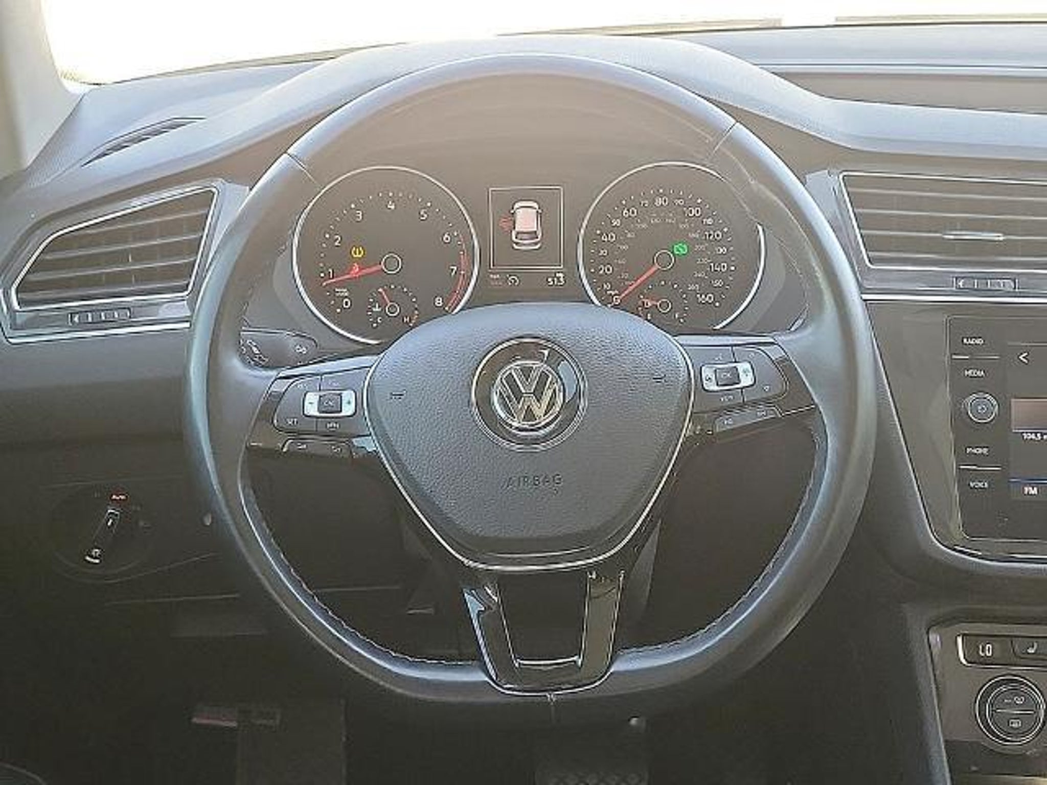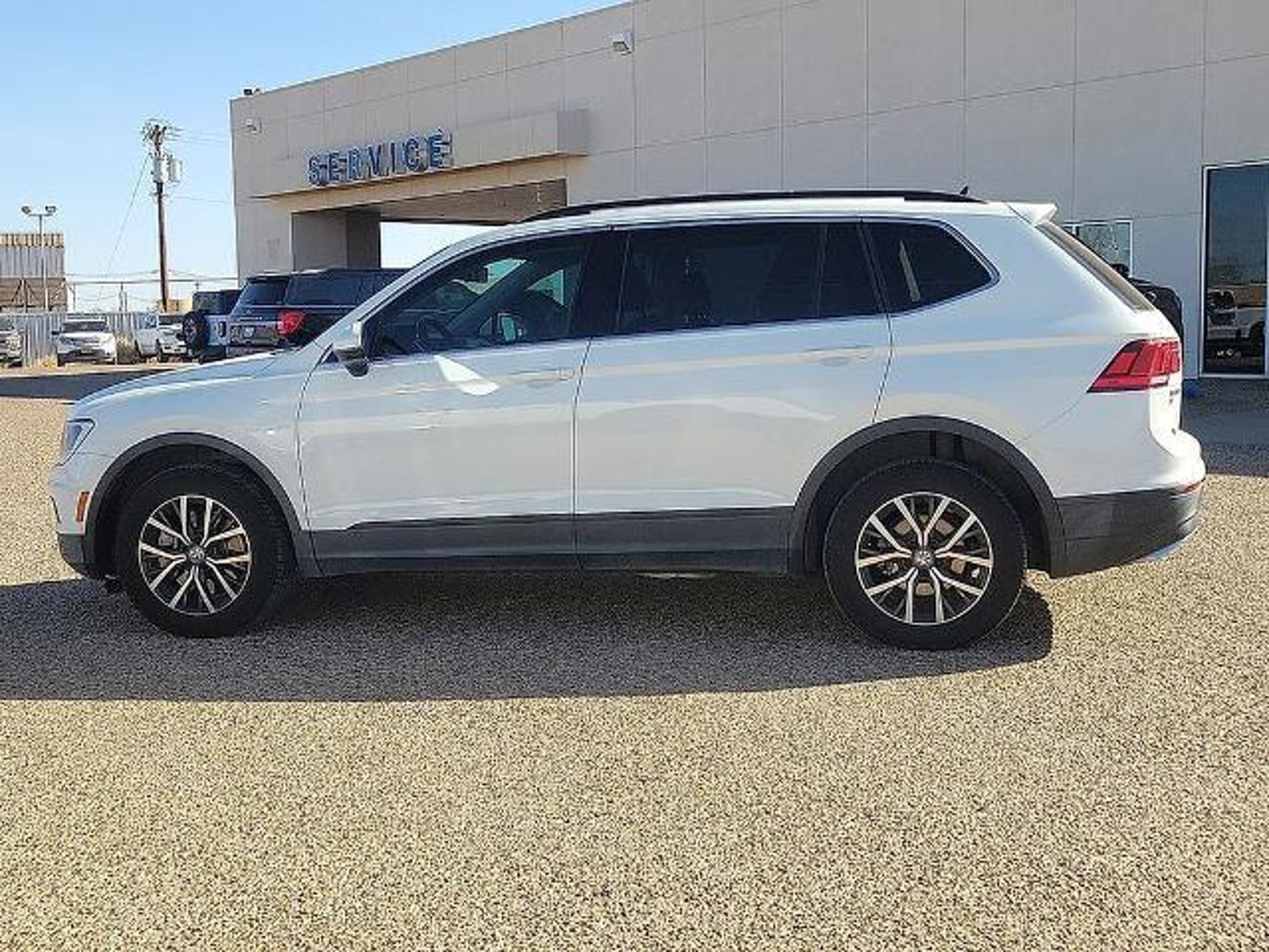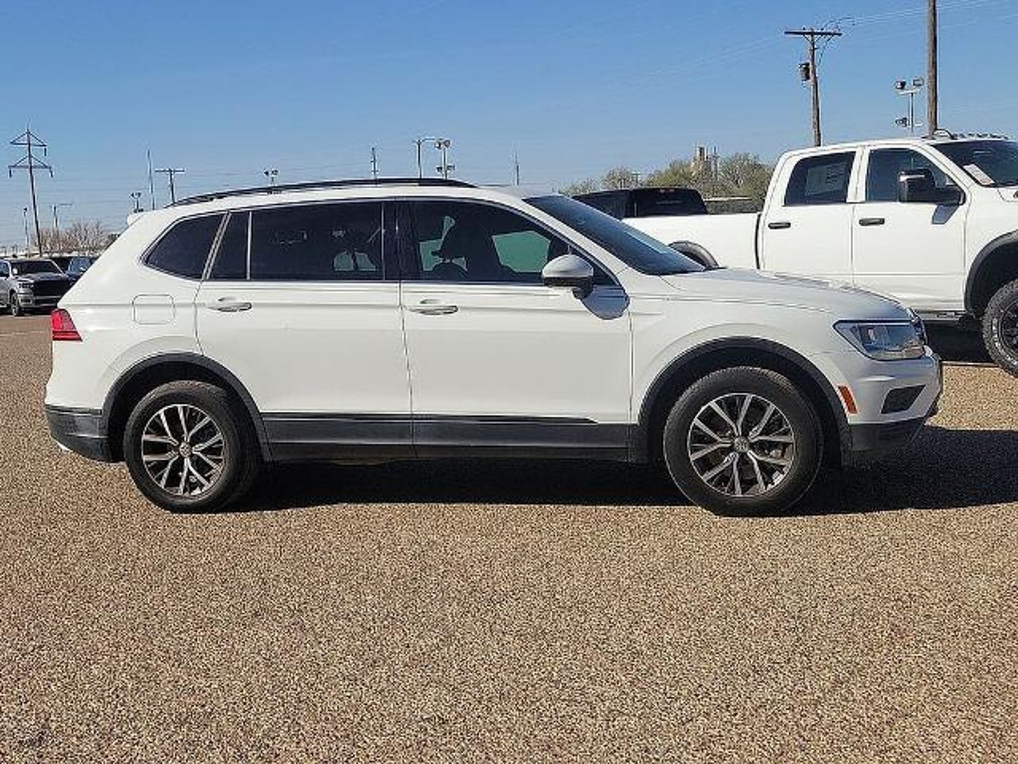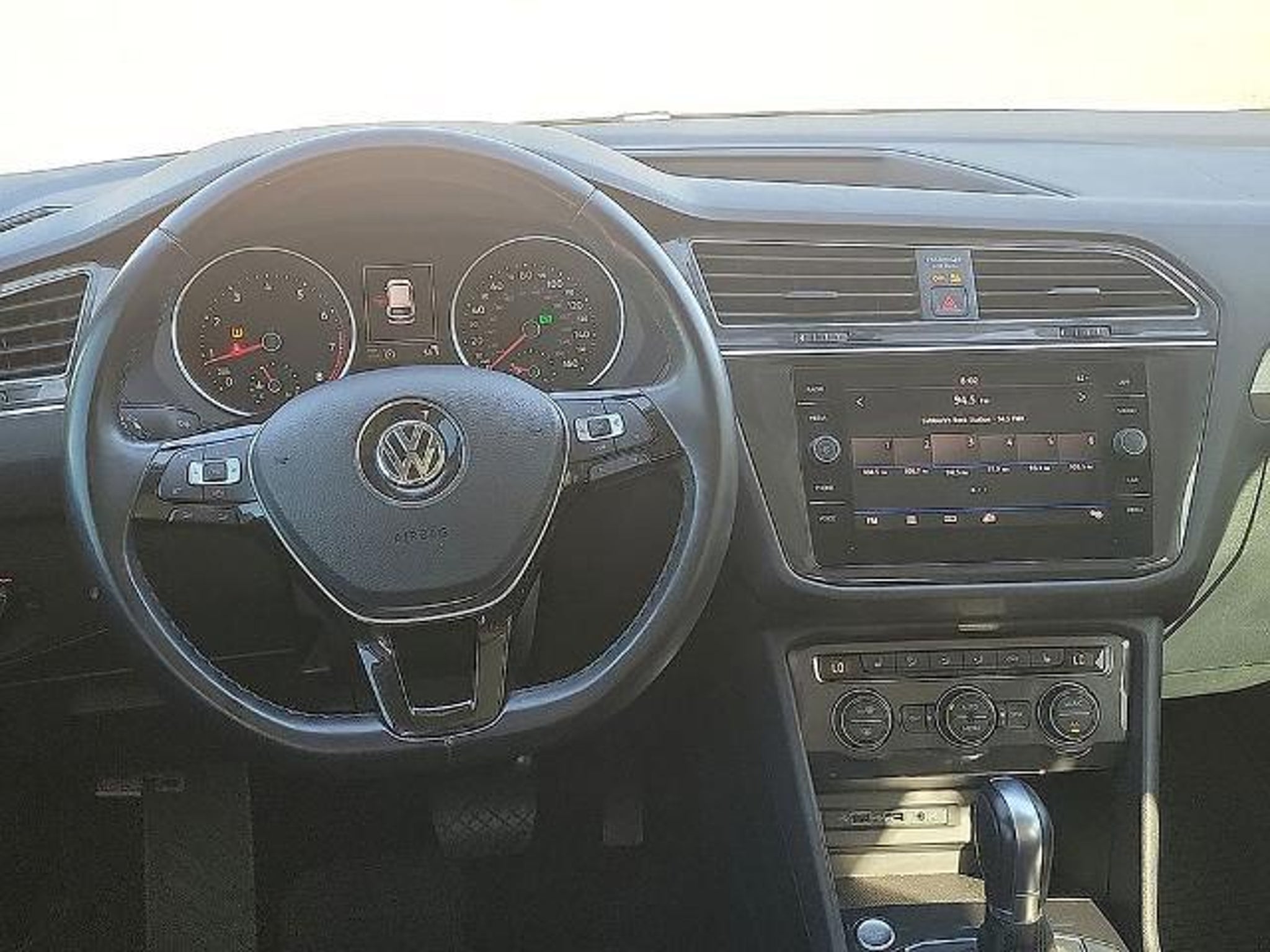 This 2019 Volkswagen Tiguan 2.0T SE 2.0L TSI DOHC 8-Speed Automatic with Tiptronic FWD in White comes with the following features: ABS brakes, Alloy wheels, Compass, Electronic Stability Control, Front dual zone A/C, Heated door mirrors, Heated Front Comfort Seats, Heated front seats, Illuminated entry, Low tire pressure warning, Remote keyless entry, and Traction control ABS brakes, Alloy wheels, Compass, Electronic Stability Control, Front dual zone A/C, Heated door mirrors, Heated Front Comfort Seats, Heated front seats, Illuminated entry, Low tire pressure warning, Remote keyless entry, Traction control, 3.33 Axle Ratio, 3rd row seats: bench, 4-Wheel Disc Brakes, 4-Wheel Independent Suspension, 6 Speakers, Air Conditioning, AM/FM radio: SiriusXM, Automatic temperature control, Brake assist, Bumpers: body-color, Delay-off headlights, Driver door bin, Driver vanity mirror, Dual front impact airbags, Dual front side impact airbags, Exterior Parking Camera Rear, Forward collision: FCW w/Autonomous Emergency Braking mitigation, Four wheel independent suspension, Front anti-roll bar, Front Bucket Seats, Front Center Armrest, Front reading lights, Fully automatic headlights, Leather Shift Knob, Occupant sensing airbag, Outside temperature display, Overhead airbag, Overhead console, Panic alarm, Passenger door bin, Passenger vanity mirror, Perforated V-Tex Leatherette Seating Surfaces, Power door mirrors, Power driver seat, Power steering, Power windows, Radio data system, Radio: Composition Media AM/FM/HD, Rear anti-roll bar, Rear reading lights, Rear seat center armrest, Rear window defroster, Rear window wiper, Remote CD player, Roof rack: rails only, Security system, Speed control, Speed-sensing steering, Split folding rear seat, Spoiler, Steering wheel mounted audio controls, Tachometer, Telescoping steering wheel, Tilt steering wheel, Trip computer, Turn signal indicator mirrors, Variably intermittent wipers, and Wheels: 17 Wide Multi-Spoke 2-Tone Alloy. 22/29 City/Highway MPG