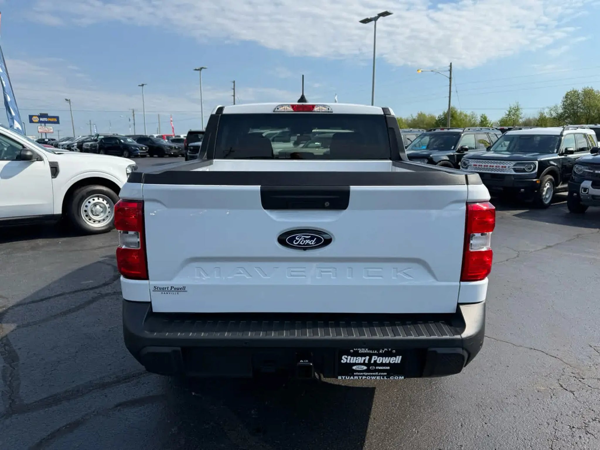 FUEL EFFICIENT 34 MPG Hwy/40 MPG City! CARFAX 1-Owner. XL trim. Smart Device Integration, Apple CarPlay®, WiFi Hotspot, Onboard Communications System, iPod/MP3 Input, Hitch, Back-Up Camera, FORD CO-PILOT360 1.0, EQUIPMENT GROUP 102A KEY FEATURES INCLUDE Back-Up Camera, Satellite Radio, iPod/MP3 Input, Onboard Communications System, WiFi Hotspot, Apple CarPlay®, Smart Device Integration MP3 Player, Keyless Entry, Privacy Glass, Steering Wheel Controls. Ford XL with Oxford White exterior and Black Onyx/Dark Slate interior features a 4 Cylinder Engine with 191 HP at 5600 RPM*. OPTION PACKAGES Evasive Steering Assist, Intersection Assist, AEB oncoming, Cross Traffic Brake Assist, BLIS w/Cross-Traffic Alert, Rear Parking Sensors, Power Glass Manual-Folding Mirrors, blind spot information system, Lane-Keeping System, Lane-Keeping Alert, lane-keeping aid and Driver Alert, Transmission: 8-Speed Automatic, Engine: 2.0L EcoBoost, 3.63 Axle Ratio, 2K TRAILER HITCH RECEIVER W/4-PIN CONNECTOR. EXCELLENT VALUE Was $33,300. This Maverick is priced $1,800 below J.D. Power Retail. BUY FROM AN AWARD WINNING DEALER We Make It Easy! Since 1949, Stuart Powell has earned a reputation for transparent pricing and making it easy to do business. Come see why its worth the drive to Danville for a better way to buy. Pricing analysis performed on 4/23/2026. Horsepower calculations based on trim engine configuration. Fuel economy calculations based on original manufacturer data for trim engine configuration. Please confirm the accuracy of the included equipment by calling us prior to purchase.