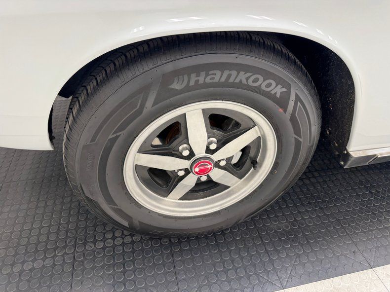 This car takes the pony concept to its limits courtesy designer Vignale, with the long bonnet which is louvered, and rear glass that is curved downward, wrapping the back B pillars in greenhouse form, unique in every way, presenting here in two stage white. Dual headlights and horizontal ribs make up the grille while on the front quarters, we find the angled vents. The upper portion of the car leans the other way, rearward, as the A-pillar sets the angle for the B-pillar and rear window, accentuated by the flat roof that meets a triangular C-pillar. Curved tail lights hug the rear fascia and big dual exhaust give additional hints to the potential power. Imperfections include scuffs on the cowl, various crack in the paint, bubbles on the hood and bottom edge, curb rash, de-plating on both bumpers and a dent on the rear, random chips, evidence of body filler and a ding in the rocker trim