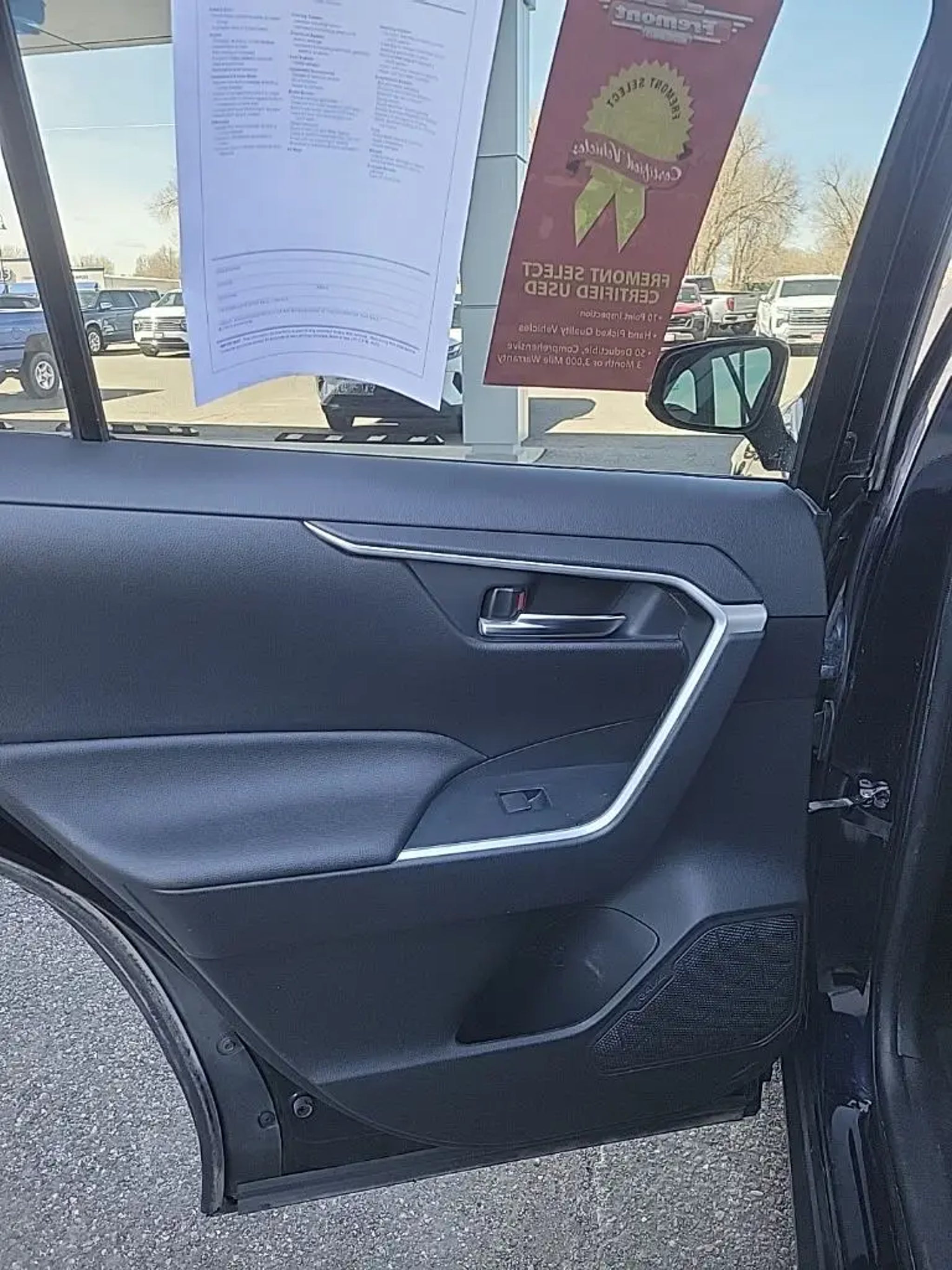 Certified. Blueprint 2021 Toyota RAV4 XLE Premium AWD 8-Speed Automatic 2.5L 4-Cylinder DOHC Dual VVT-i AWD, Black Premium Synthetic. Fremont Certified Certified, AWD, Black Premium Synthetic, 3 Spoke Leather Steering Wheel, 4-Wheel Disc Brakes, 6 Speakers, ABS brakes, Air Conditioning, Alloy wheels, AM/FM radio: SiriusXM, AM/FM Stereo, Apple CarPlay/Android Auto, Auto High-beam Headlights, Automatic temperature control, Axle Ratio: 3.177, Brake assist, Bumpers: body-color, Delay-off headlights, Driver door bin, Driver vanity mirror, Dual front impact airbags, Dual front side impact airbags, Electronic Stability Control, Emergency communication system, Exterior Parking Camera Rear, Four wheel independent suspension, Front anti-roll bar, Front Bucket Seats, Front Center Armrest, Front Door Smart Key System w/Push Button Start, Front dual zone A/C, Front fog lights, Front reading lights, Fully automatic headlights, Heated door mirrors, Illuminated entry, Knee airbag, Leather Shift Knob, Low tire pressure warning, Occupant sensing airbag, Outside temperature display, Overhead airbag, Overhead console, Panic alarm, Passenger door bin, Passenger vanity mirror, Power door mirrors, Power driver seat, Power Liftgate, Power moonroof, Power steering, Power windows, Radio data system, Rear anti-roll bar, Rear seat center armrest, Rear window defroster, Rear window wiper, Remote keyless entry, Roof rack: rails only, SofTex Seat Trim, Speed control, Speed-sensing steering, Split folding rear seat, Spoiler, Steering wheel mounted audio controls, Tachometer, Telescoping steering wheel, Tilt steering wheel, Traction control, Trip computer, Turn signal indicator mirrors, Variably intermittent wipers, and Wheels: 19 Multi-Spoke Super Chrome Alloy. Odometer is 10531 miles below market average! 27/33 City/Highway MPG Certification Program Details: FREMONT CERTIFIED 3 months/3,000 miles Limited Powertrain Warranty VISIT US TODAY At Fremont Motor Companies, We Are Wyoming! We're not just about cars; we're about growing people and communities through relationship-driven transportation. Reach out to see what we offer and discover the perfect vehicle for you. Note: Prices exclude additional fees such as government taxes, finance charges, a dealer documentation fee of $599, emissions testing fees, and others. Prices and details might change, so please contact us for the latest information. WE DELIVER, INQUIRE FOR DETAILS!
