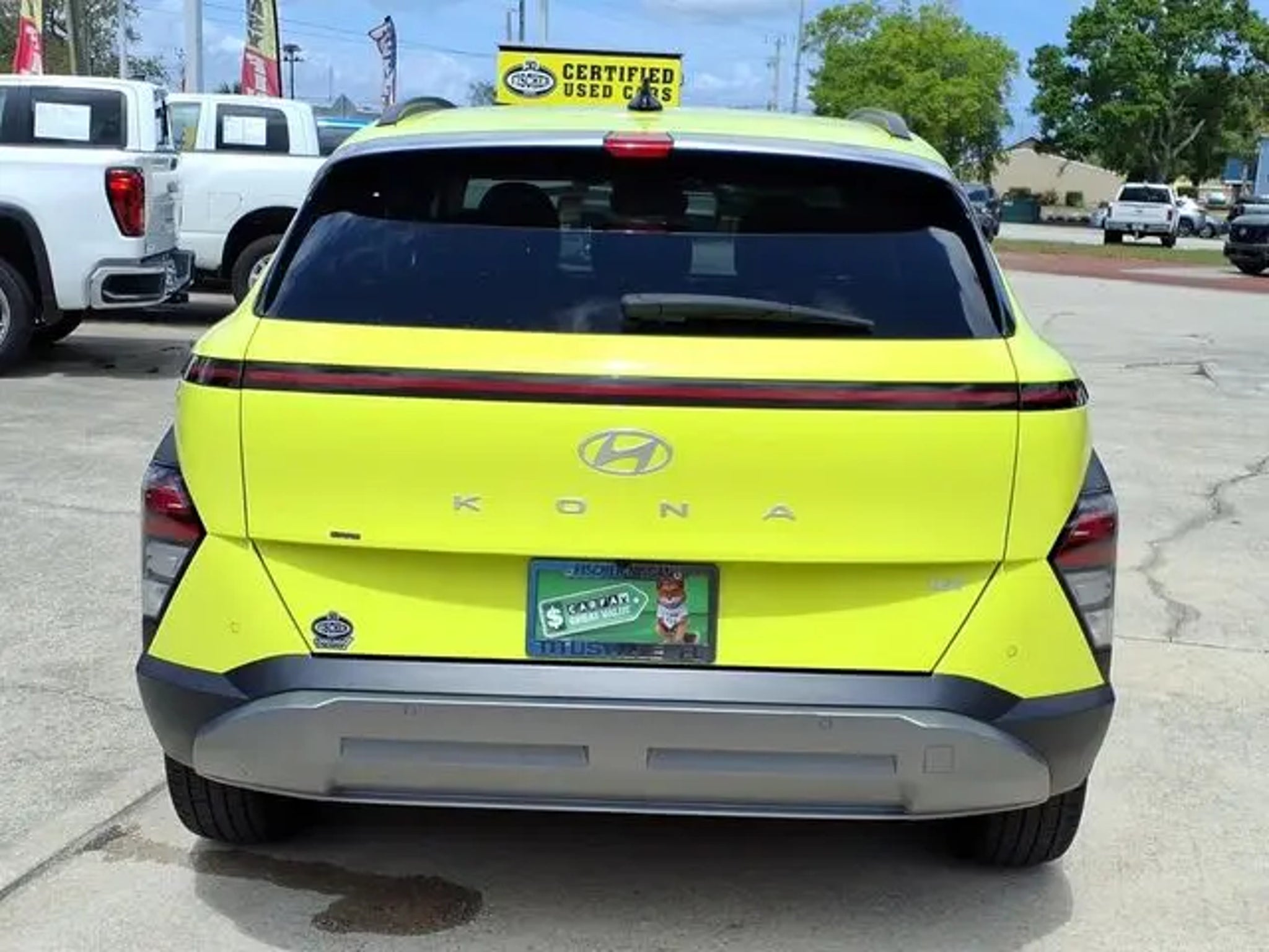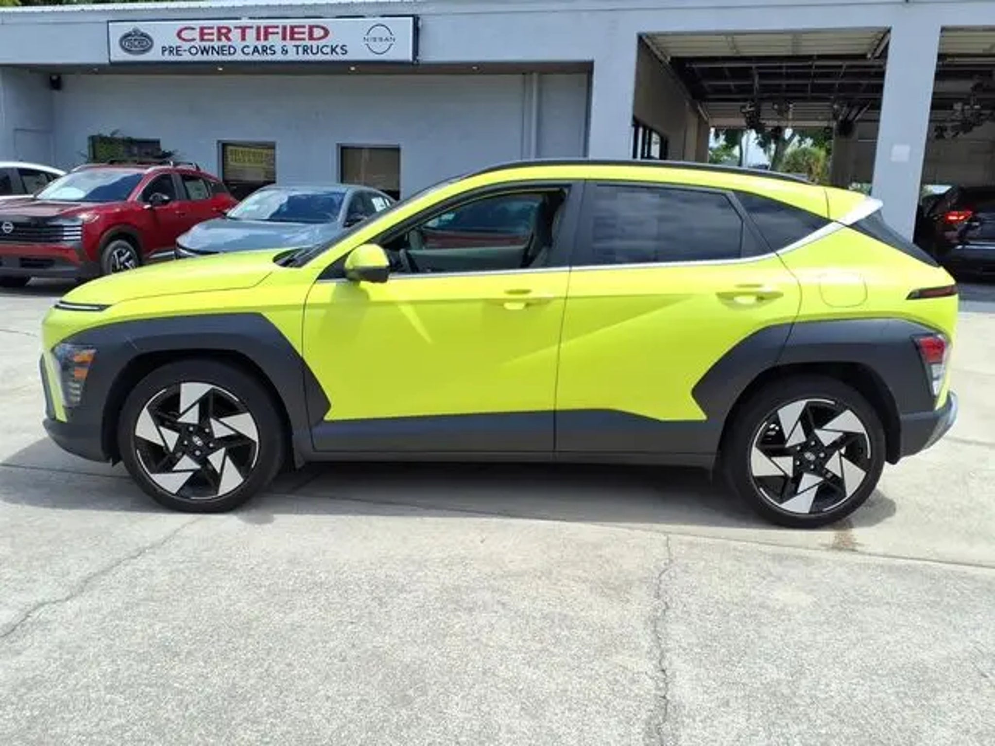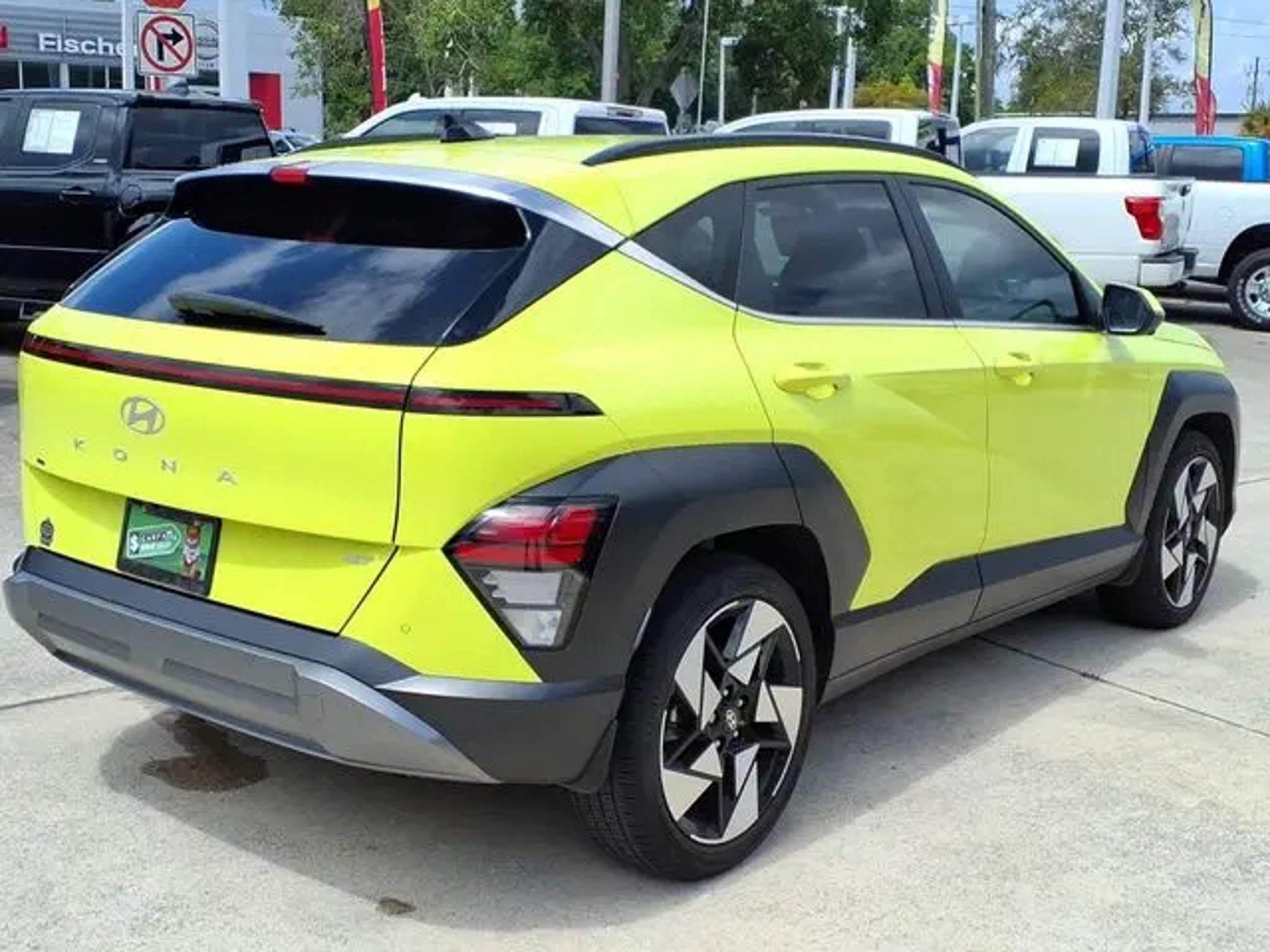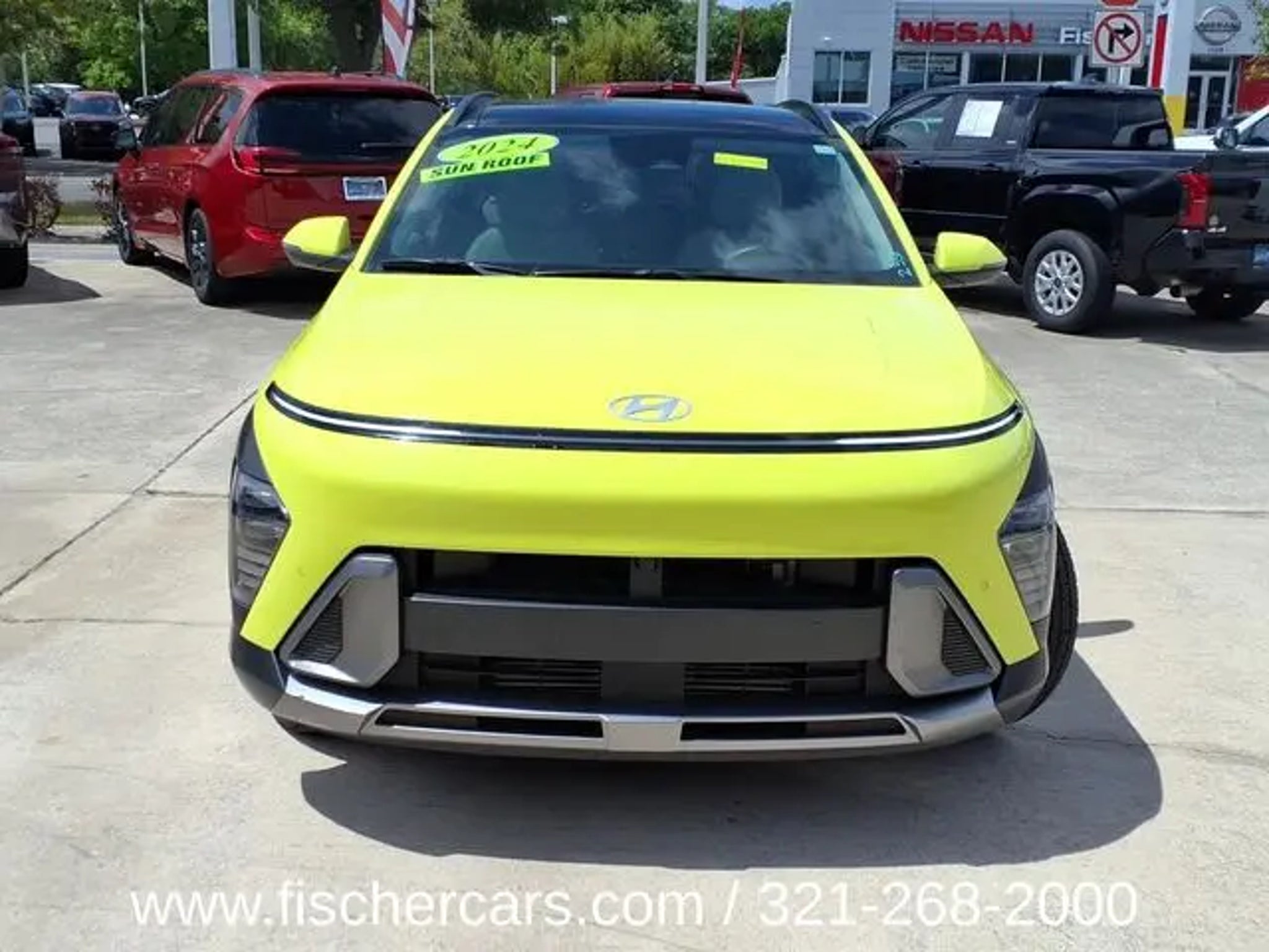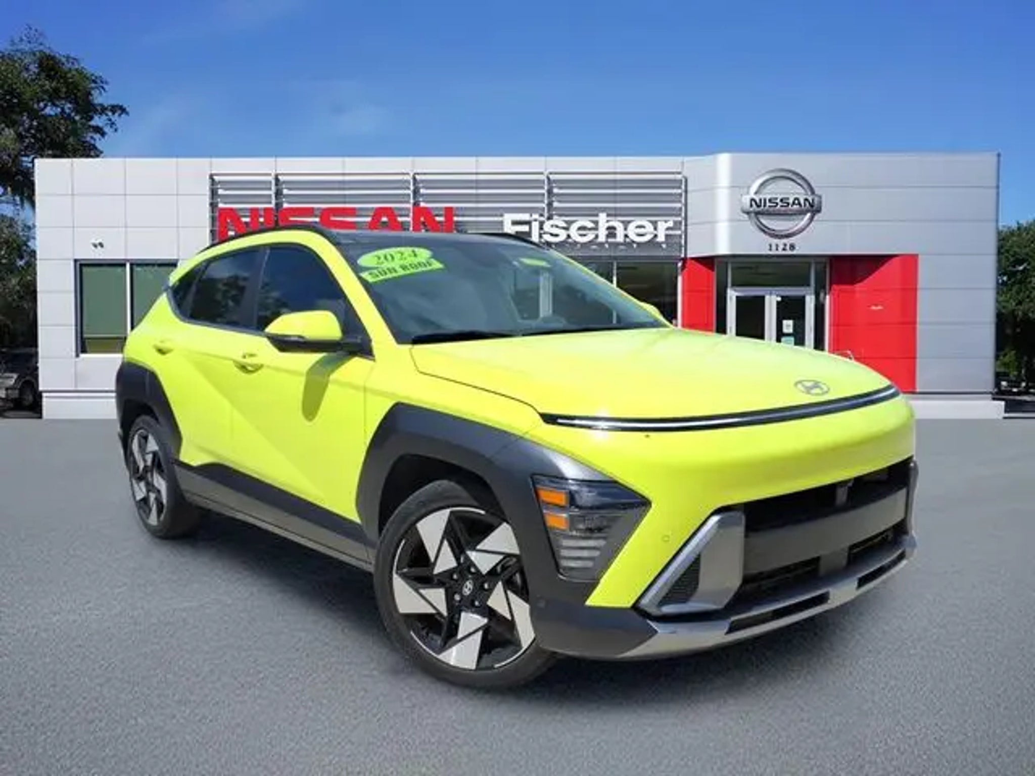2024 Hyundai Kona Limited **Neoteric Yellow **Amazing fun in a nimblr low mileage hatchback** Amazingly striking color combination / Huge panoramic sunroof and well appointed leather styled interior ** Full factory warranty remains and save big bucks here at Pat Fischer Nissan** I4 8-Speed Automatic FWD**26/32 City/Highway MPG Our Nissan, factory trained, Master technician perform a 167 point inspection and completed routine maintenance. Serving the central Florida area since 1971 and continuing a wonderful history with our new and long time customers, today. We are conveniently located in Titusville, FL just 35 minutes from Orlando Int'l airport, off I-95 exit 220. East 2.7M to US1, turn right on US1- to 1128 S Hopkins Ave Titusville, FL 32780. ** Price does not reflect reconditioning fee $1195 Option Group 01, 3.510 Axle Ratio, 4-Wheel Disc Brakes, 8 Speakers, ABS brakes, Air Conditioning, Alloy wheels, AM/FM radio: SiriusXM, Apple CarPlay & Android Auto, Auto High-beam Headlights, Auto-dimming Rear-View mirror, Automatic temperature control, Brake assist, Bumpers: body-color, Cargo Net, Cargo Tray, Carpeted Floor Mats, Column-Mounted Shift-By-Wire, Delay-off headlights, Driver door bin, Driver vanity mirror, Dual front impact airbags, Dual front side impact airbags, Electronic Stability Control, Emergency communication system: Bluelink, First Aid Kit, Front anti-roll bar, Front Bucket Seats, Front Center Armrest, Front dual zone A/C, Front reading lights, Front wheel independent suspension, Fully automatic headlights, Garage door transmitter: HomeLink, H-Tex Leatherette Seat Trim, Heated & Ventilated Front Bucket Seats, Heated door mirrors, Heated front seats, Heated steering wheel, Illuminated entry, Leather Shift Knob, Leather steering wheel, Low tire pressure warning, Navigation System, Occupant sensing airbag, Outside temperature display, Overhead airbag, Panic alarm, Passenger door bin, Passenger vanity mirror, Power door mirrors, Power driver seat, Power Liftgate, Power moonroof, Power steering, Power windows, Radio: AM/FM/HD Radio/SiriusXM Audio System, Rear seat center armrest, Rear window defroster, Rear window wiper, Remote keyless entry, Security system, Speed control, Speed-sensing steering, Split folding rear seat, Spoiler, Steering wheel mounted audio controls, Tachometer, Telescoping steering wheel, Tilt steering wheel, Traction control, Trip computer, Turn signal indicator mirrors, Variably intermittent wipers, Ventilated front seats, Wheel Locks, and Wheels: 19 x 7.5J Glossy Black Alloy.