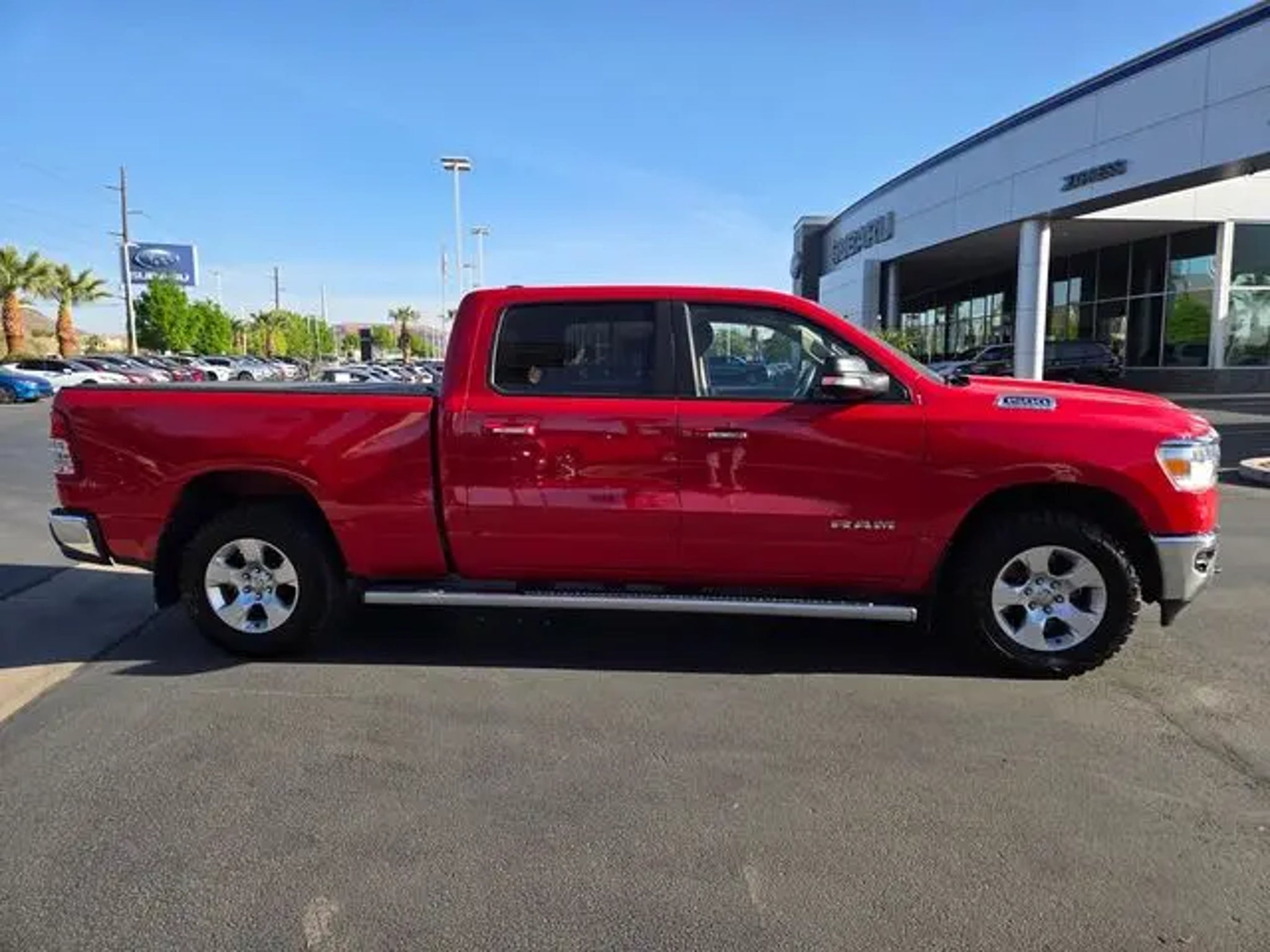 Welcome to Findlay Subaru in St George on the Savings Side of the Freeway. Please contact us at the phone number listed above for any questions that you might have and to check the availability of this vehicle. This 2019 Ram 1500 Big Horn/Lone Star is a powerful and capable full-size pickup that's ready to take on any task. Equipped with the legendary HEMI 5.7L V8 engine and 4-wheel drive, this truck delivers impressive performance and off-road capability. Standout features include: - GPS Navigation - Big Horn Level 2 Equipment Group - Protection Group - ParkView Rear Back-Up Camera - Heated Front Seats - Power 4-Way Driver Lumbar Adjust - Trailer Brake Control - Class IV Receiver Hitch - Tow Hooks With its striking red exterior, this Ram 1500 is sure to turn heads wherever you go. The spacious and well-appointed interior provides a comfortable and refined driving experience, while the advanced technology features keep you connected and in control. Whether you're hauling heavy loads, towing a trailer, or simply enjoying the open road, this truck is up for the challenge. The 4-wheel drive system and 8-speed automatic transmission work seamlessly to deliver excellent handling and efficiency, with an impressive 21 MPG on the highway. The robust HEMI engine provides ample power for any task, while the advanced safety features, including front and rear park assist, keep you and your passengers secure. Designed for both work and play, this 2019 Ram 1500 Big Horn/Lone Star is the perfect choice for those who demand versatility, capability, and style. With its impressive list of features and impressive performance, this truck is sure to exceed your expectations. At Findlay Subaru, we're committed to providing our customers with the best possible buying experience. Our knowledgeable sales team is here to answer any questions you may have and help you find the perfect vehicle to meet your needs. We invite you to come in and take this impressive Ram 1500 for a test drive. We're confident you'll be impressed by its capabilities and won't be able to resist taking it home. Welcome to Findlay Subaru in St George on the Savings Side of the Freeway. Please contact us at the phone number listed above for any questions that you might have and to check the availability of this vehicle.