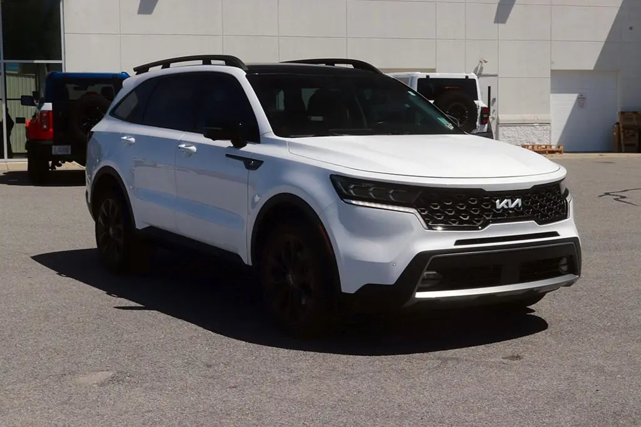 Recent Arrival! All Routine Maintenance Up To Date. 2022 Kia Sorento X-Line SX Prestige Glacial White Pearl Odometer is 14997 miles below market average! 22/27 City/Highway MPG Equipped with Rust Color Package, 12 Speakers, 3.316 Axle Ratio, 3rd row seats: split-bench, 4-Wheel Disc Brakes, ABS brakes, Air Conditioning, Alloy wheels, AM/FM radio: SiriusXM, Apple CarPlay & Android Auto, Auto High-beam Headlights, Auto-dimming Rear-View mirror, Automatic temperature control, Brake assist, Bumpers: body-color, Carpeted Floor Mats, Delay-off headlights, Driver door bin, Driver vanity mirror, Dual front impact airbags, Dual front side impact airbags, Electronic Stability Control, Emergency communication system: UVO Link, Four wheel independent suspension, Front anti-roll bar, Front Bucket Seats, Front Center Armrest, Front dual zone A/C, Front fog lights, Front reading lights, Fully automatic headlights, Heated & Ventilated Front Bucket Seats, Heated door mirrors, Heated front seats, Heated rear seats, Heated steering wheel, Illuminated entry, Knee airbag, Leather steering wheel, Low tire pressure warning, Memory seat, Navigation System, Occupant sensing airbag, Outside temperature display, Overhead airbag, Overhead console, Panic alarm, Passenger door bin, Passenger vanity mirror, Perforated Genuine Leather Seat Trim, Power door mirrors, Power driver seat, Power Liftgate, Power moonroof, Power passenger seat, Power steering, Power windows, Radio data system, Radio: AM/FM Bose Premium Audio System, Rear air conditioning, Rear anti-roll bar, Rear reading lights, Rear window defroster, Rear window wiper, Remote keyless entry, Roof rack: rails only, Security system, Smart Key w/ Push Button and Remote Start, Speed control, Speed-sensing steering, Split folding rear seat, Spoiler, Steering wheel mounted audio controls, Tachometer, Telescoping steering wheel, Tilt steering wheel, Traction control, Trip computer, Turn signal indicator mirrors, Variably intermittent wipers, Ventilated front seats, and Wheels: 8.5J x 20 Matte Gray Alloy. Family owned and operated since 1938. BUY ONLINE-TEXT-EMAIL-CHAT-PHONE. A better way to buy your next vehicle. Where a handshake still means something. Serving Roanoke Rapids, Weldon, Halifax, Scotland Neck, Emporia, South Hill, Franklin, Henderson, Louisburg, Murfreesboro, Littleton, Lake Gaston. We sale nationwide!