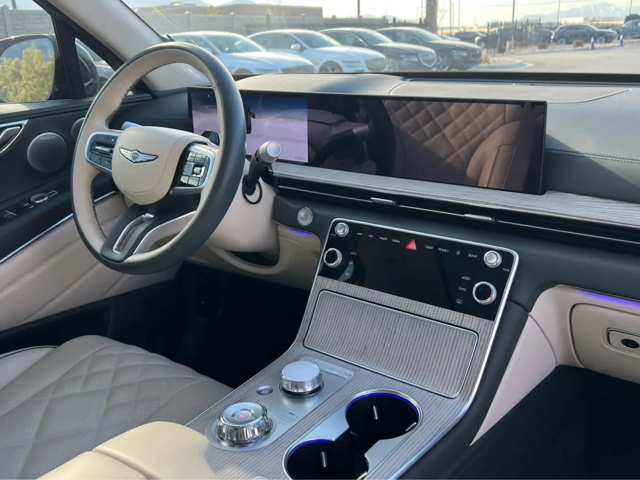 Excellent Condition. Prestige trim. Heated/Cooled Leather Seats, Navigation, Sunroof, Heated Rear Seat, Rear Air, All Wheel Drive, Power Liftgate, Alloy Wheels, VIK BLACK, ROOF RACK CROSS BARS, Turbo Charged, Non-Smoker vehicle. KEY FEATURES INCLUDE Leather Seats, Navigation, All Wheel Drive, Power Liftgate, Rear Air, Heated Driver Seat, Heated Rear Seat, Cooled Driver Seat Rear Spoiler, MP3 Player, Privacy Glass, Remote Trunk Release. Non-Smoker vehicle Genesis Prestige with Vik Black exterior and Vanilla Beige/Smoky Green interior features a V6 Cylinder Engine with 375 HP at 5800 RPM*. OPTION PACKAGES VIK BLACK, ROOF RACK CROSS BARS. AFFORDABLE Excellent Condition Reduced from $63,999. This GV80 is priced $2,600 below J.D. Power Retail. WHO WE ARE When you walk through our doors, you feel like family! Pricing analysis performed on 4/2/2026. Horsepower calculations based on trim engine configuration. Please confirm the accuracy of the included equipment by calling us prior to purchase.