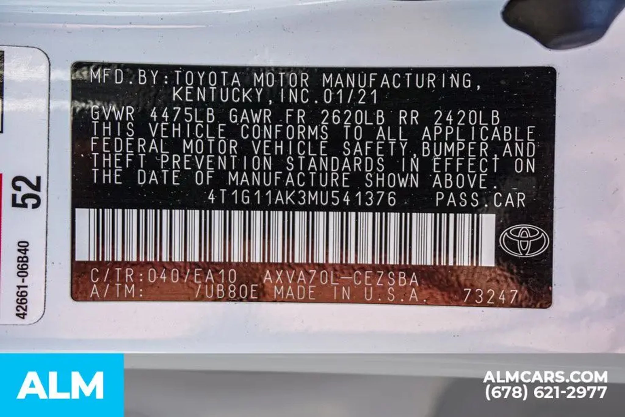 VIN 4T1G11AK3MU541376